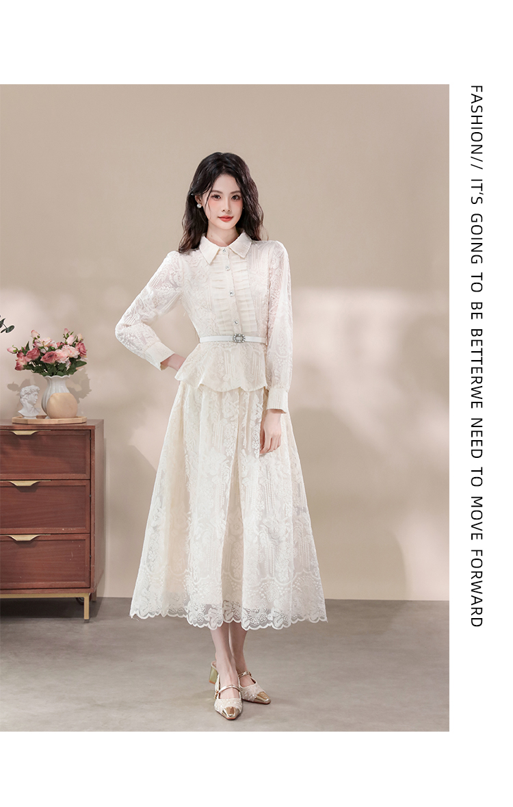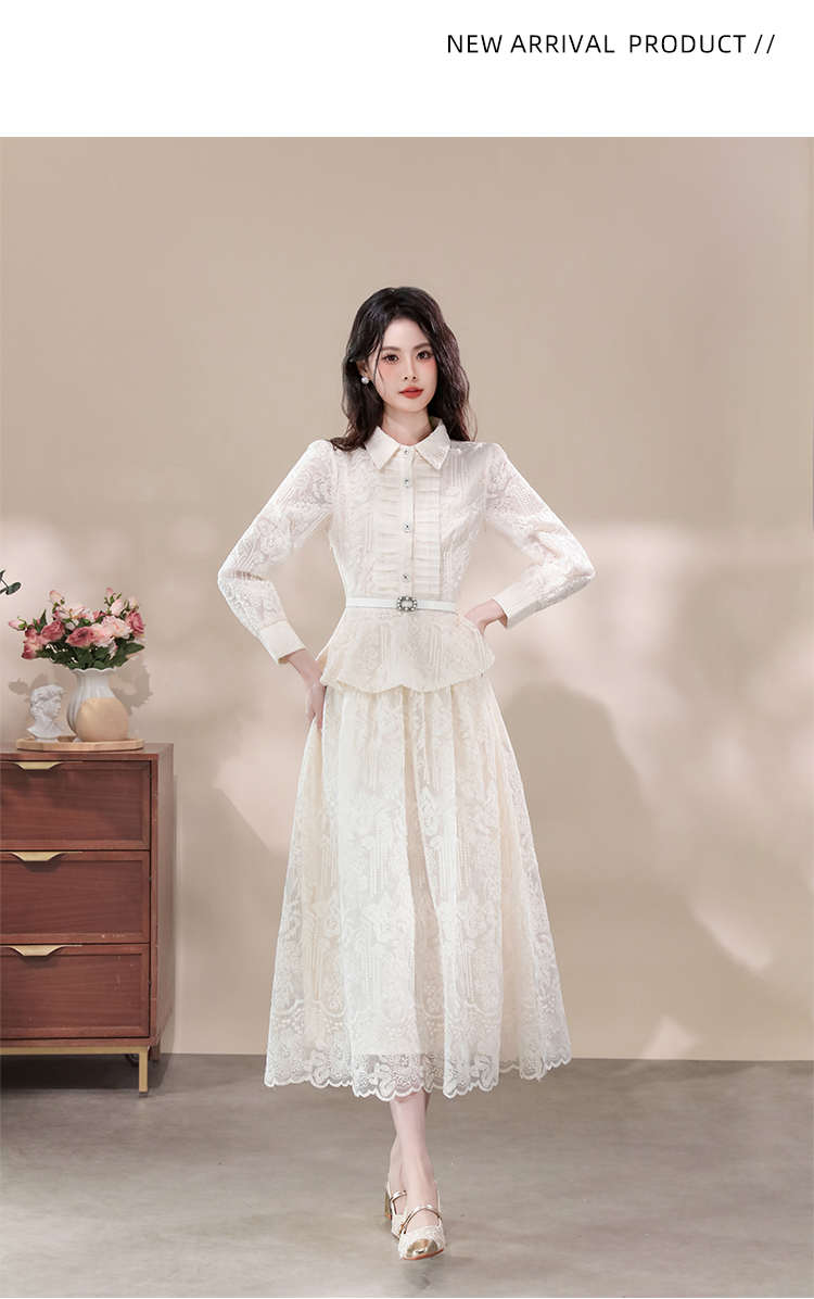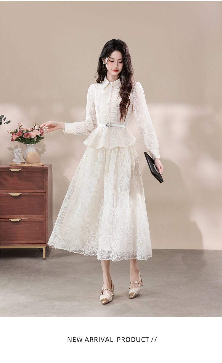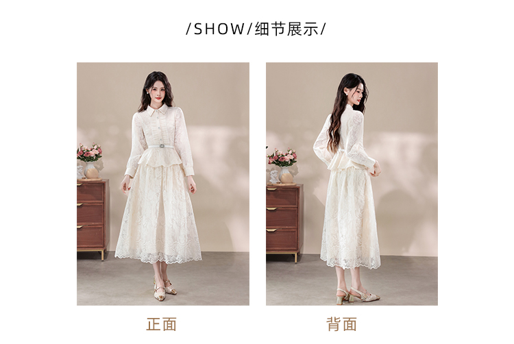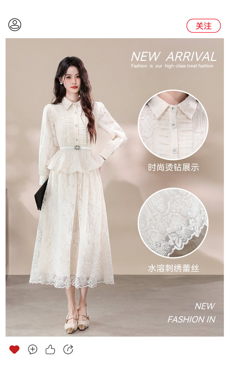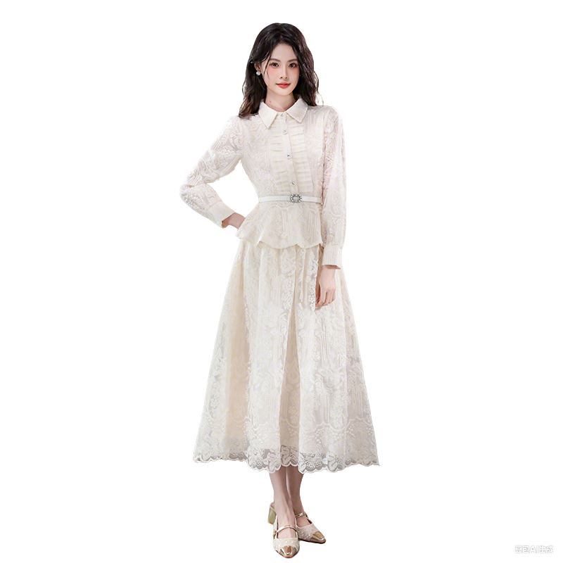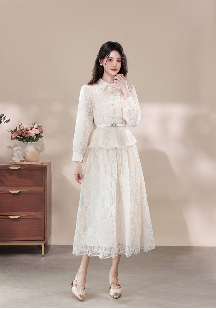 MY13744# 时尚小香风蕾丝刺绣收腰显瘦两件套连衣裙配腰带女裝貨源服裝批發