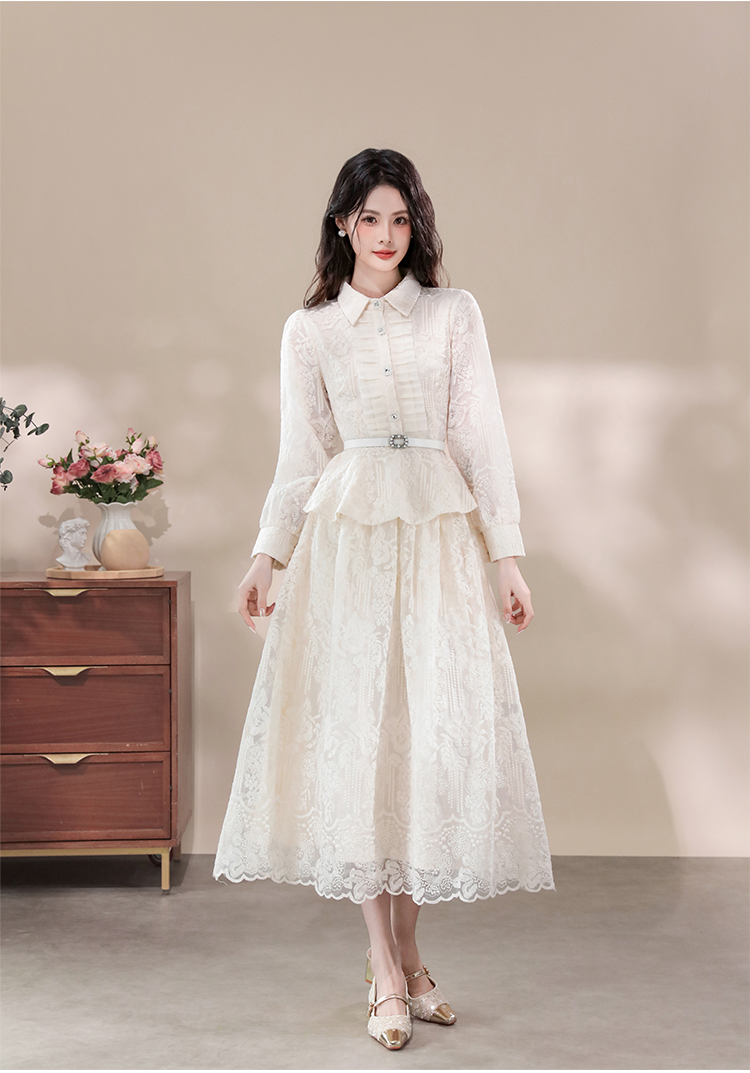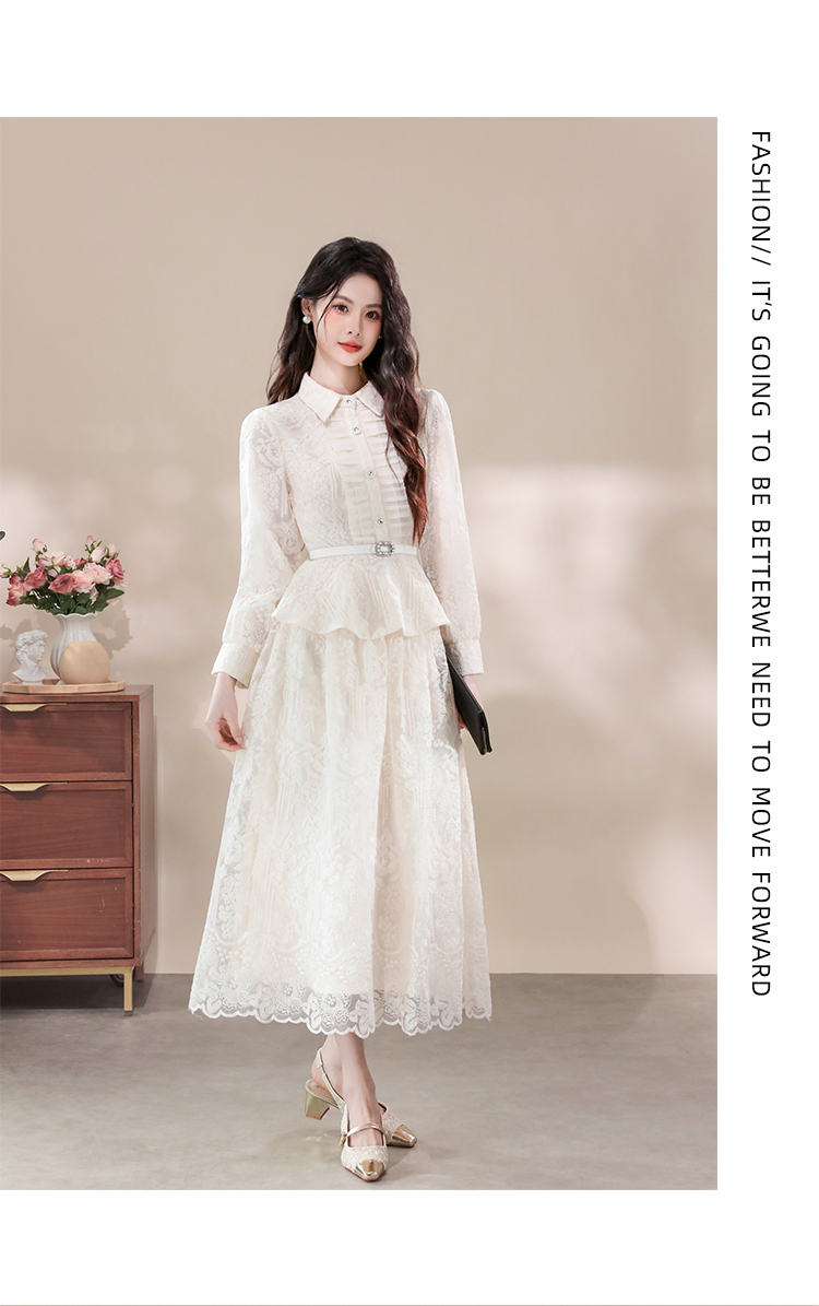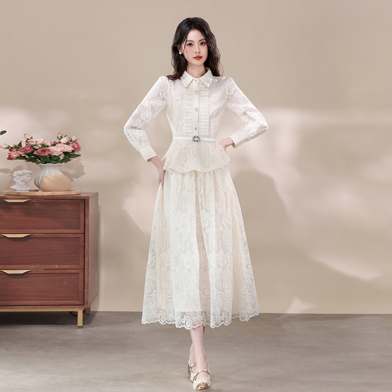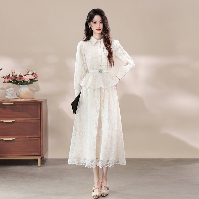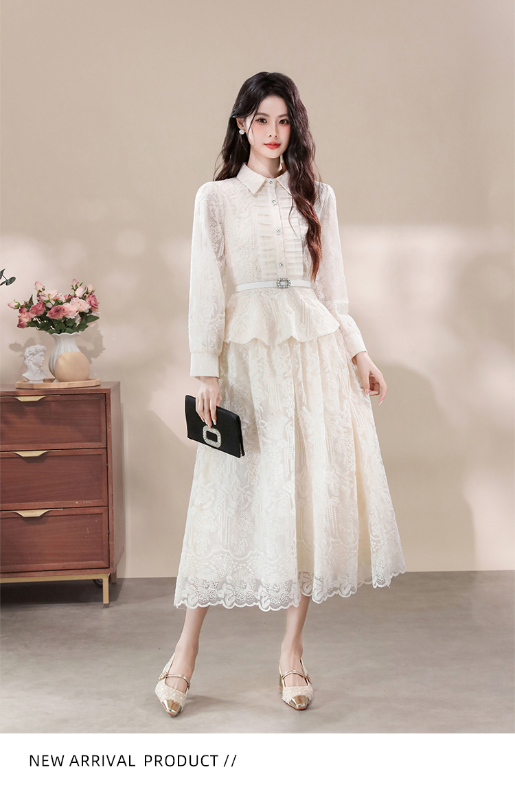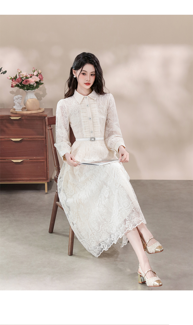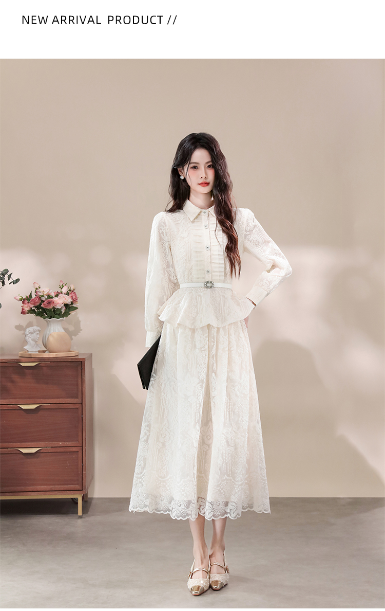 MY13744# 时尚小香风蕾丝刺绣收腰显瘦两件套连衣裙配腰带女裝貨源服裝批發