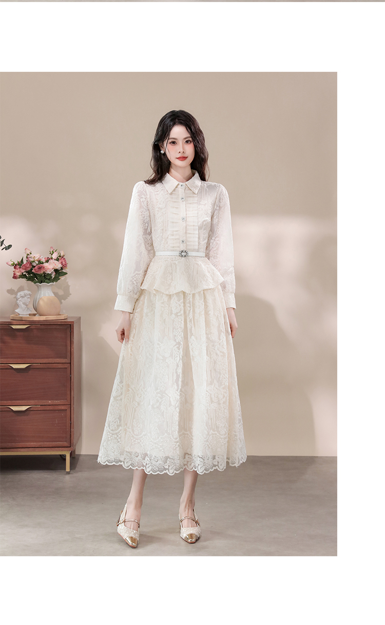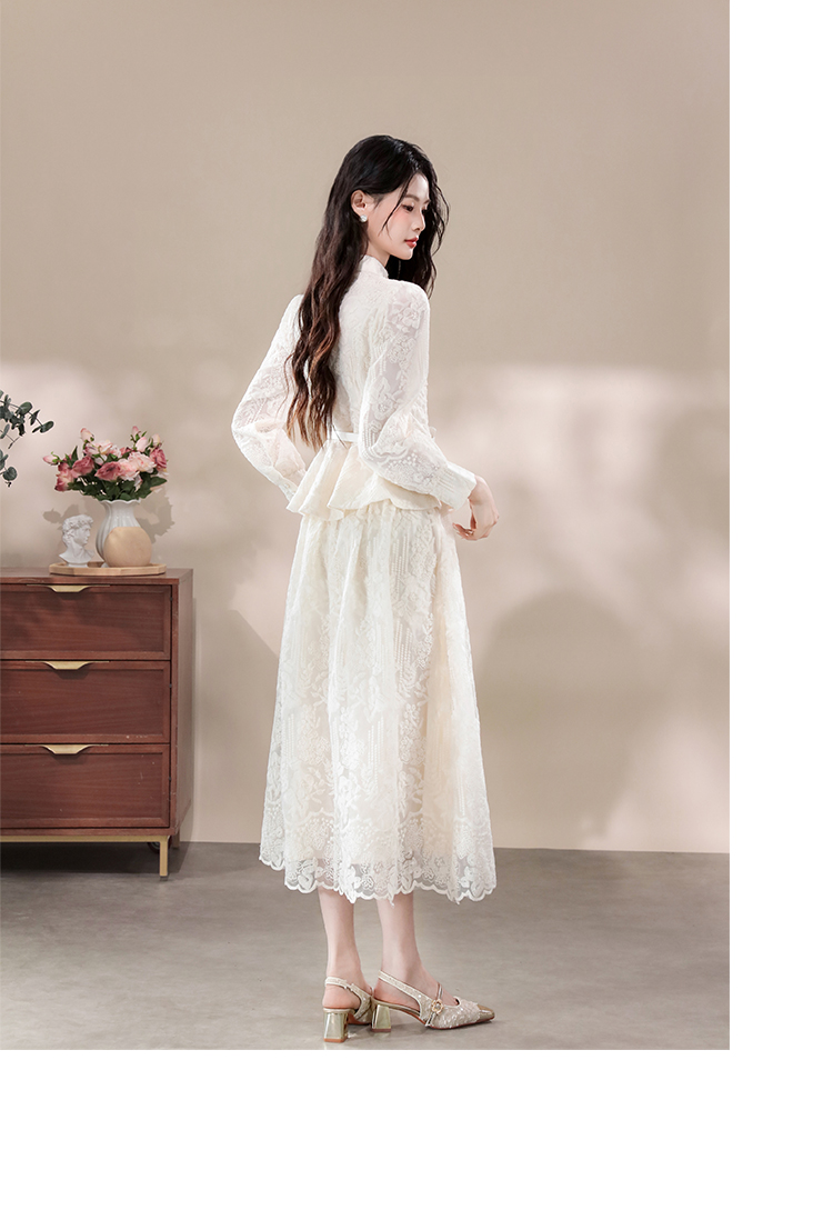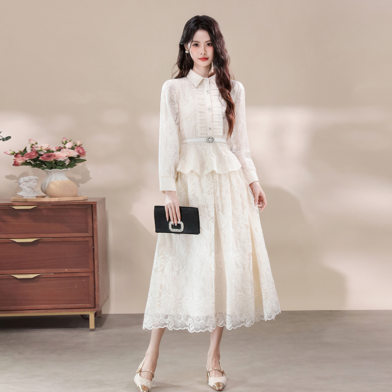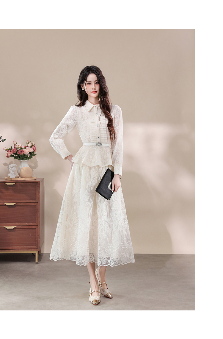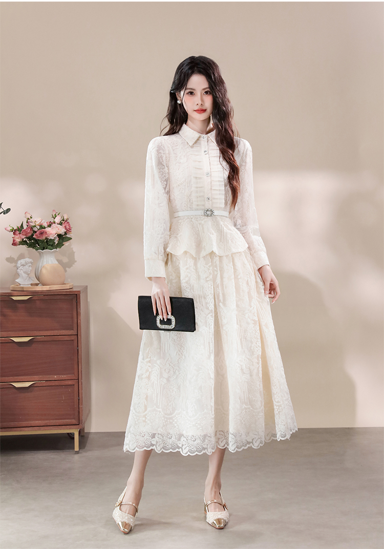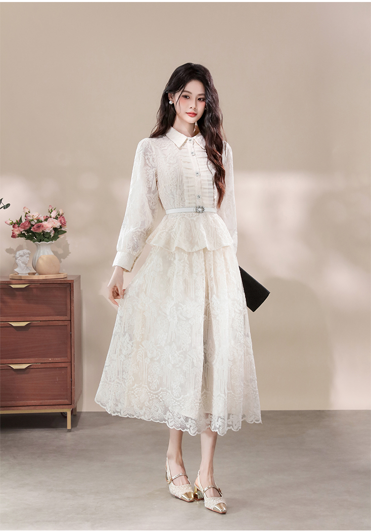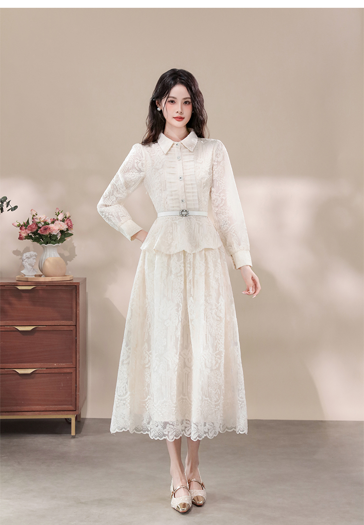MY13744# 时尚小香风蕾丝刺绣收腰显瘦两件套连衣裙配腰带女裝貨源服裝批發