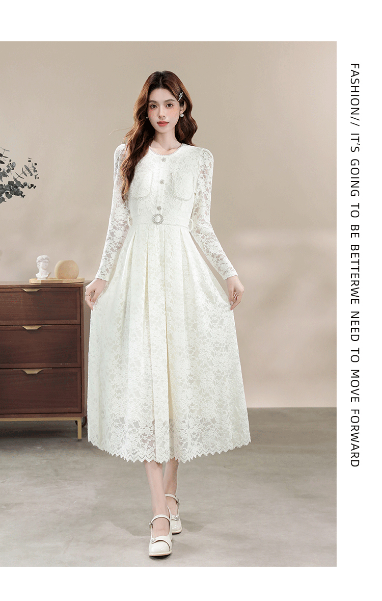 MY13747# 法式蕾丝连衣裙女秋装新款气质晚礼服长裙裙子女裝貨源服裝批發