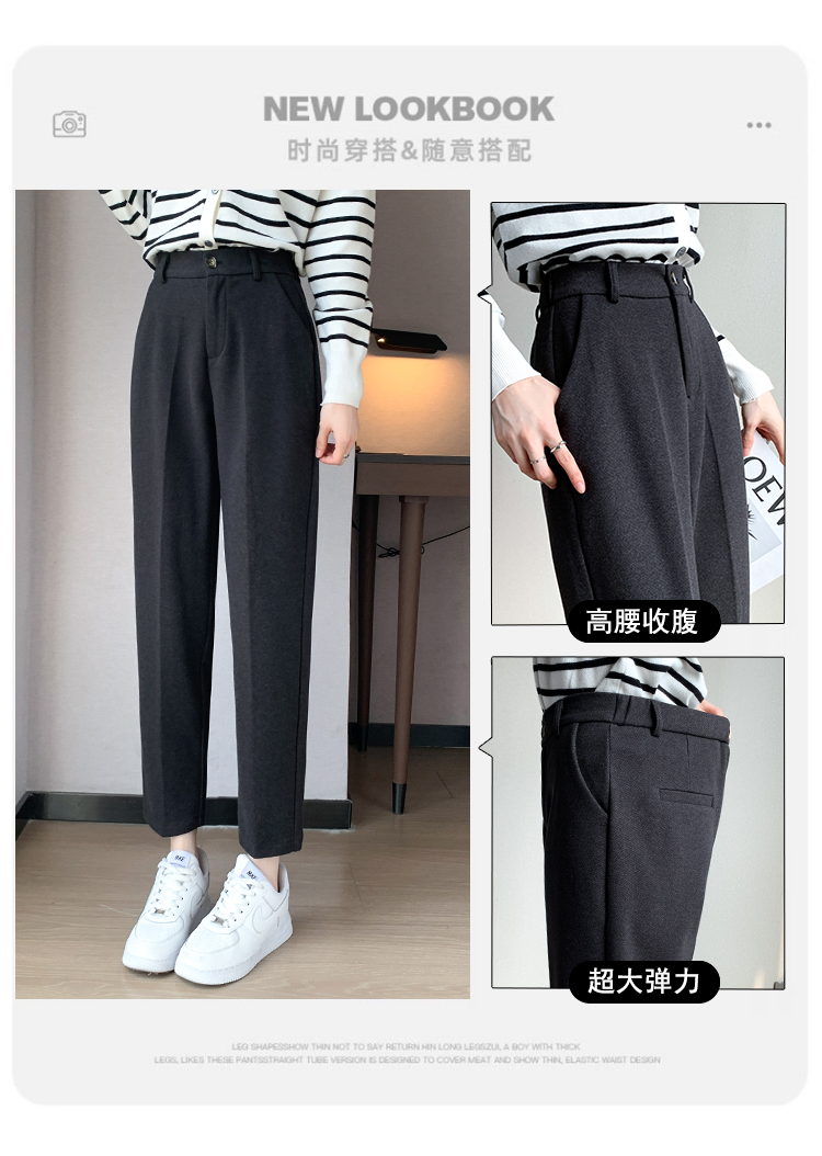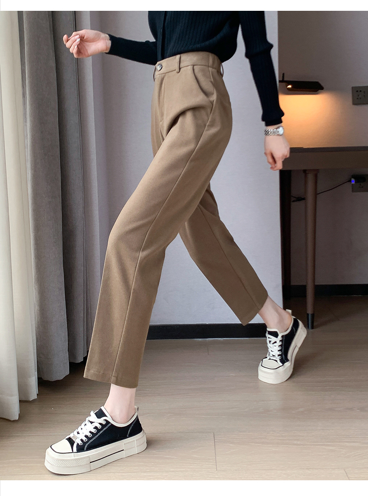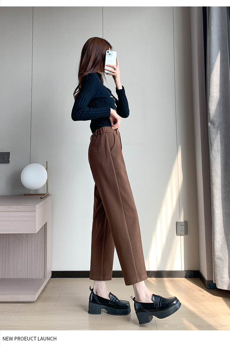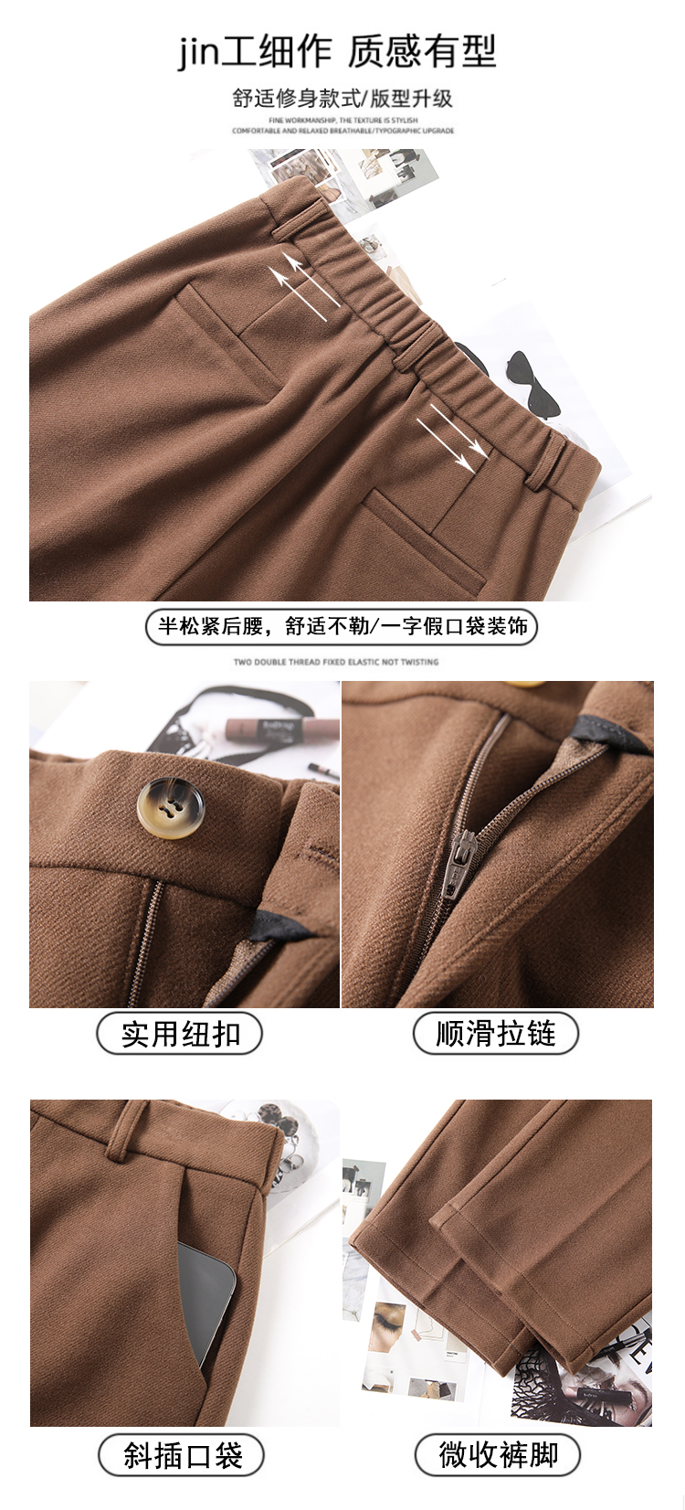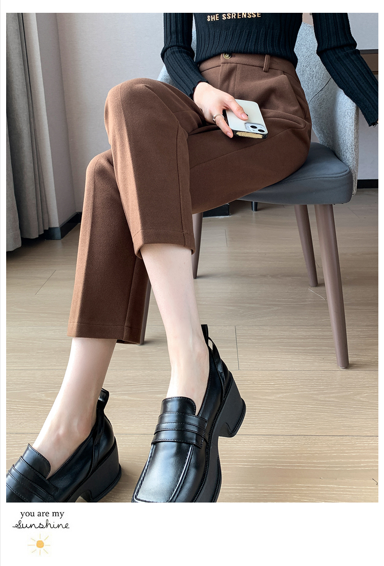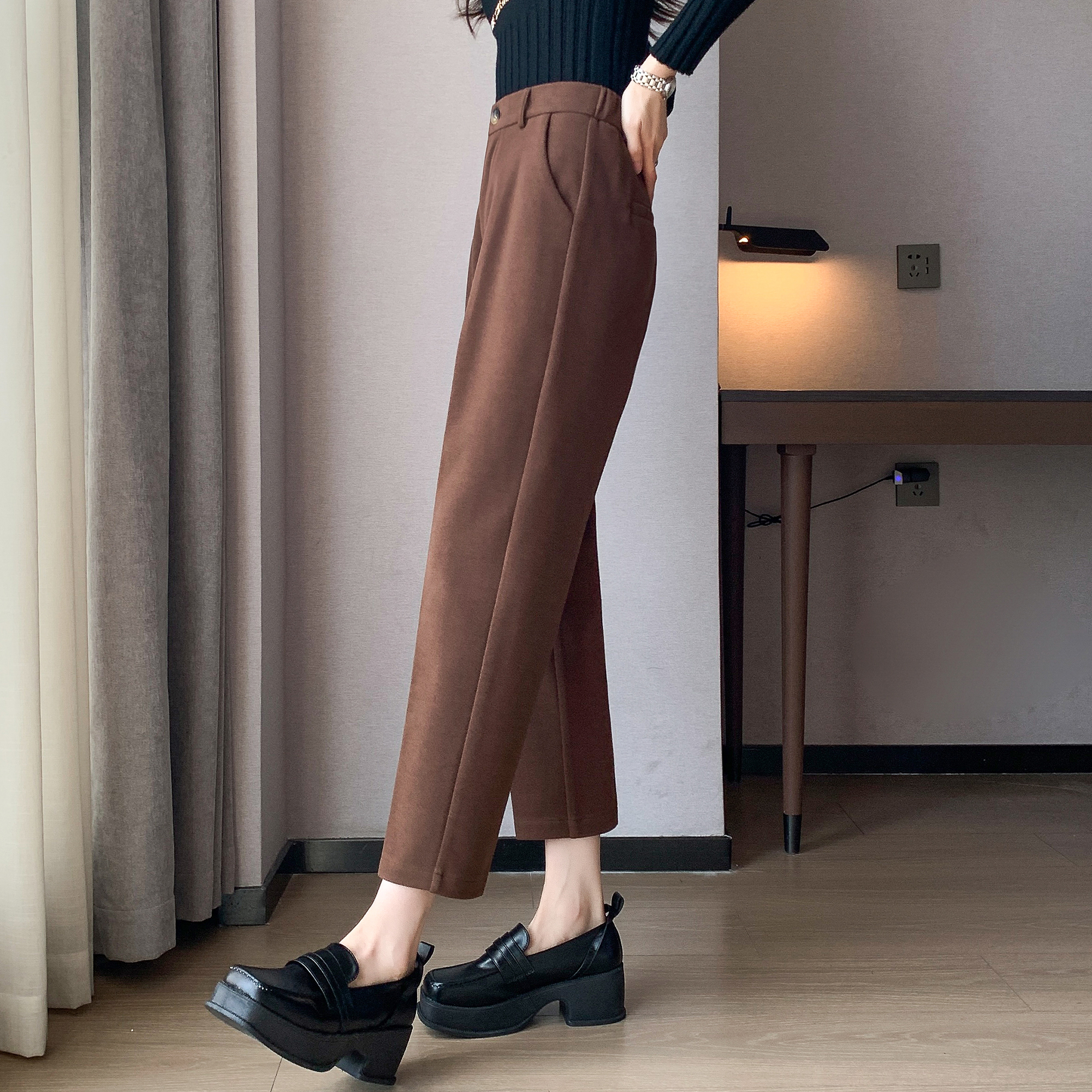 MY13749# 美拉德棕色直筒西裤女秋冬新款高腰休闲毛呢烟管裤加绒显瘦九分裤女裝貨源服裝批發