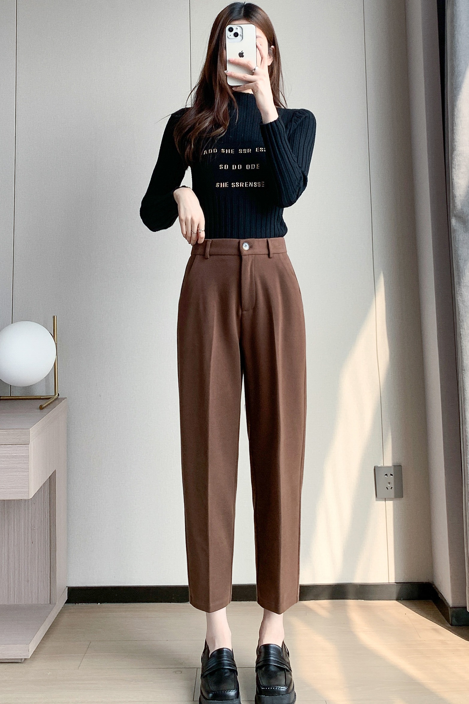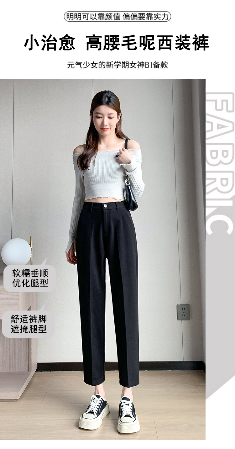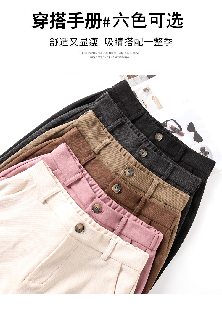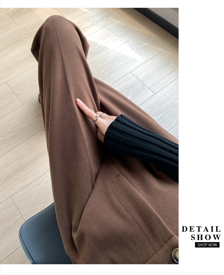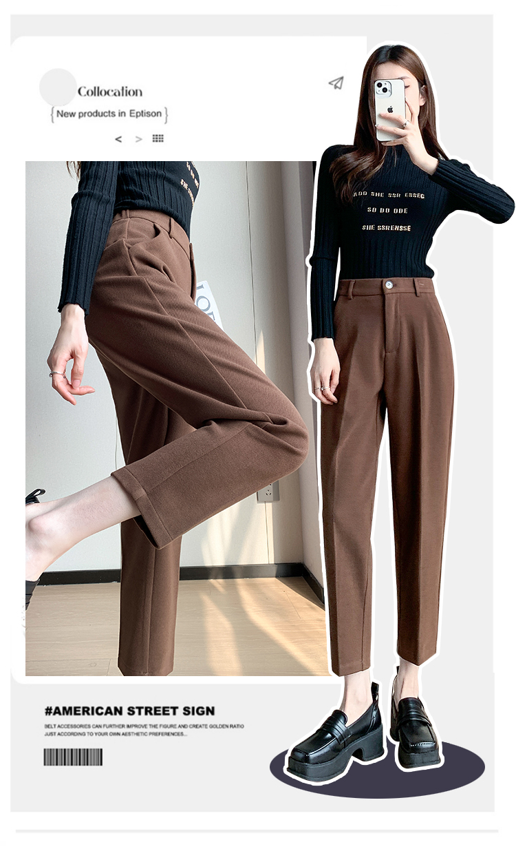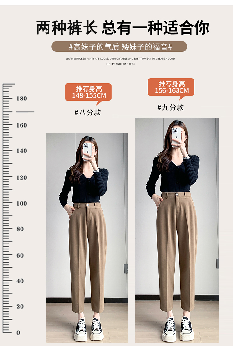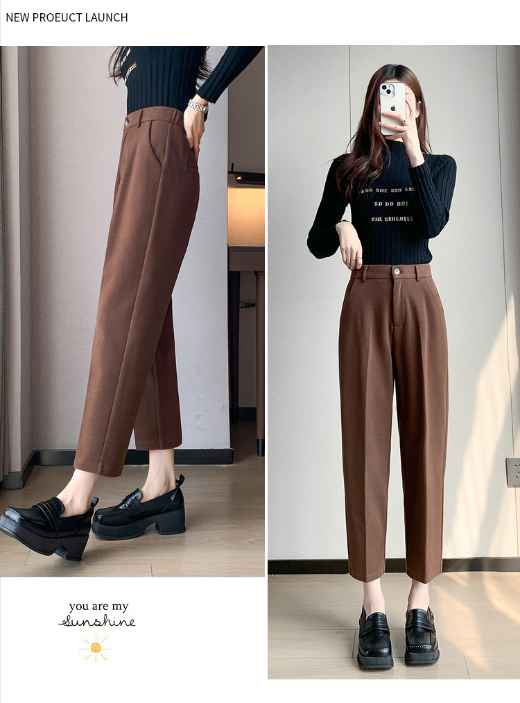 MY13749# 美拉德棕色直筒西裤女秋冬新款高腰休闲毛呢烟管裤加绒显瘦九分裤女裝貨源服裝批發