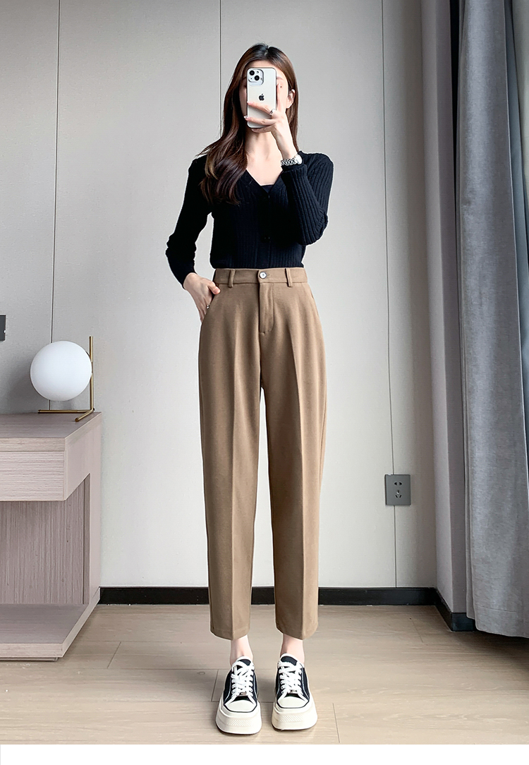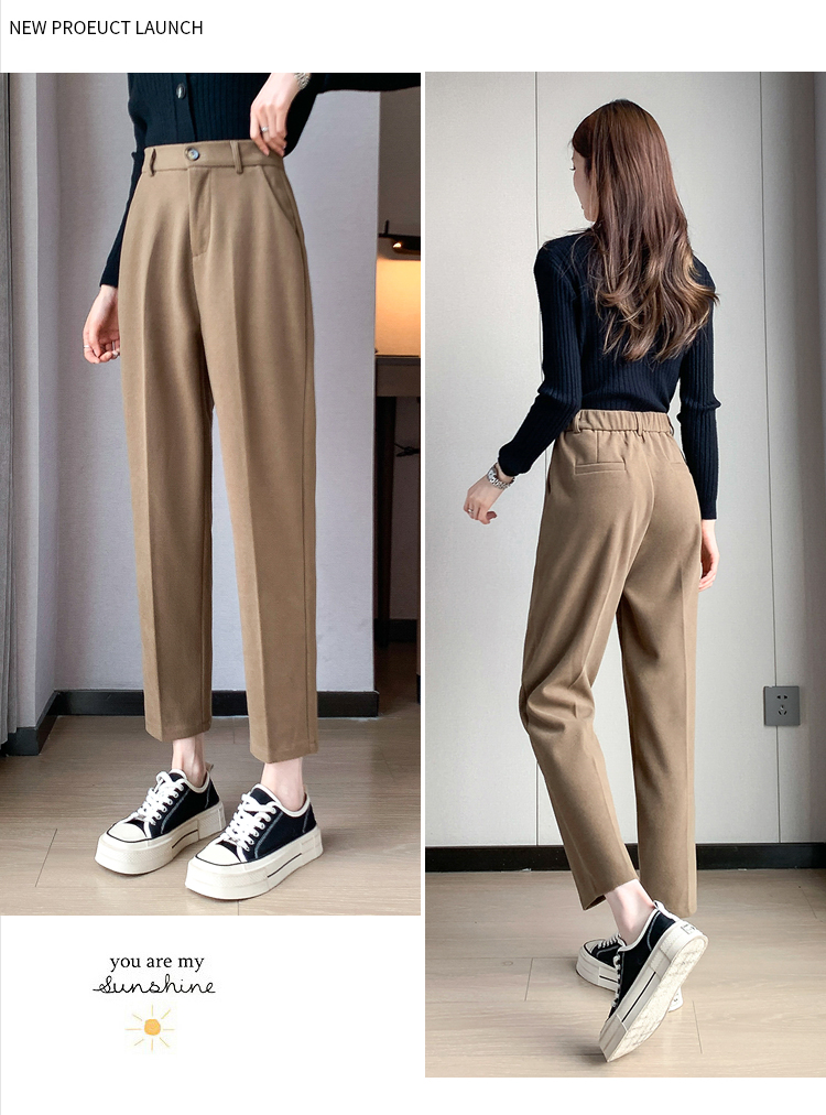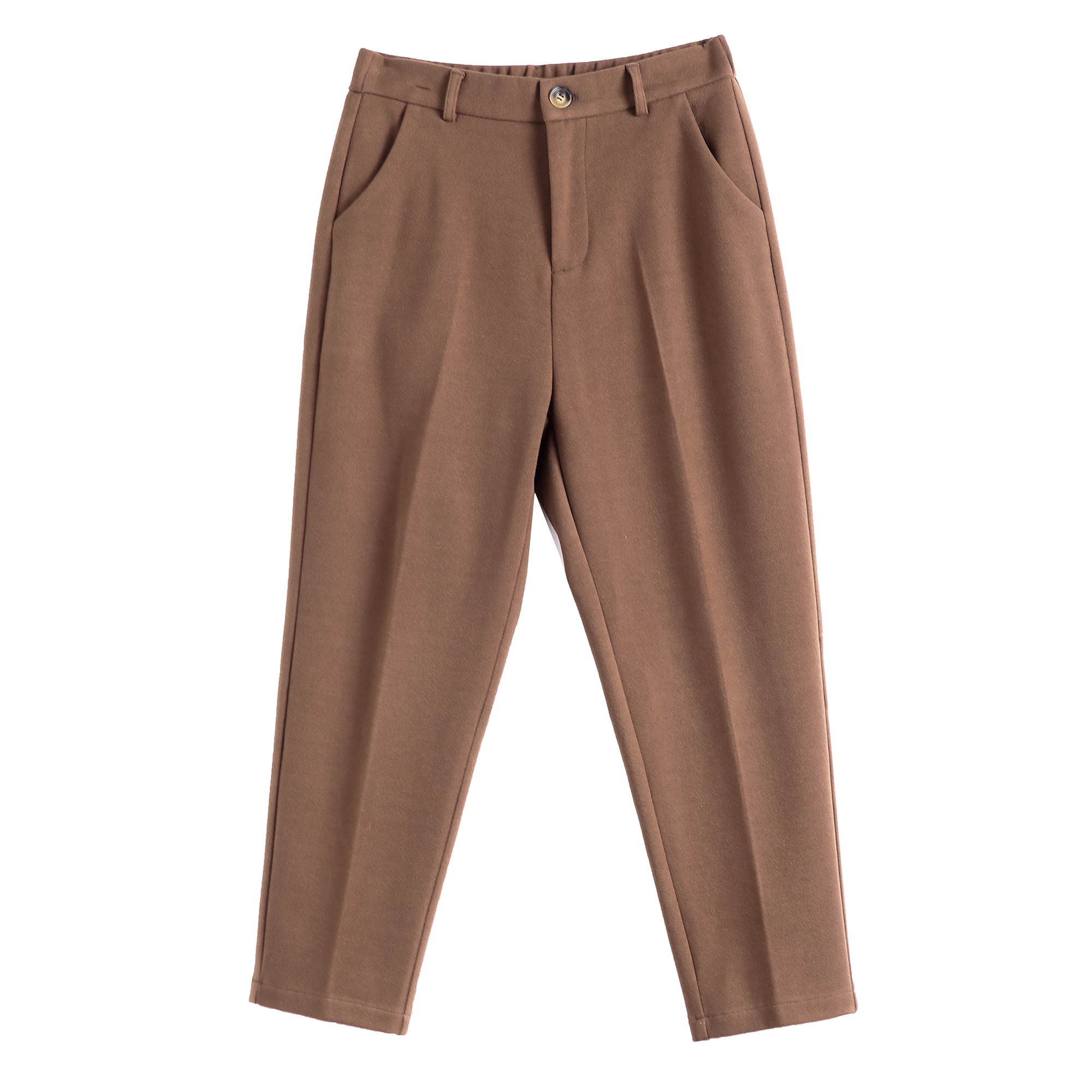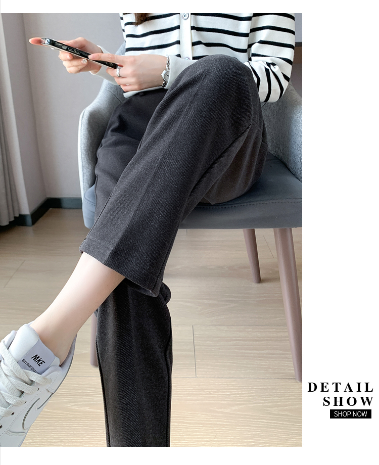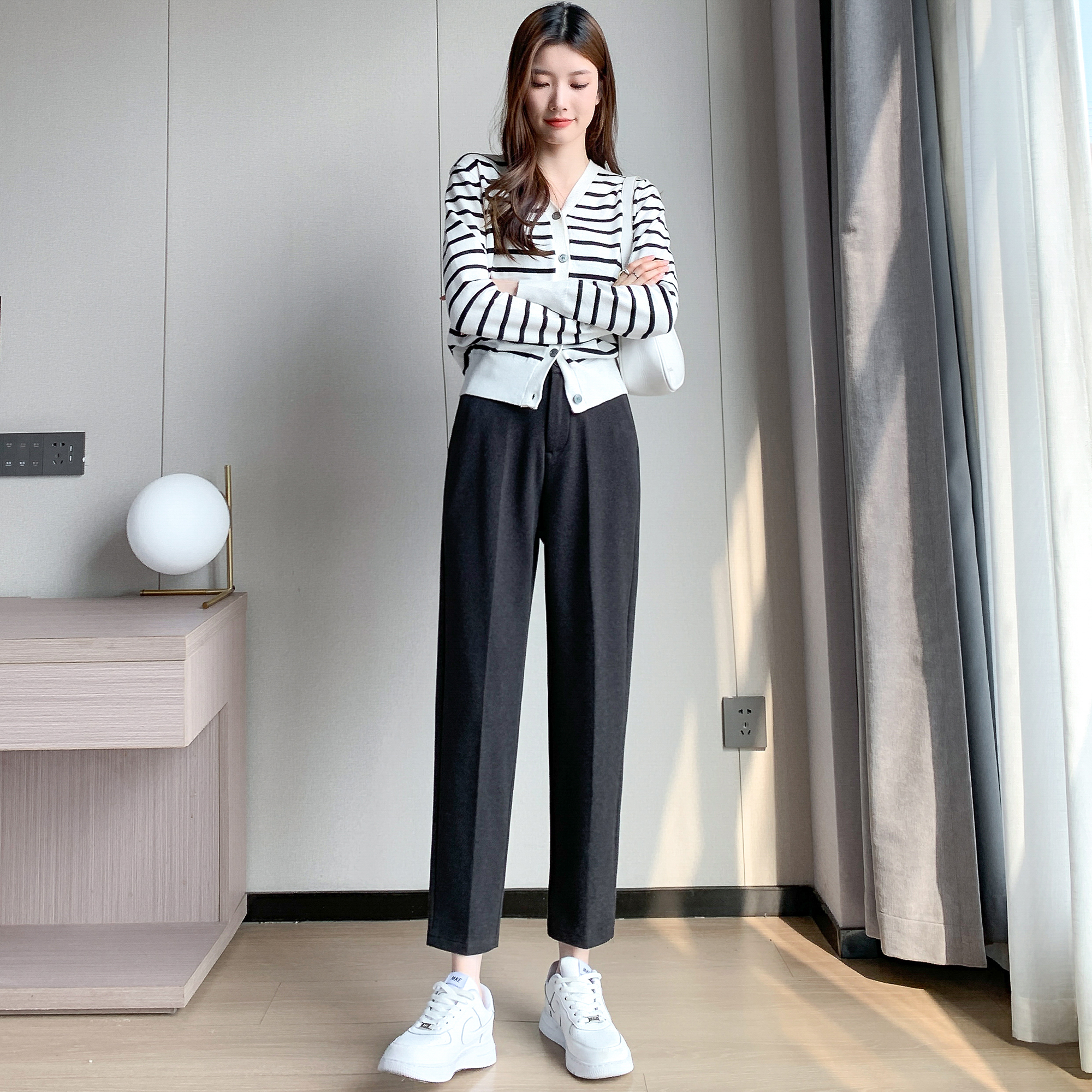 MY13749# 美拉德棕色直筒西裤女秋冬新款高腰休闲毛呢烟管裤加绒显瘦九分裤女裝貨源服裝批發