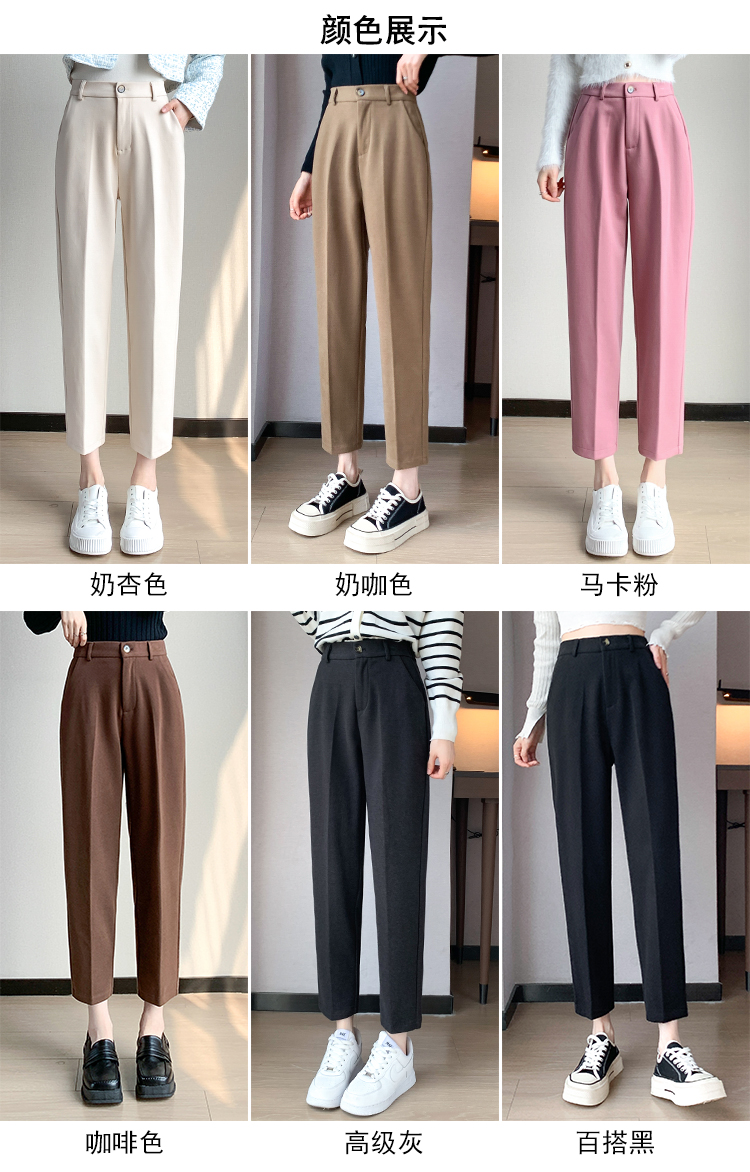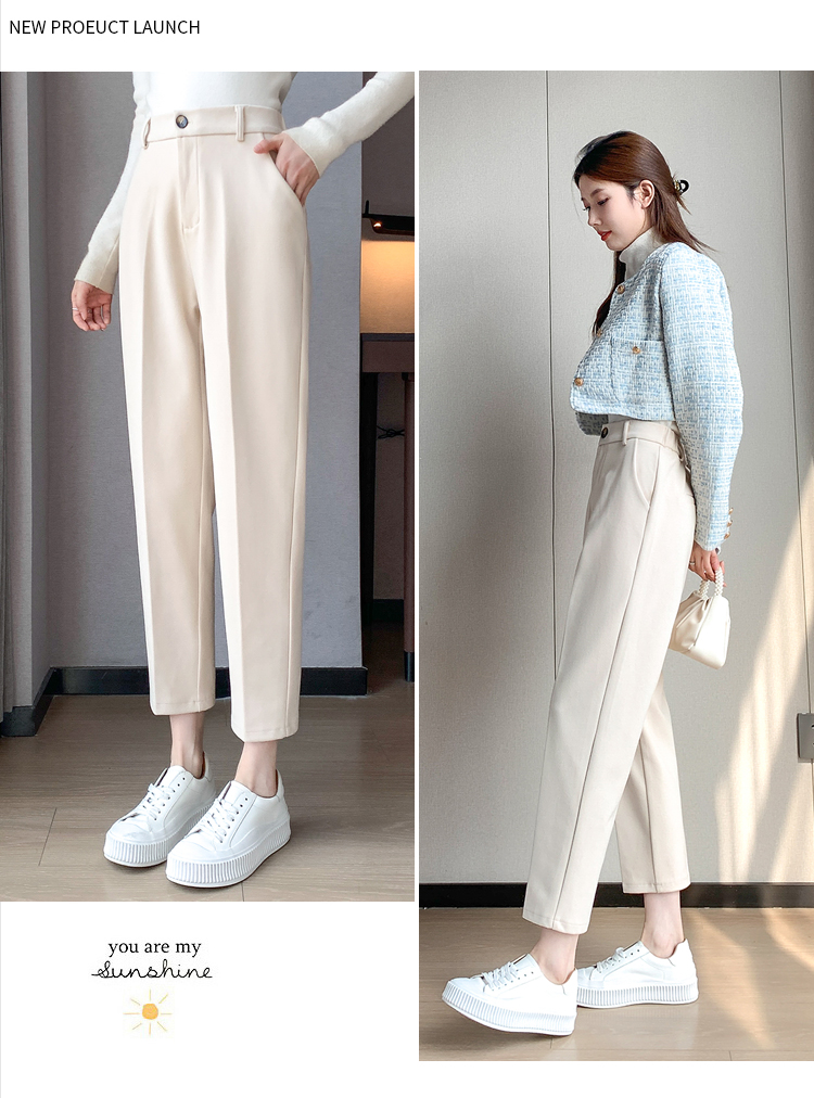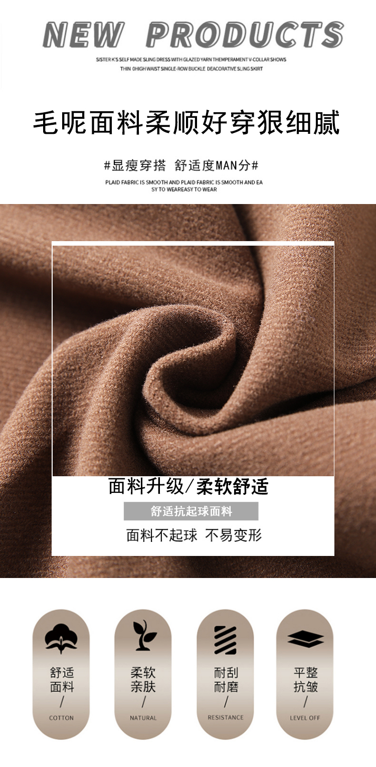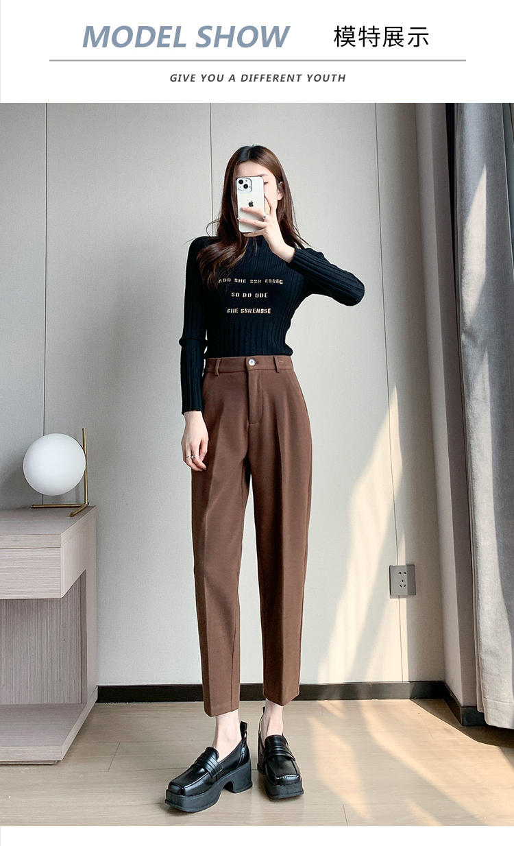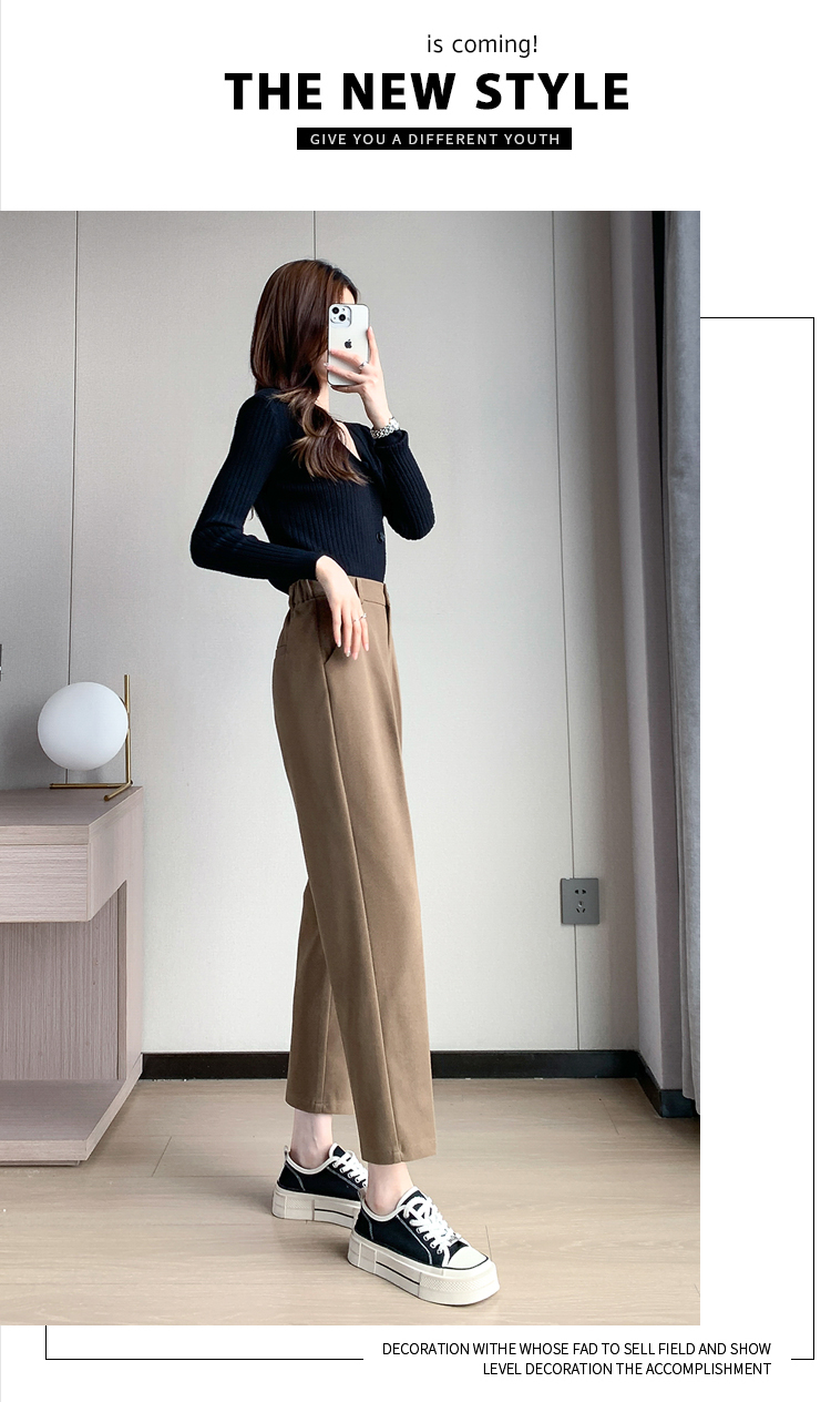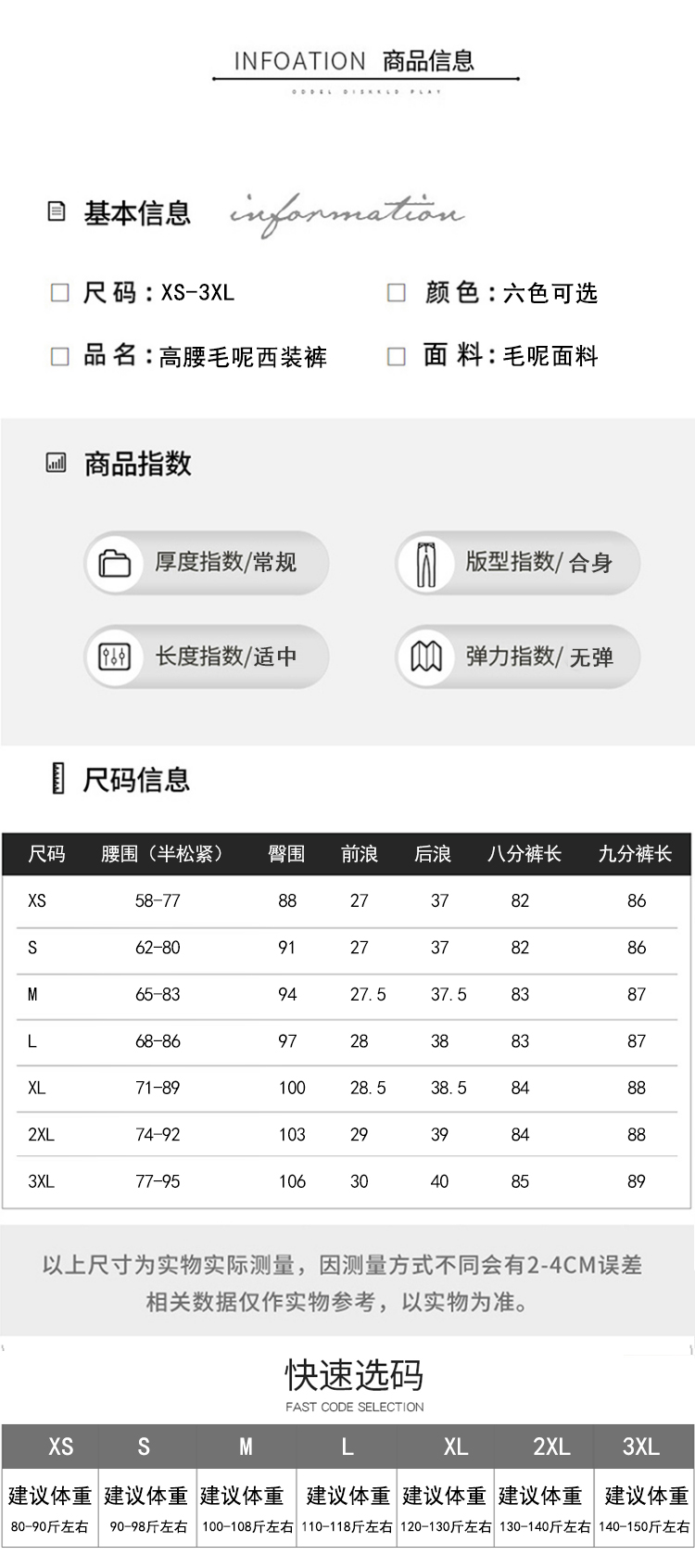 MY13749# 美拉德棕色直筒西裤女秋冬新款高腰休闲毛呢烟管裤加绒显瘦九分裤女裝貨源服裝批發