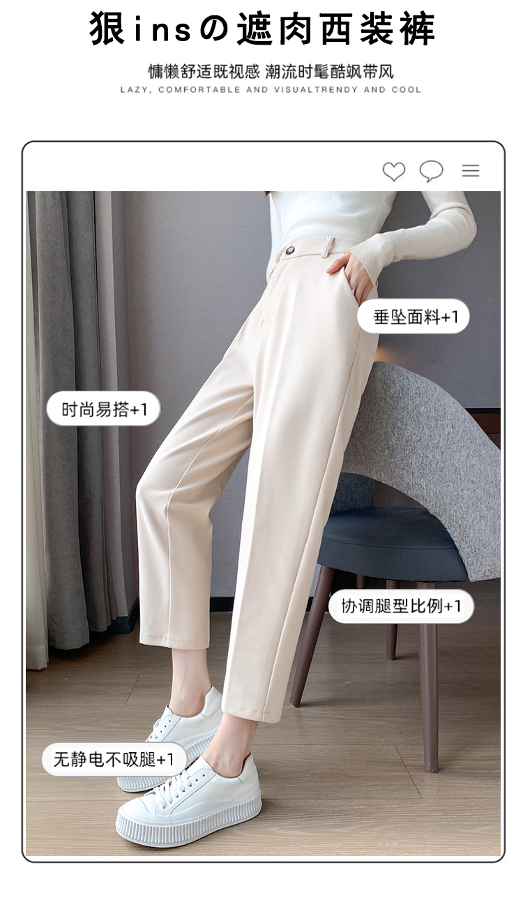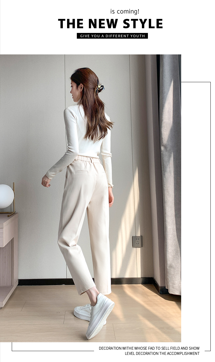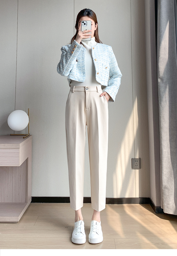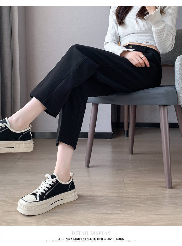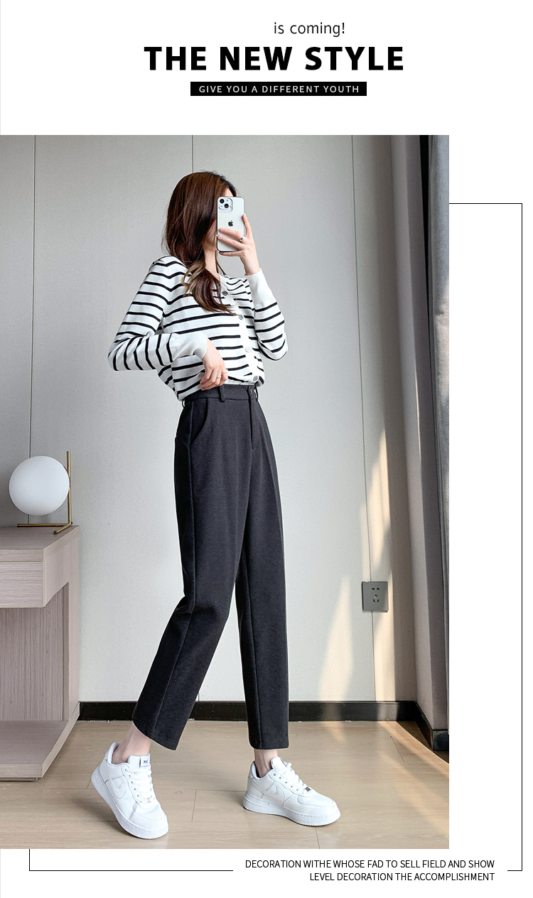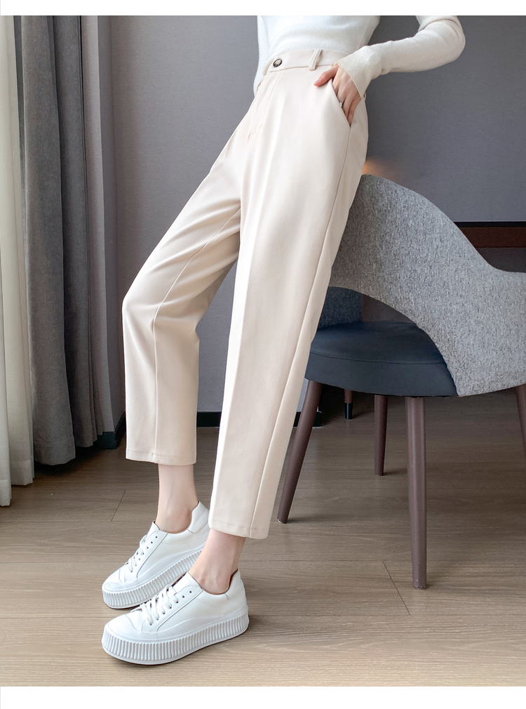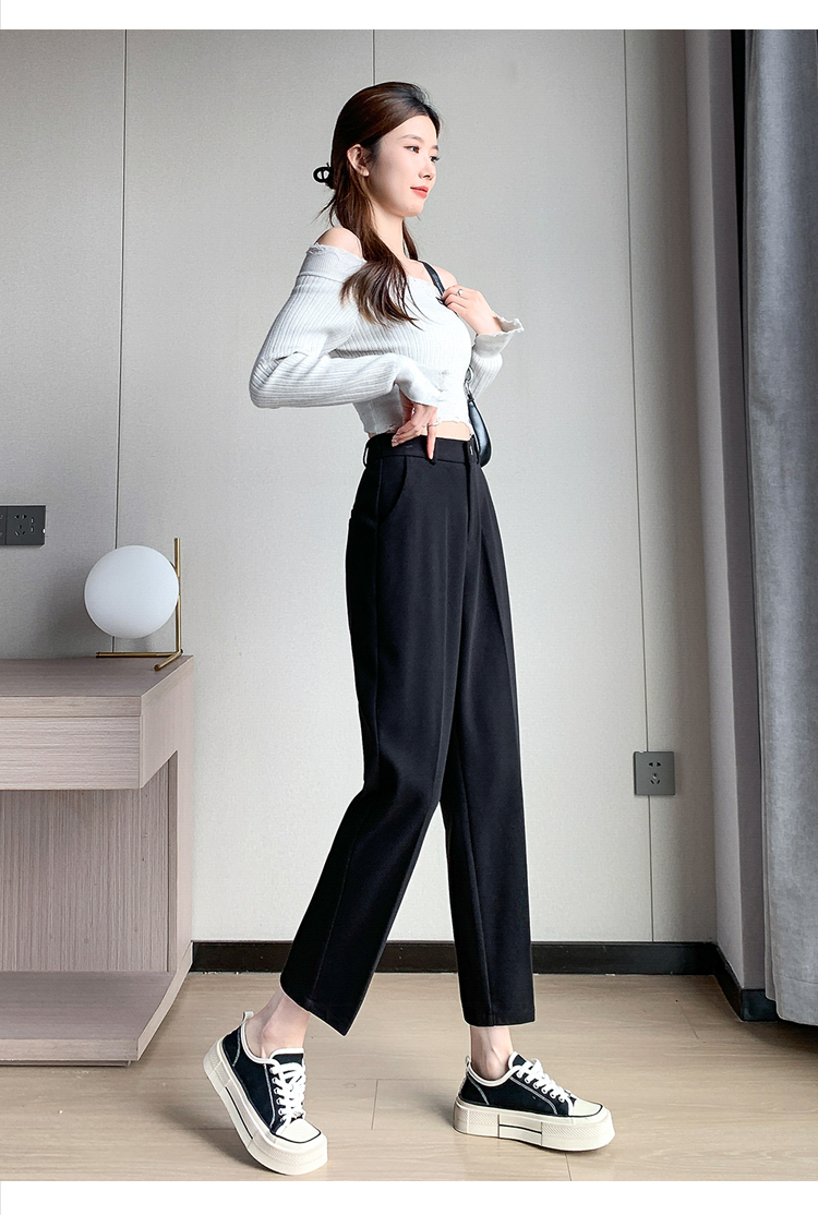 MY13749# 美拉德棕色直筒西裤女秋冬新款高腰休闲毛呢烟管裤加绒显瘦九分裤女裝貨源服裝批發
