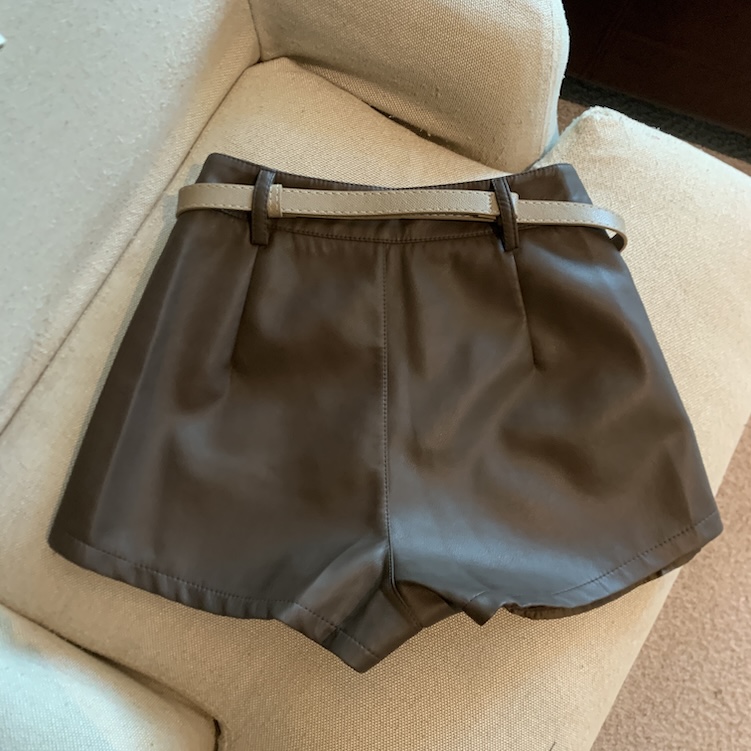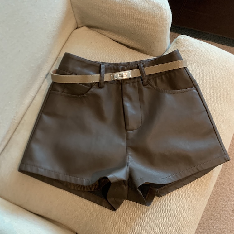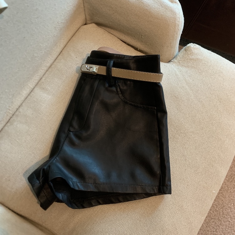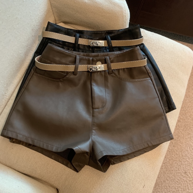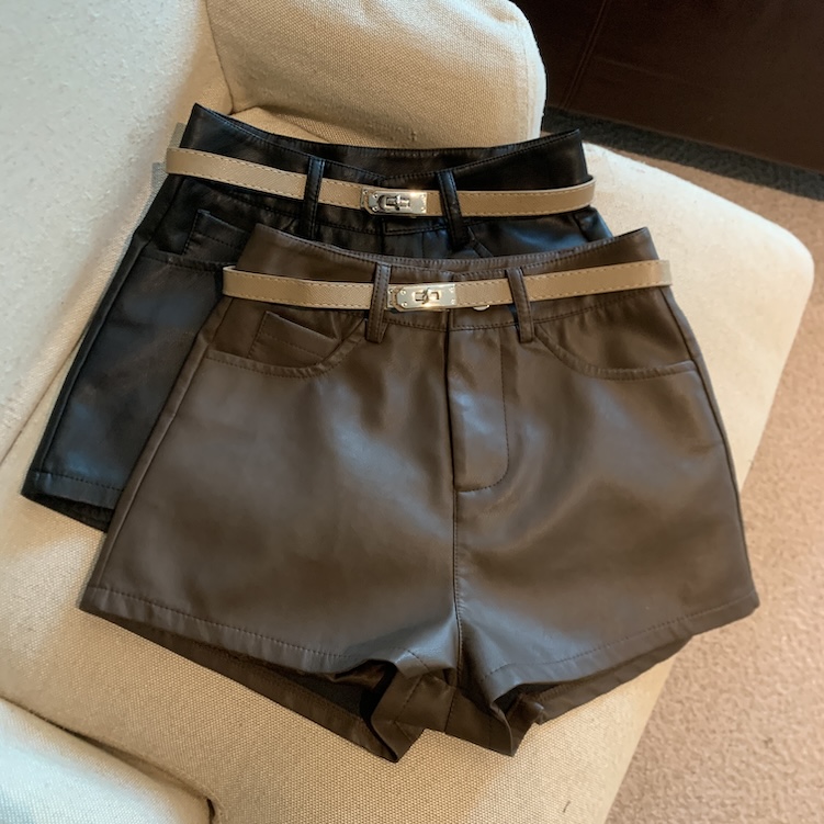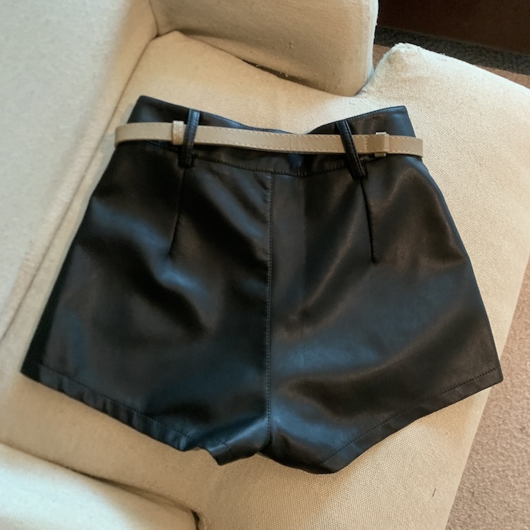 MY13753# 复古针织Pu皮短裤女裝貨源服裝批發