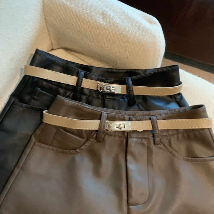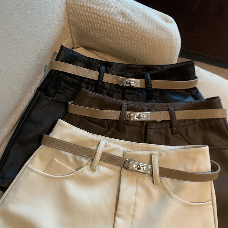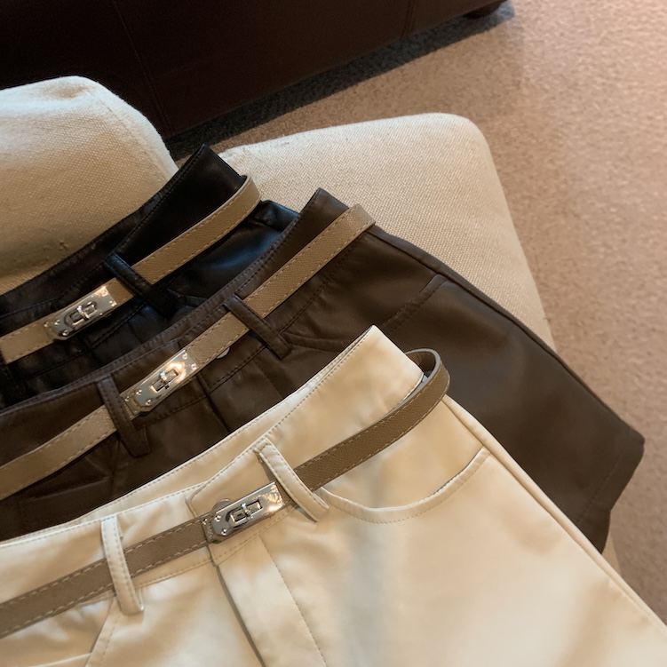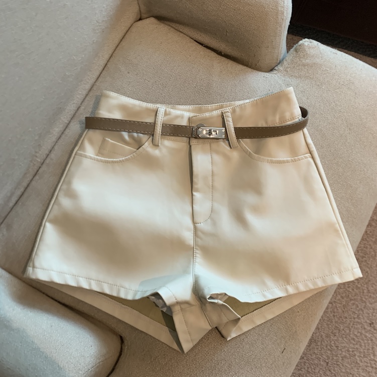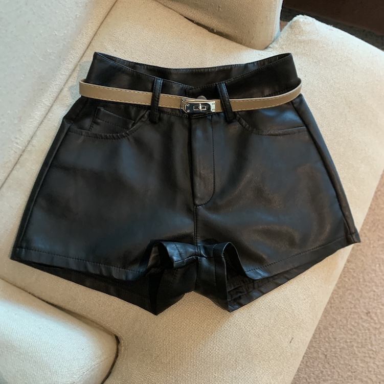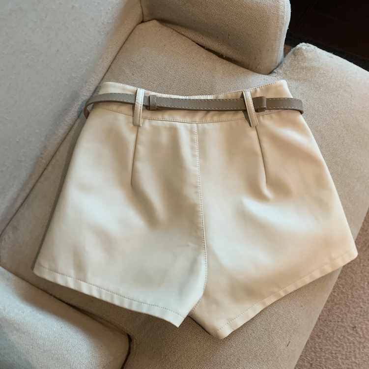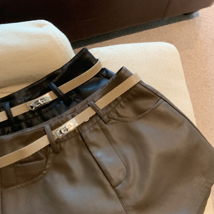 MY13753# 复古针织Pu皮短裤女裝貨源服裝批發