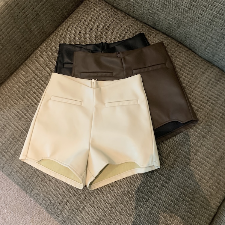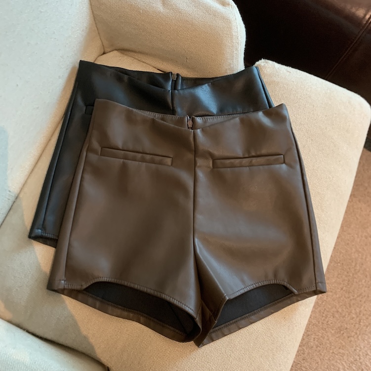 MY13754# 复古pu 皮短裤女裝貨源服裝批發