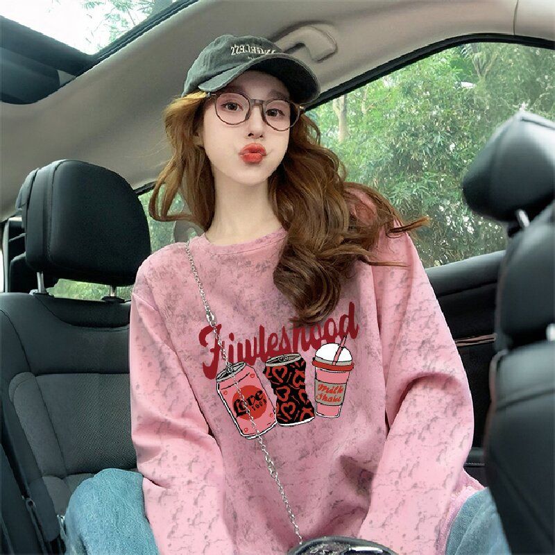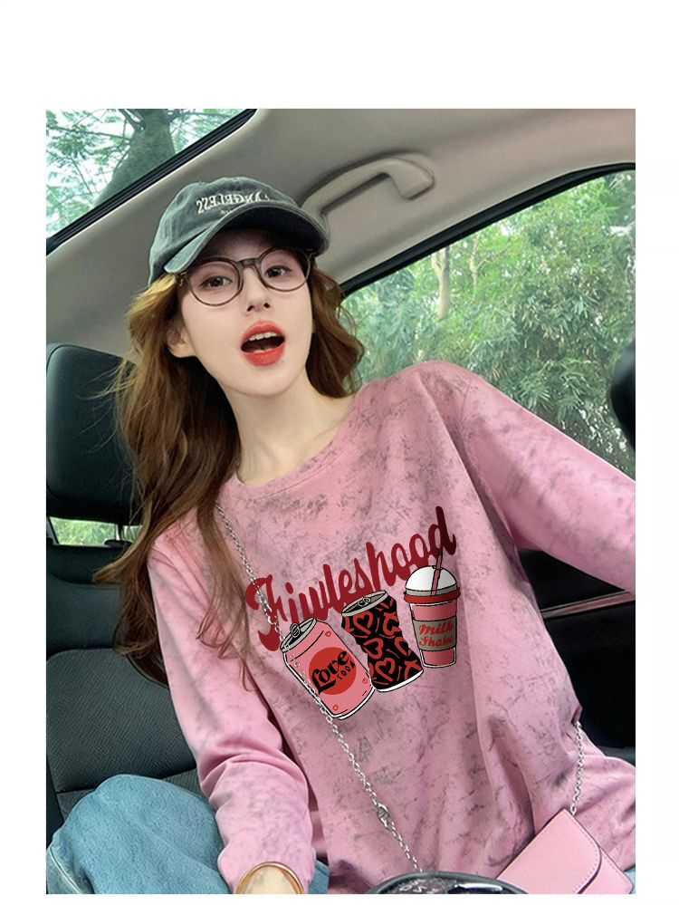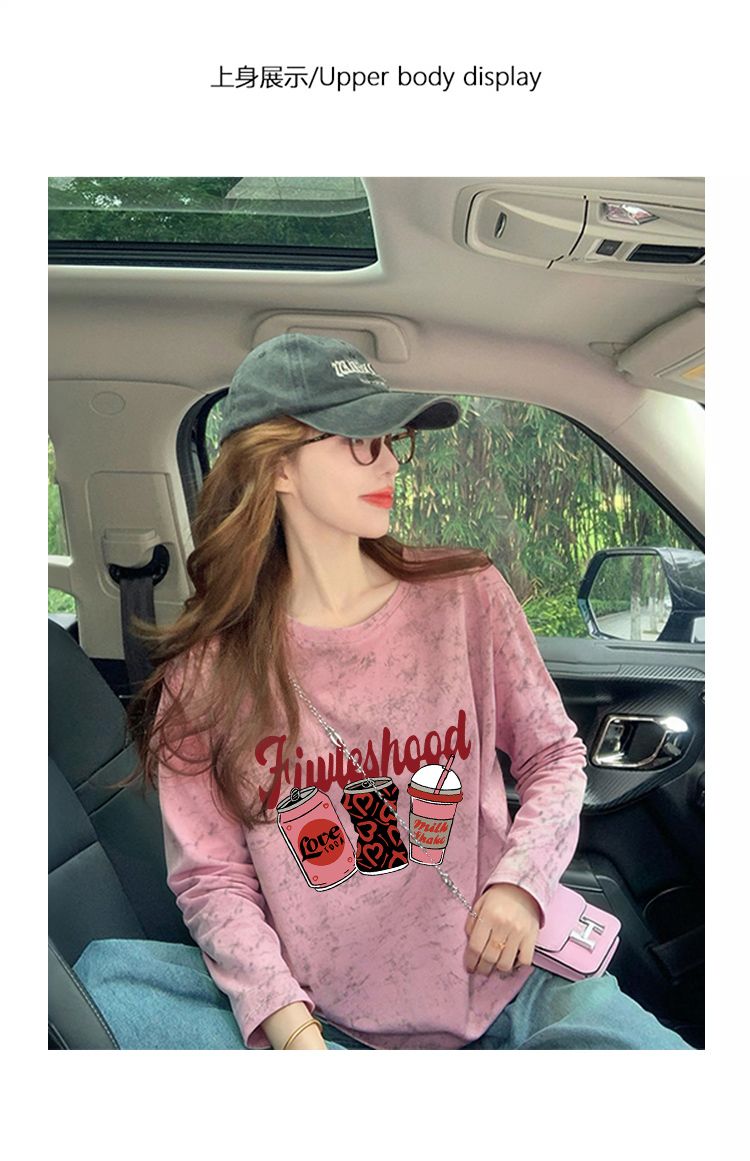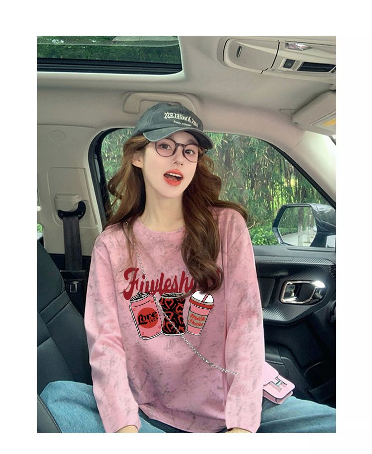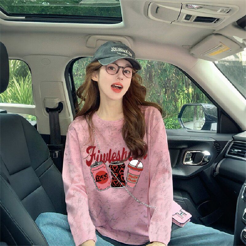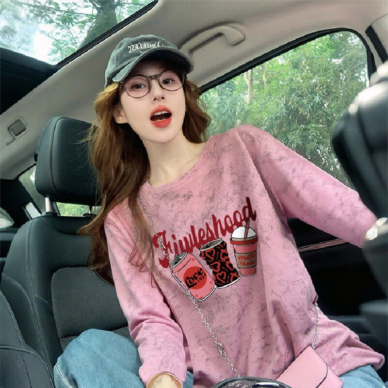 MY13761# 双纱纯棉/后包领高级感扎染纯棉长袖T恤女涂鸦宽松上衣女裝貨源服裝批發