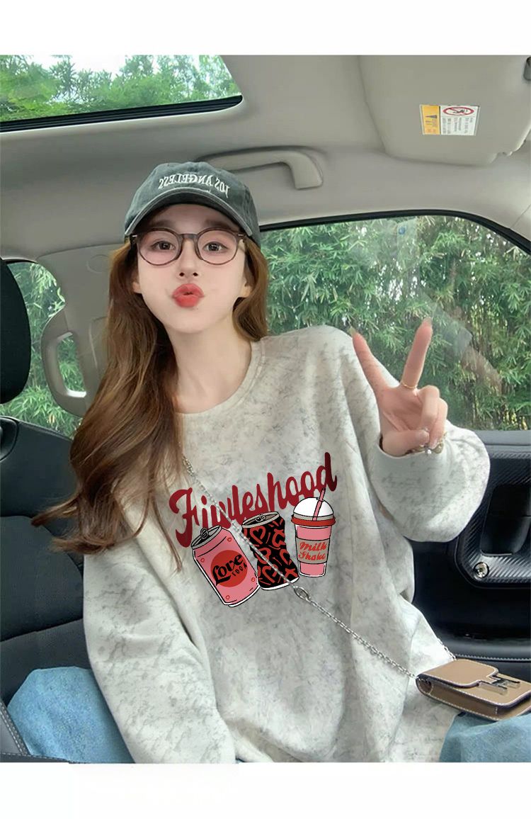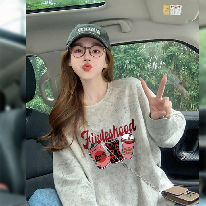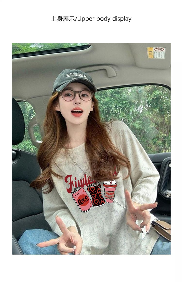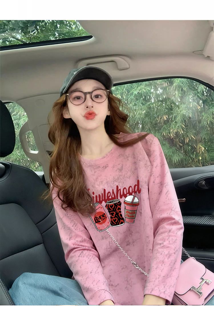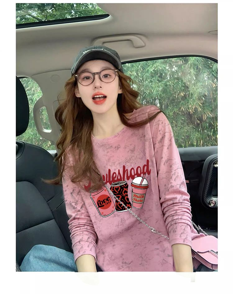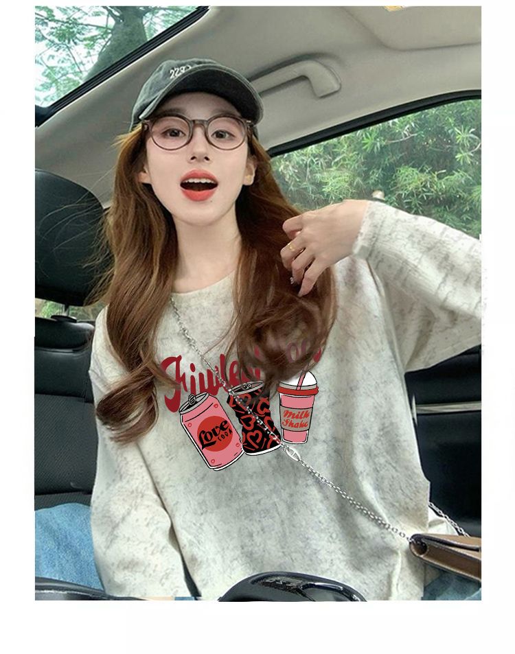 MY13761# 双纱纯棉/后包领高级感扎染纯棉长袖T恤女涂鸦宽松上衣女裝貨源服裝批發