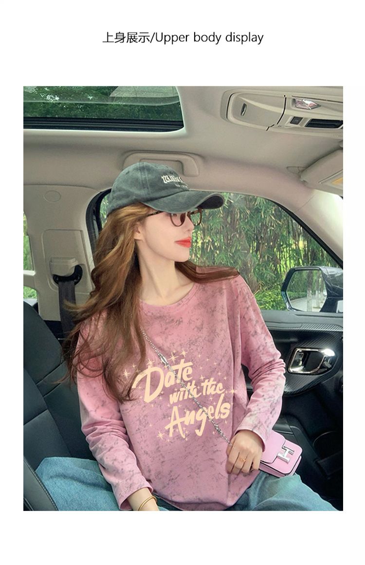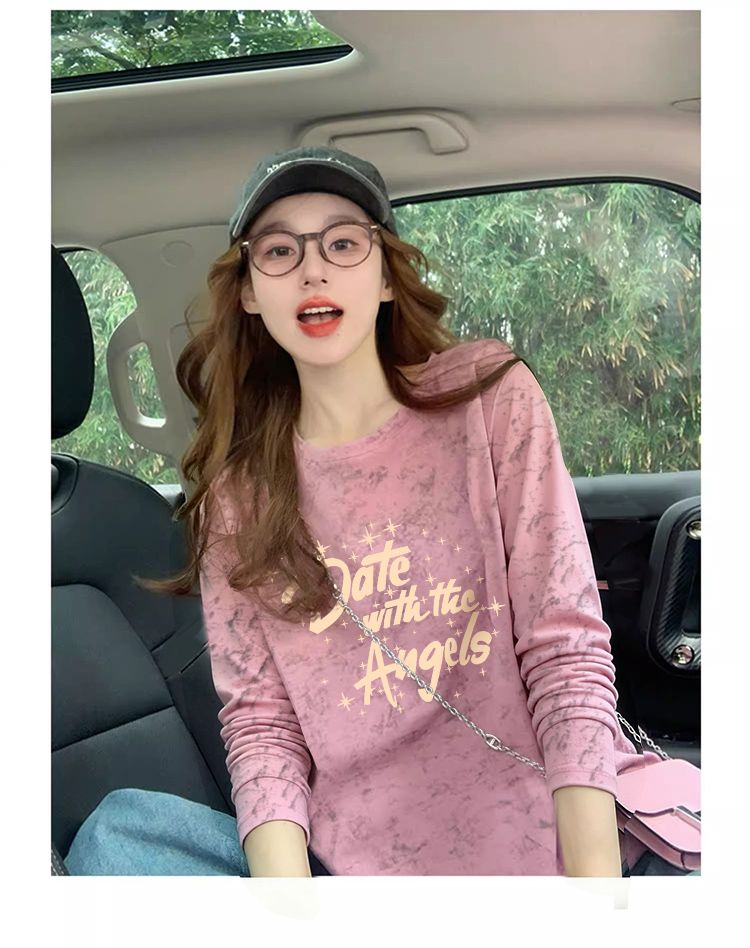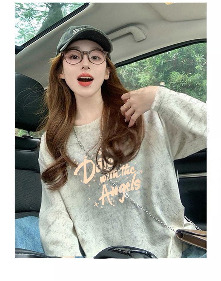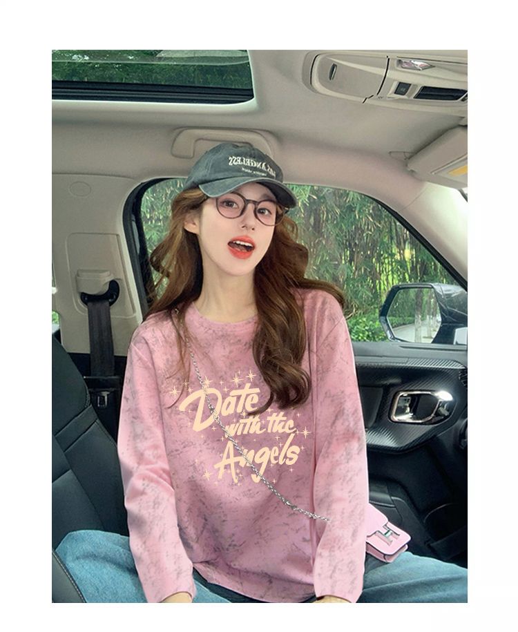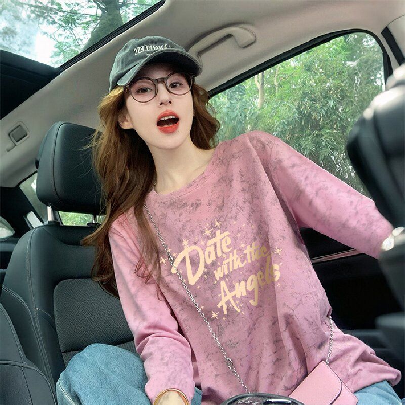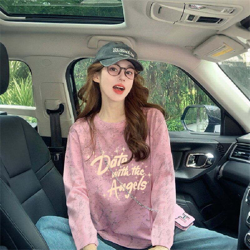 MY13762# 双纱纯棉/后包领高级感扎染纯棉长袖T恤女涂鸦宽松上衣女裝貨源服裝批發