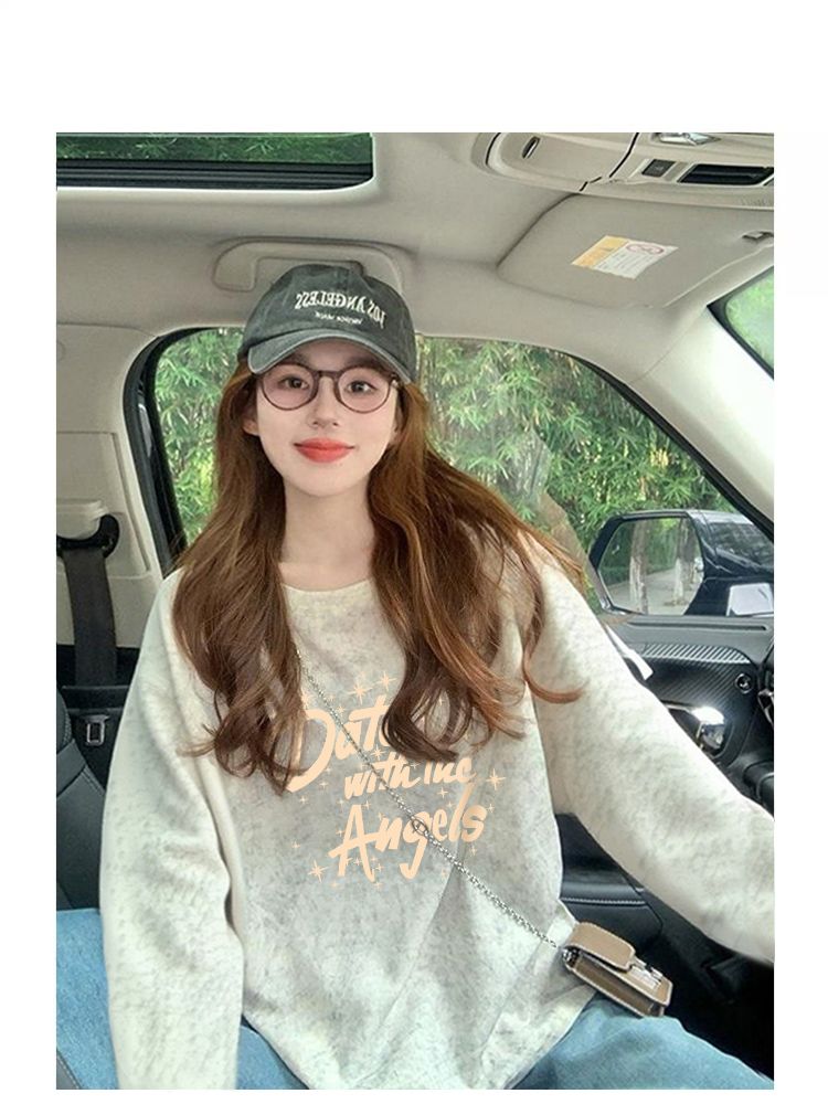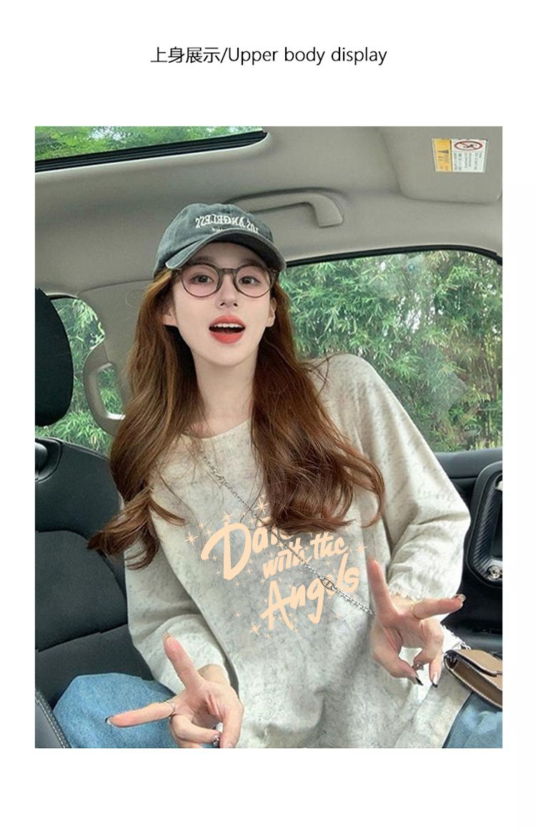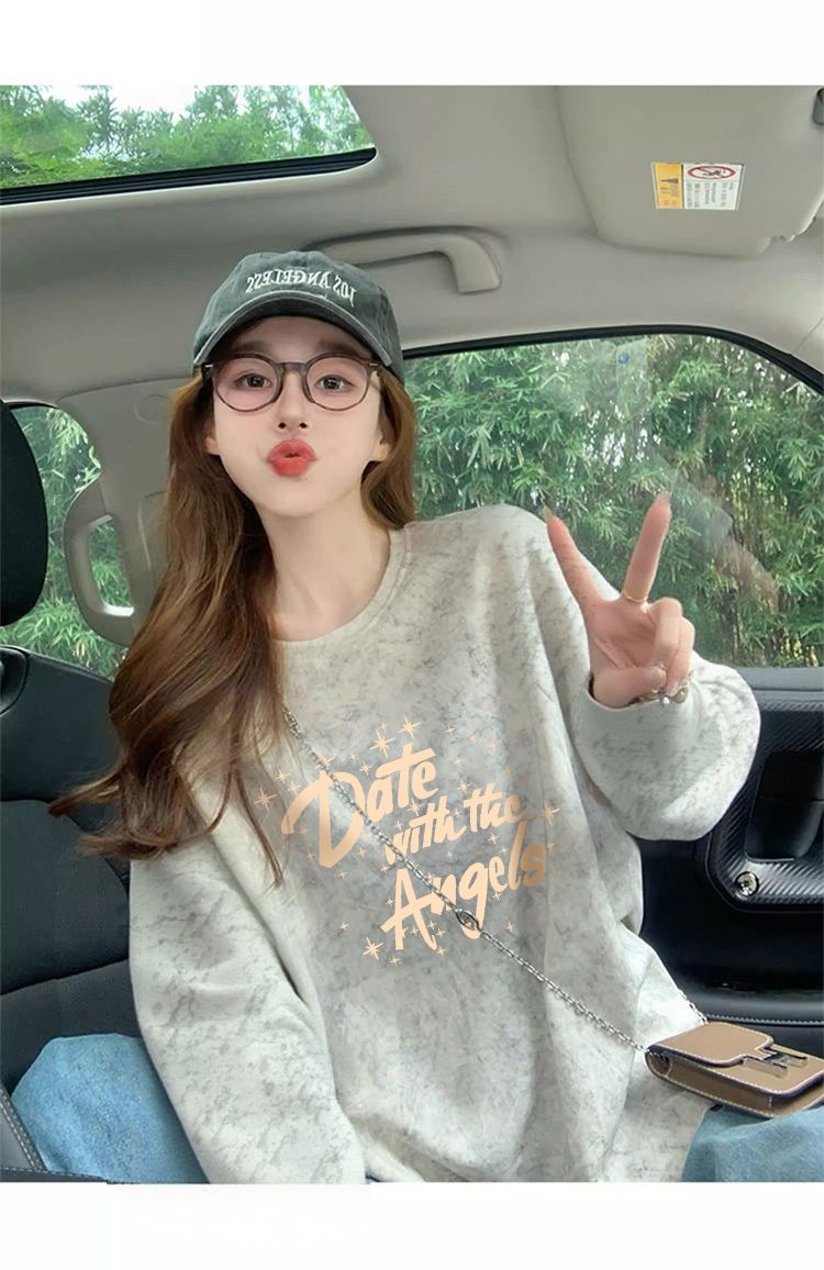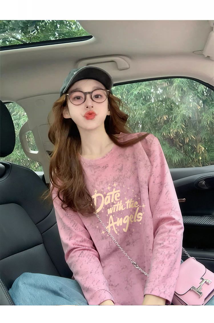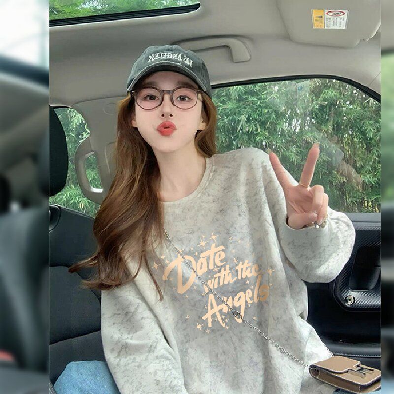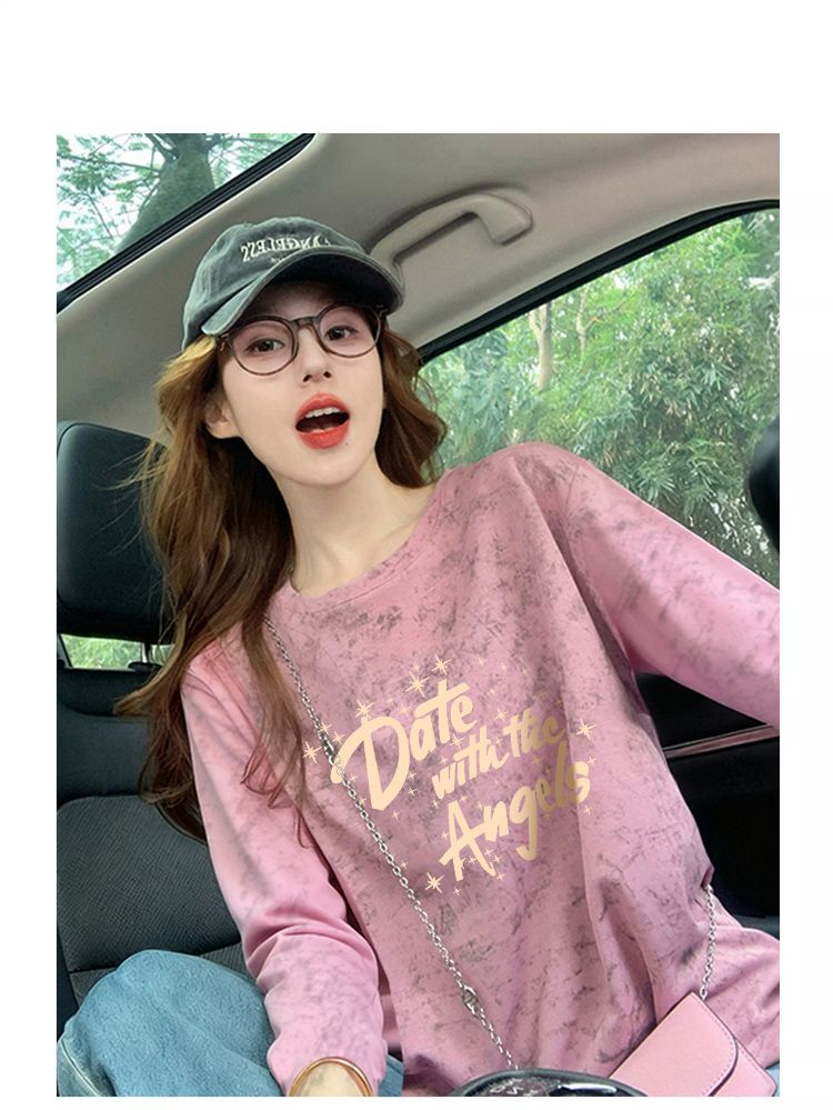 MY13762# 双纱纯棉/后包领高级感扎染纯棉长袖T恤女涂鸦宽松上衣女裝貨源服裝批發