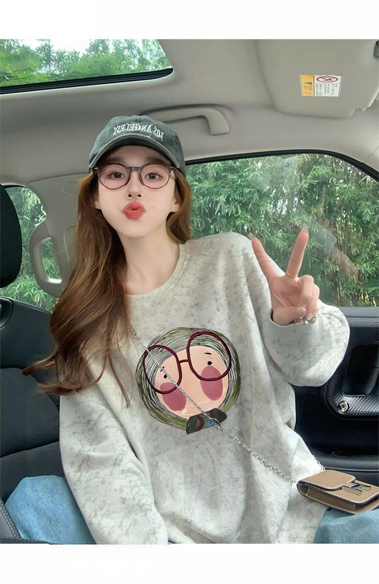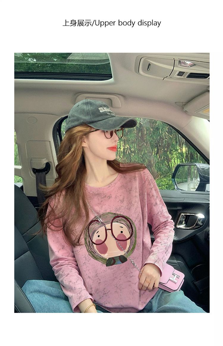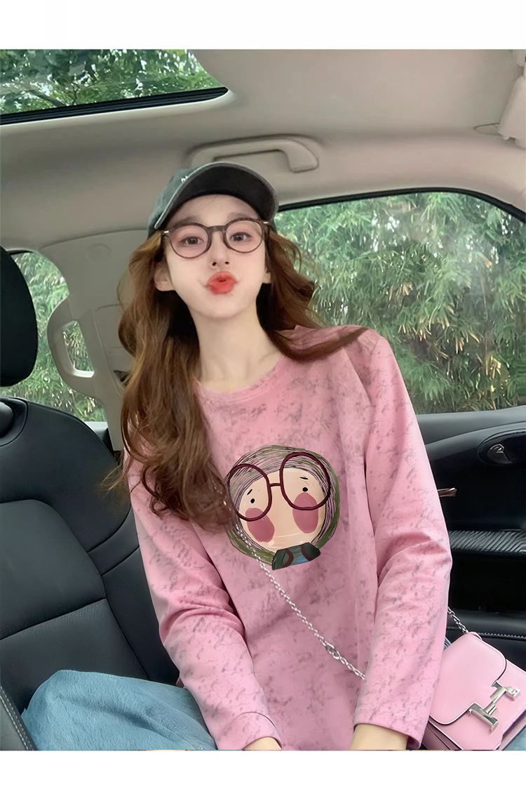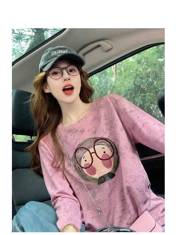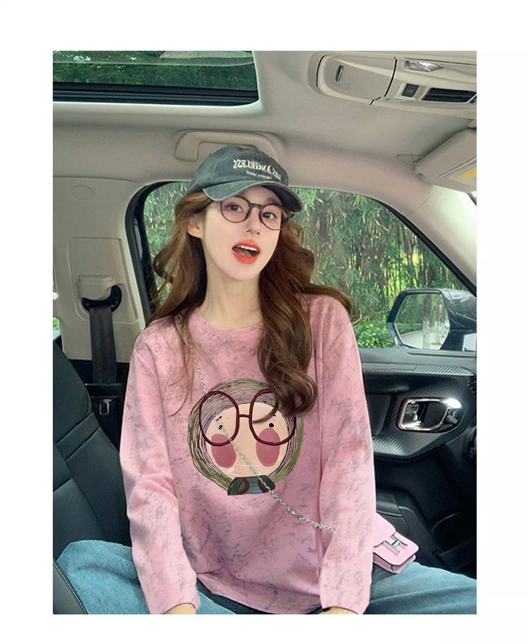 MY13762# 双纱纯棉/后包领高级感扎染纯棉长袖T恤女涂鸦宽松上衣女裝...