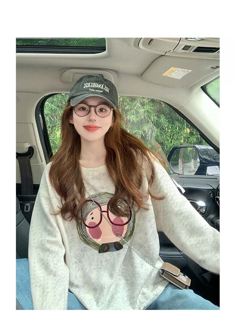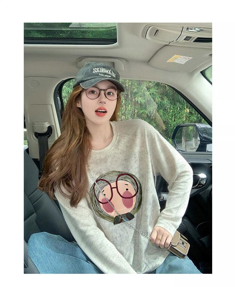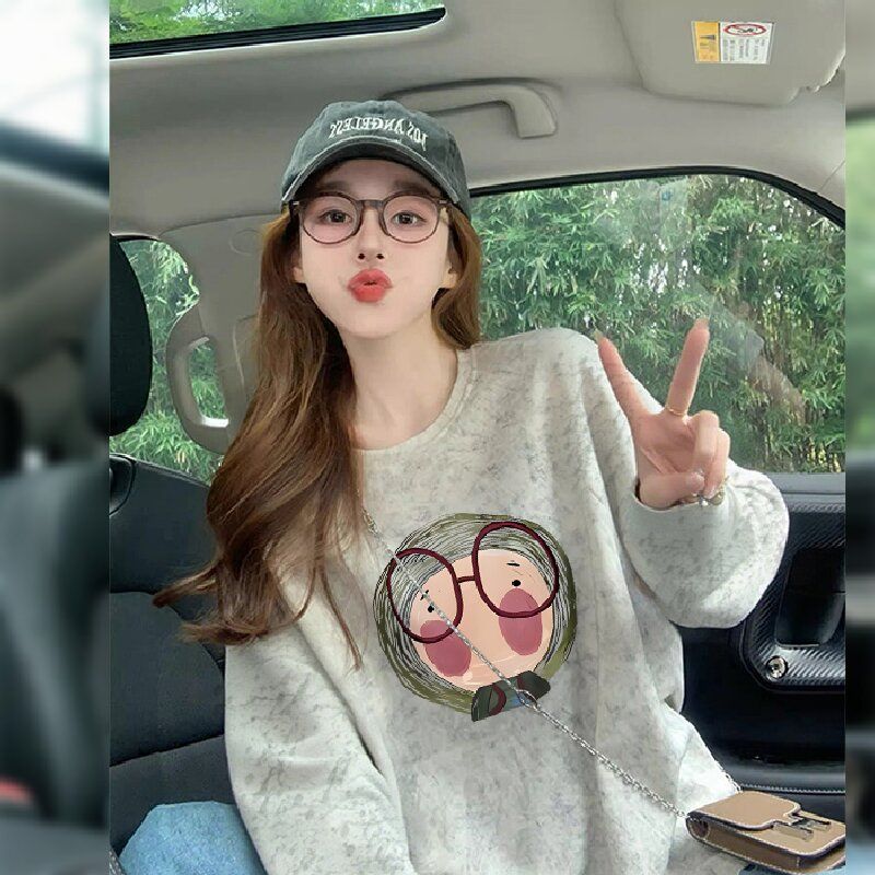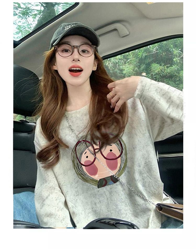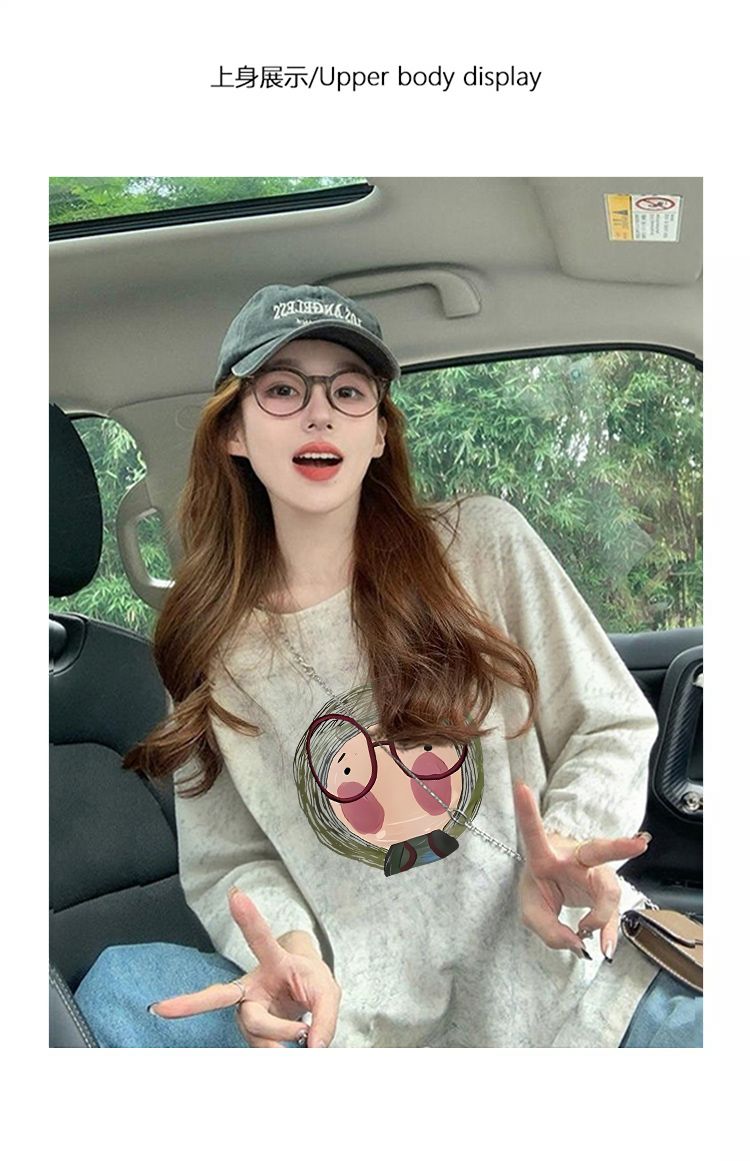 MY13762# 双纱纯棉/后包领高级感扎染纯棉长袖T恤女涂鸦宽松上衣女裝...