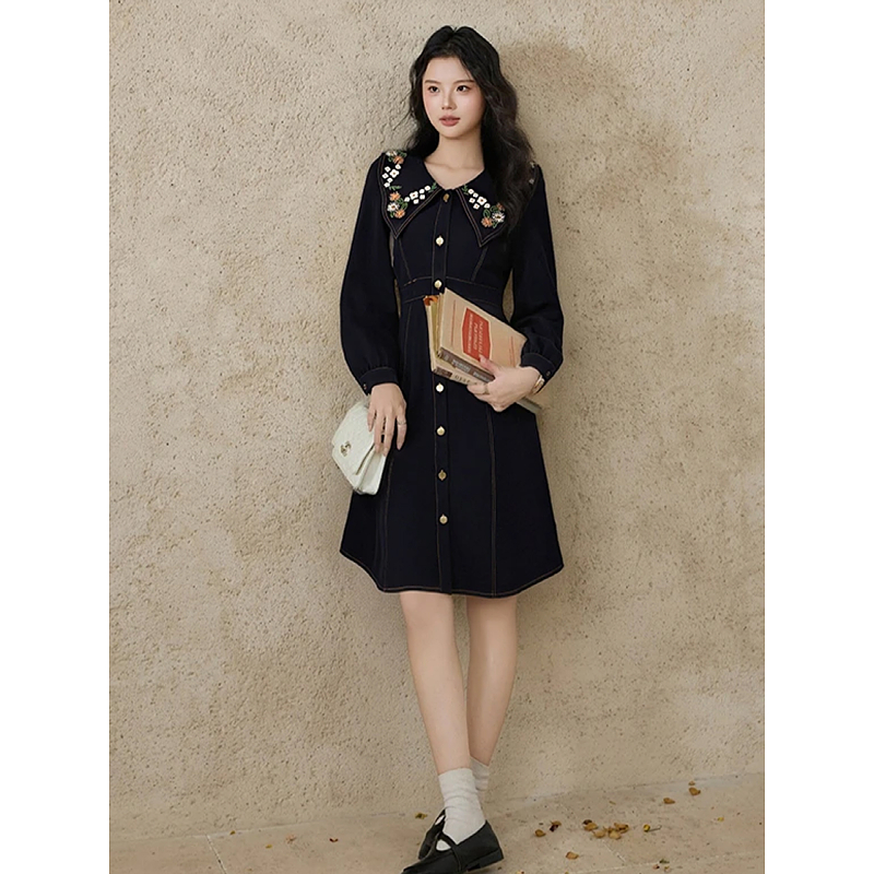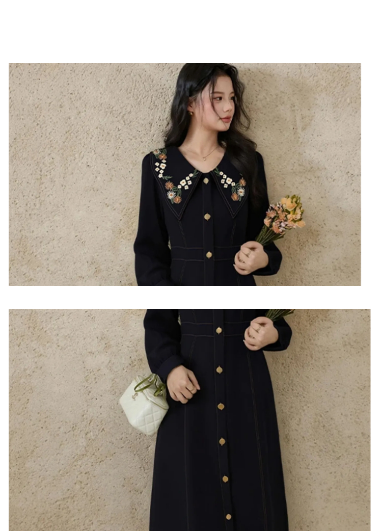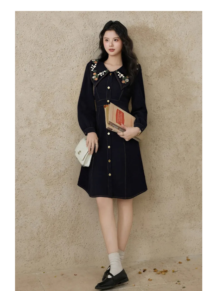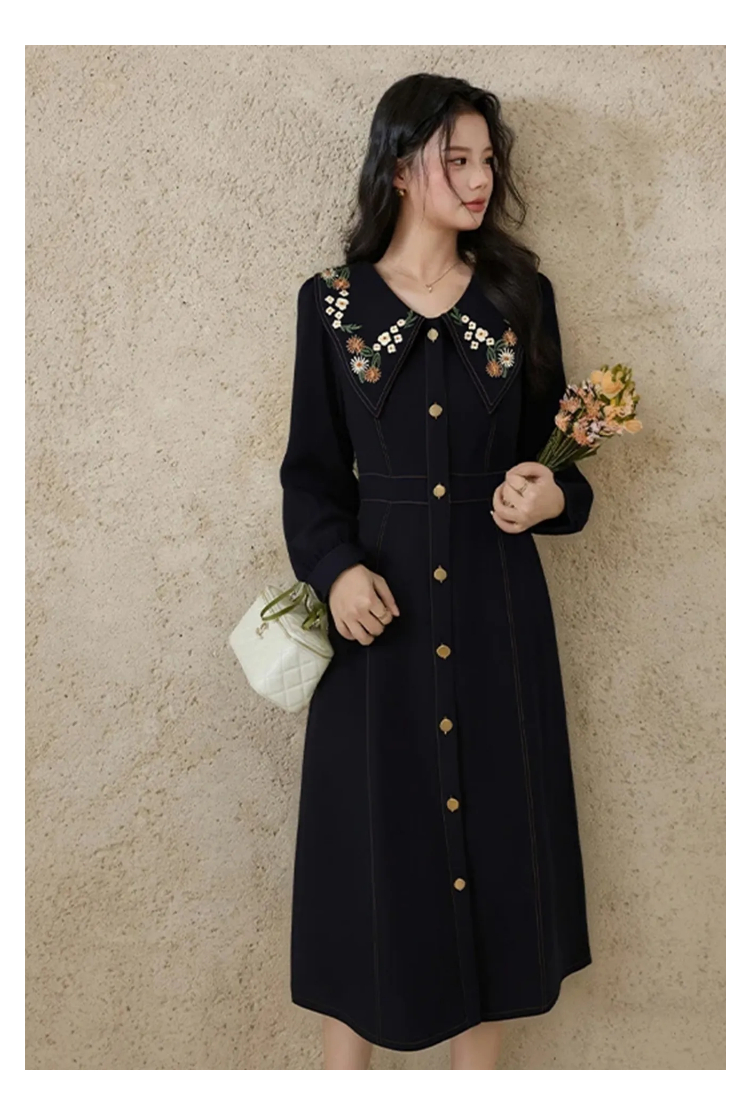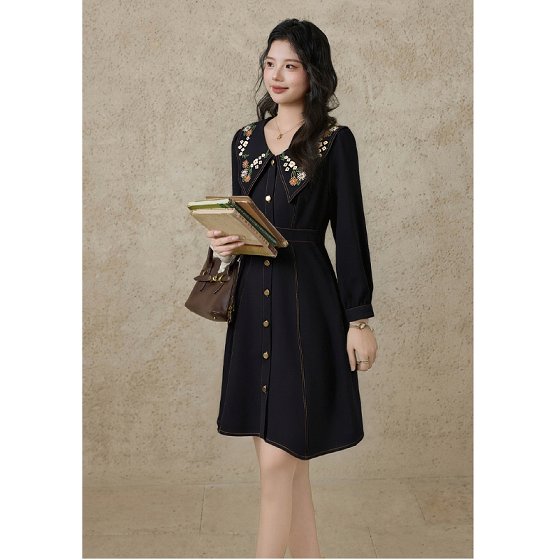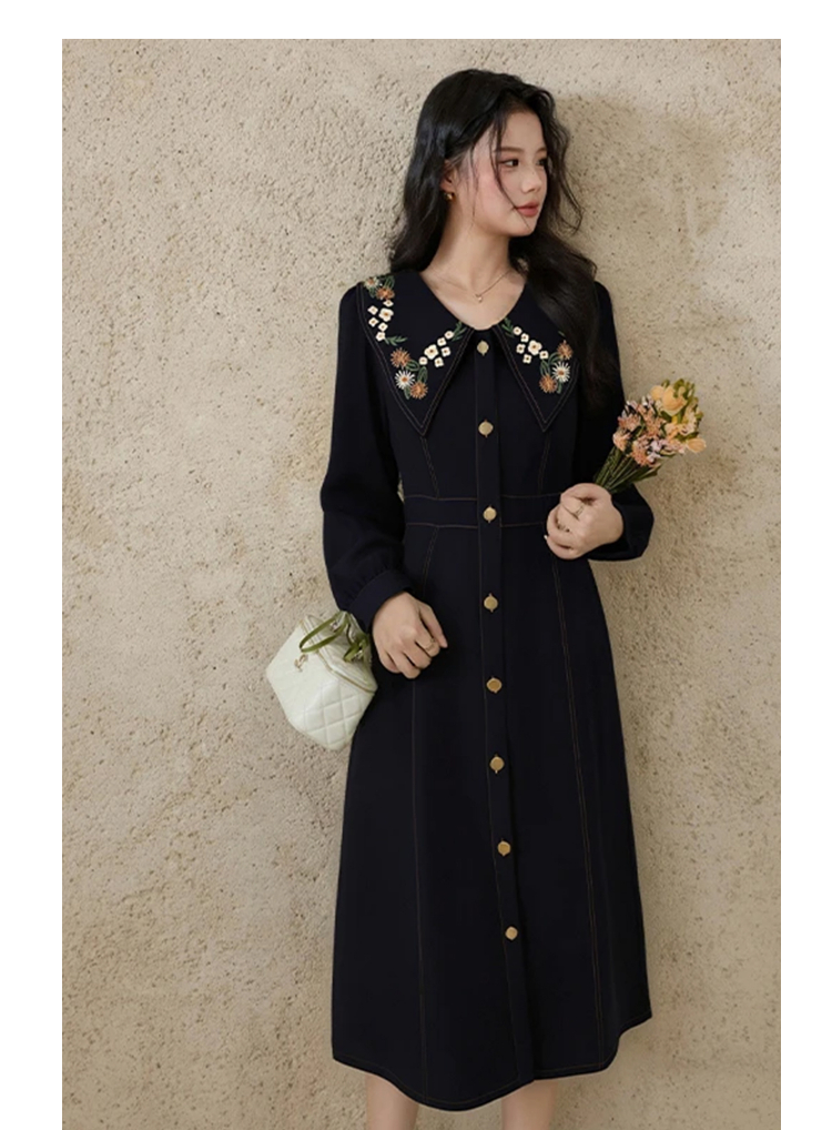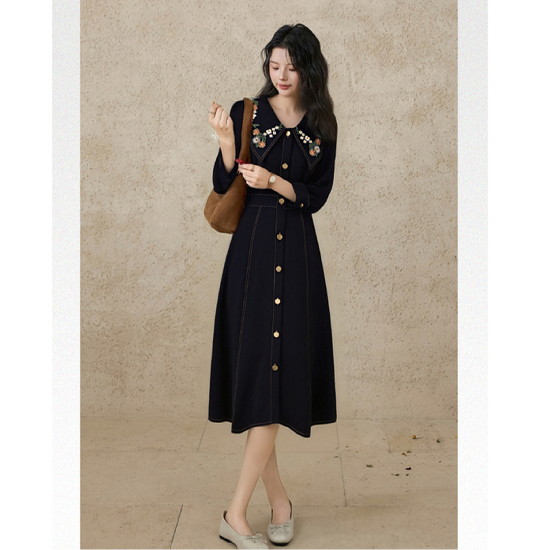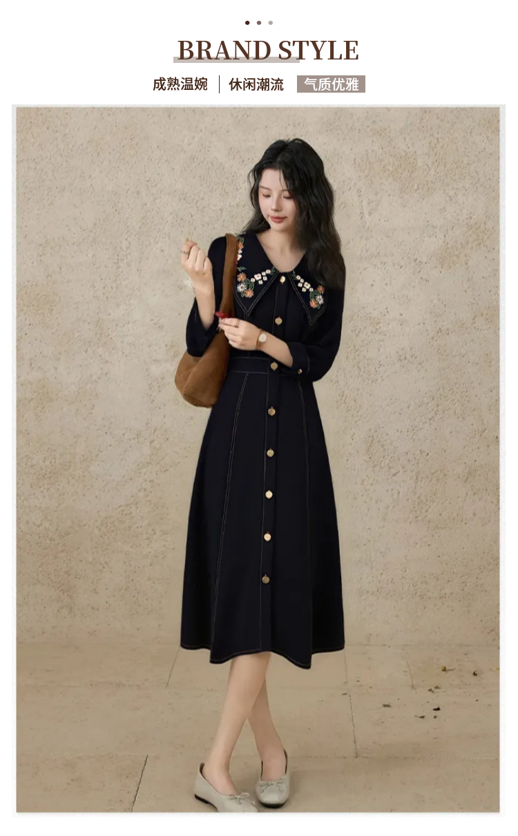 MY13802# 女裝貨源大码女装胖MM设计感遮肉韩系中长款压线显瘦连衣裙女裝貨源服裝批發服裝批發