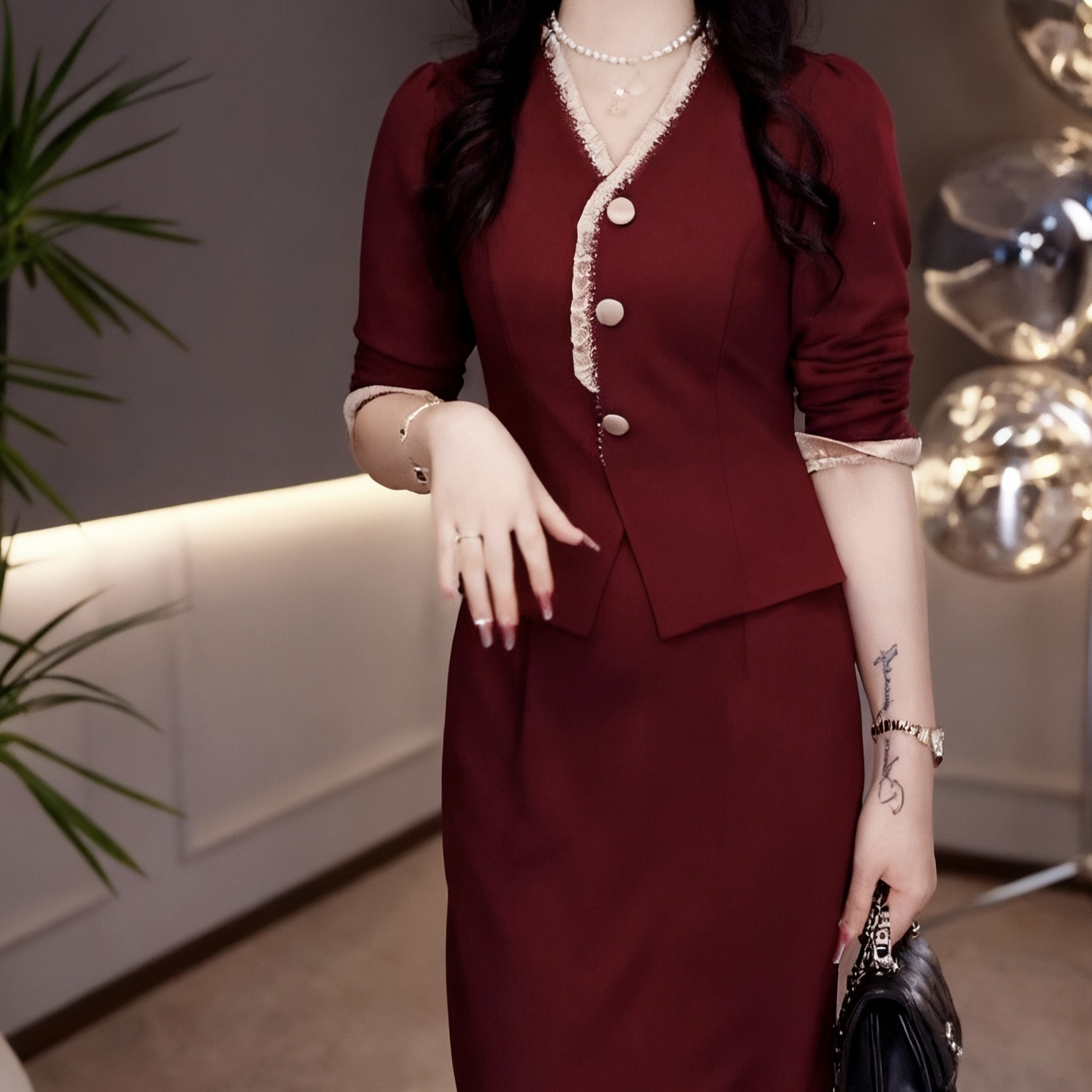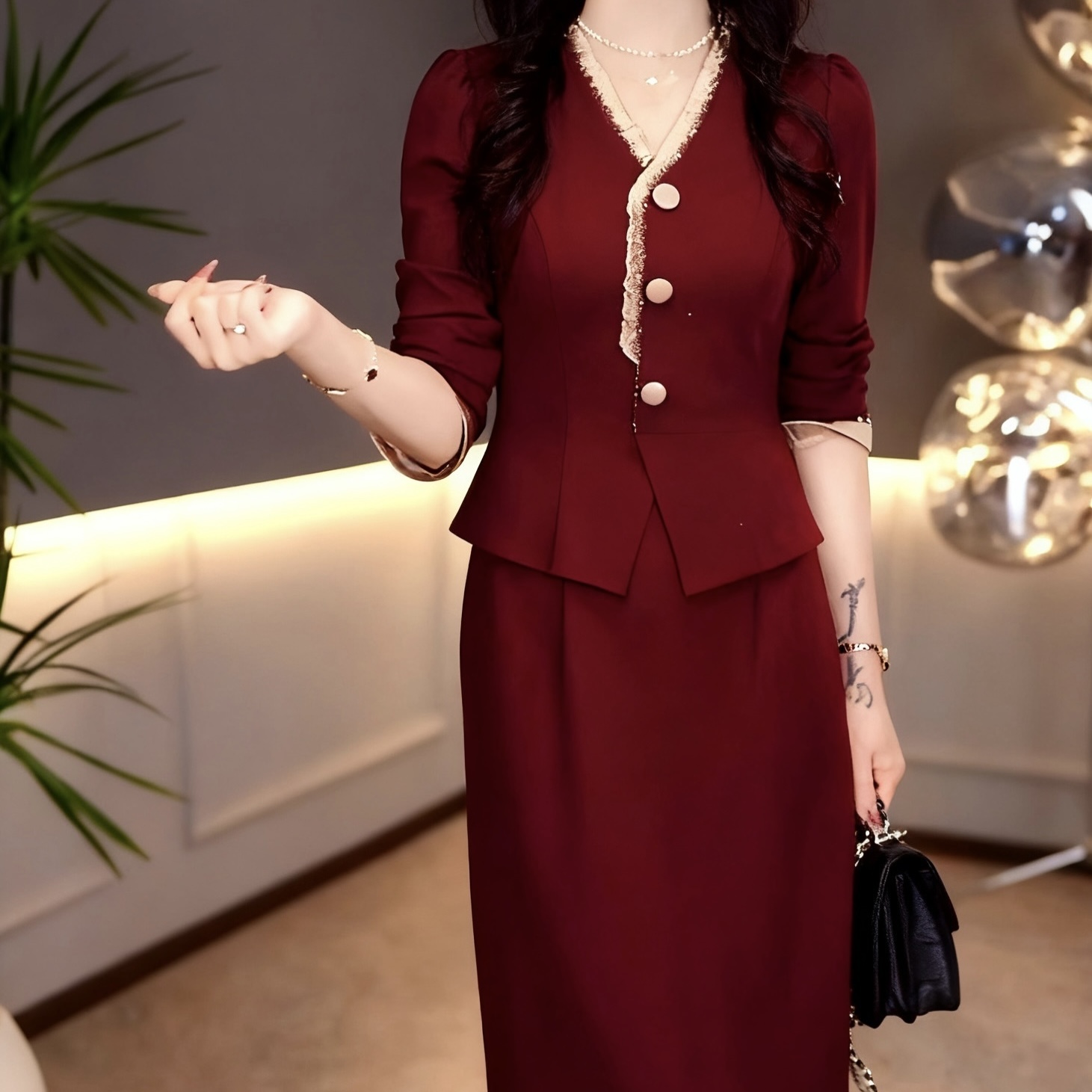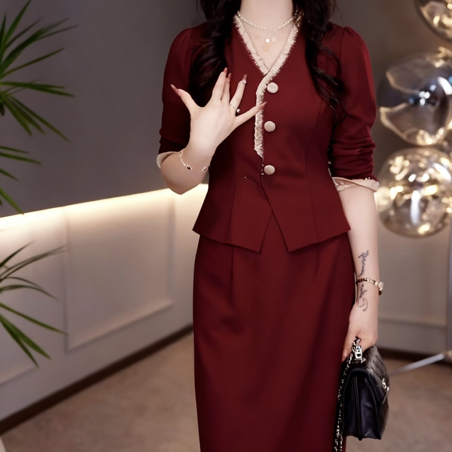 MY13813# 女裝貨源新款小香风单排扣V领大码优雅撞色气质显瘦连衣裙女裝貨源服裝批發服裝批發
