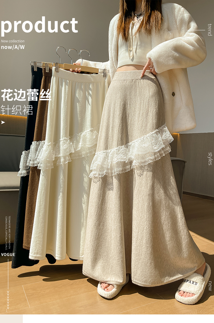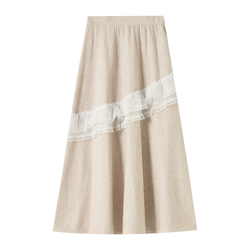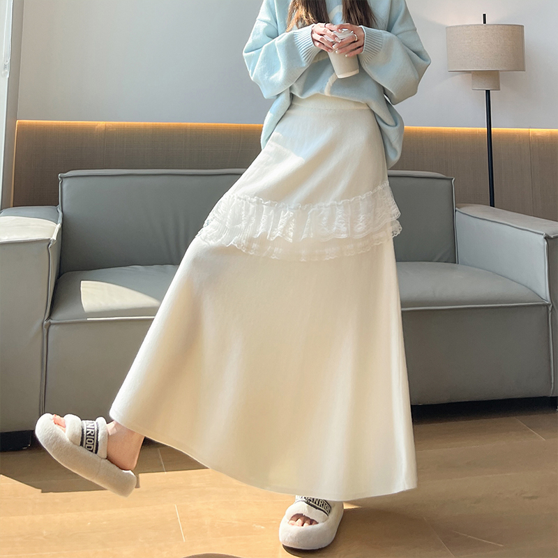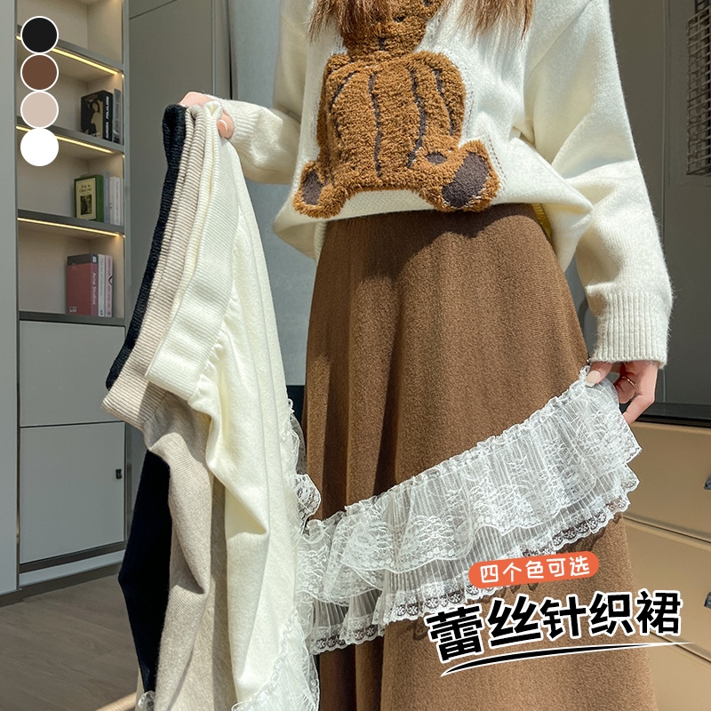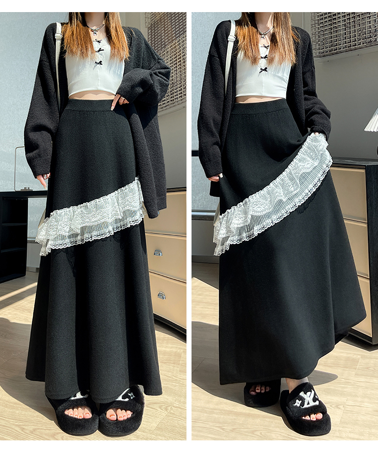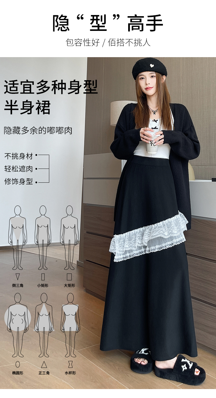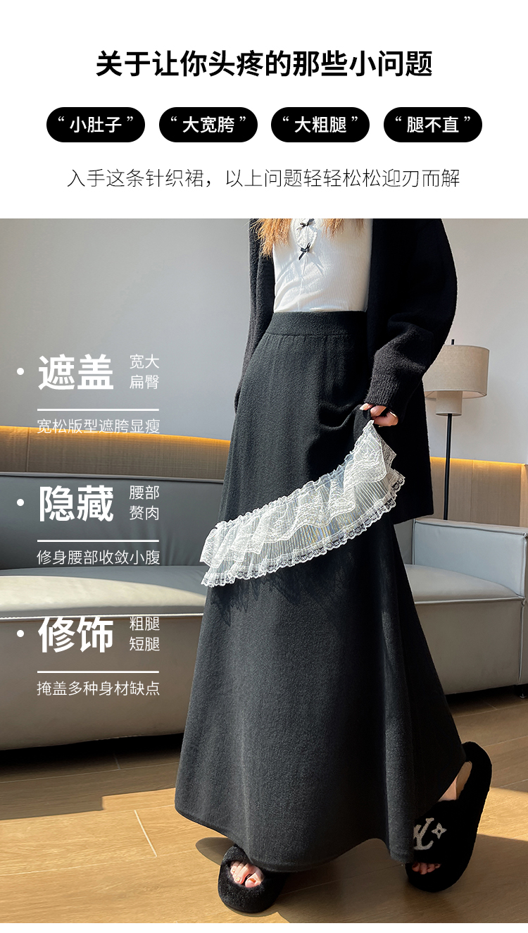 MY13835# 女裝貨源蕾丝拼接针织半身裙新款高腰遮胯显瘦a字休闲中长裙女裝貨源服裝批發服裝批發