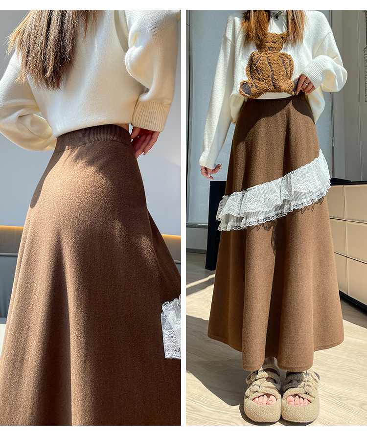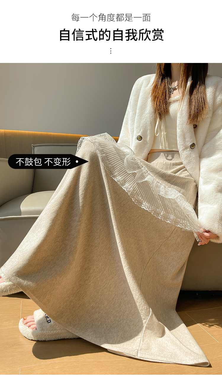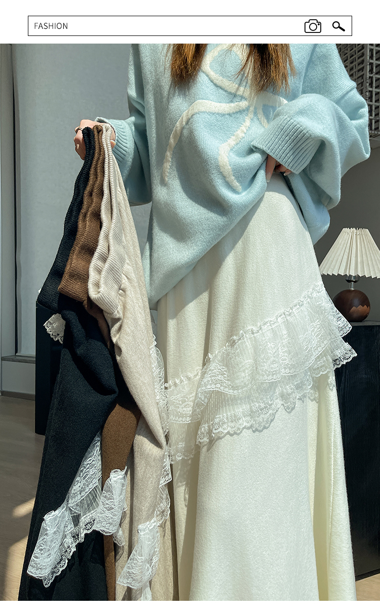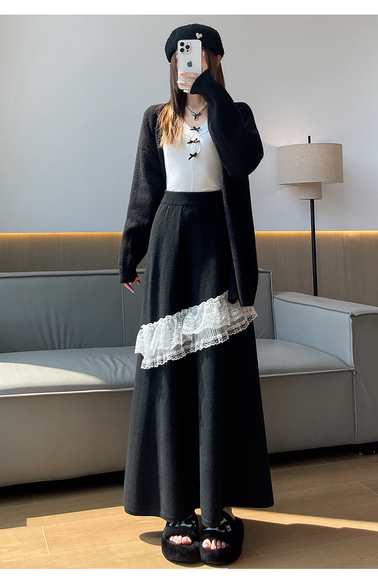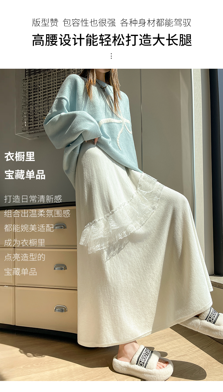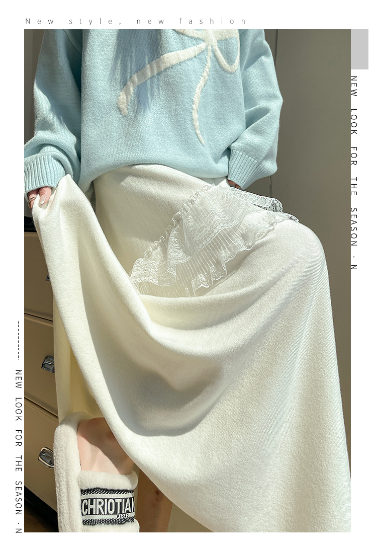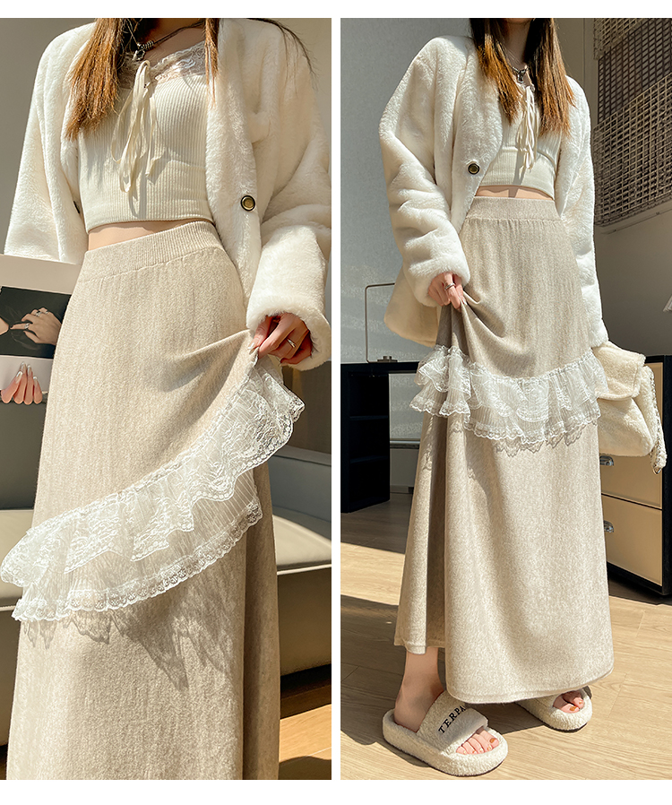 MY13835# 女裝貨源蕾丝拼接针织半身裙新款高腰遮胯显瘦a字休闲中长裙女裝貨源服裝批發服裝批發