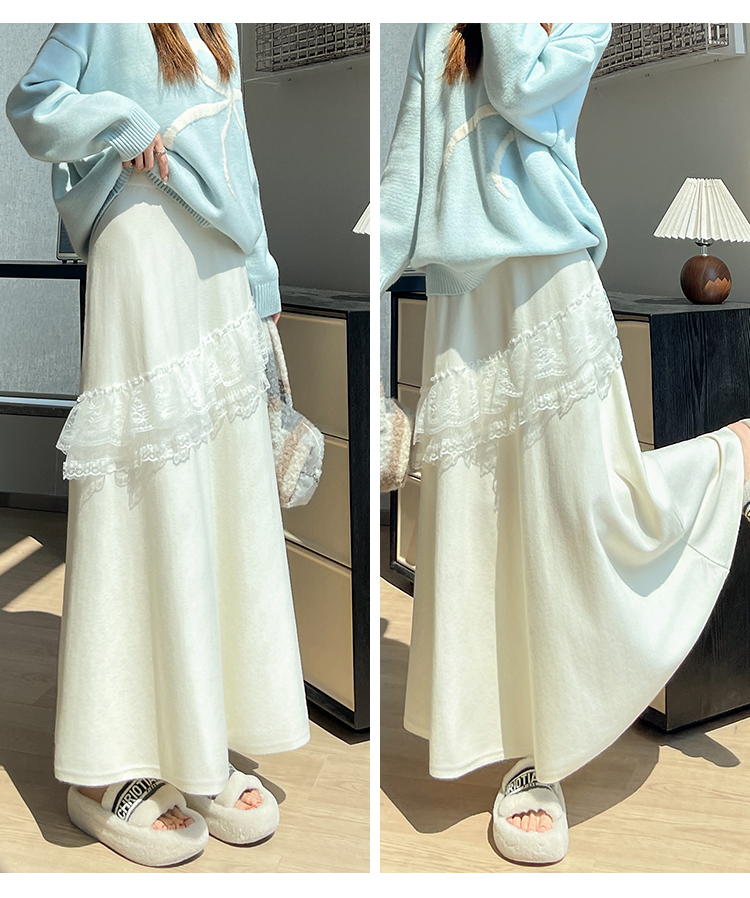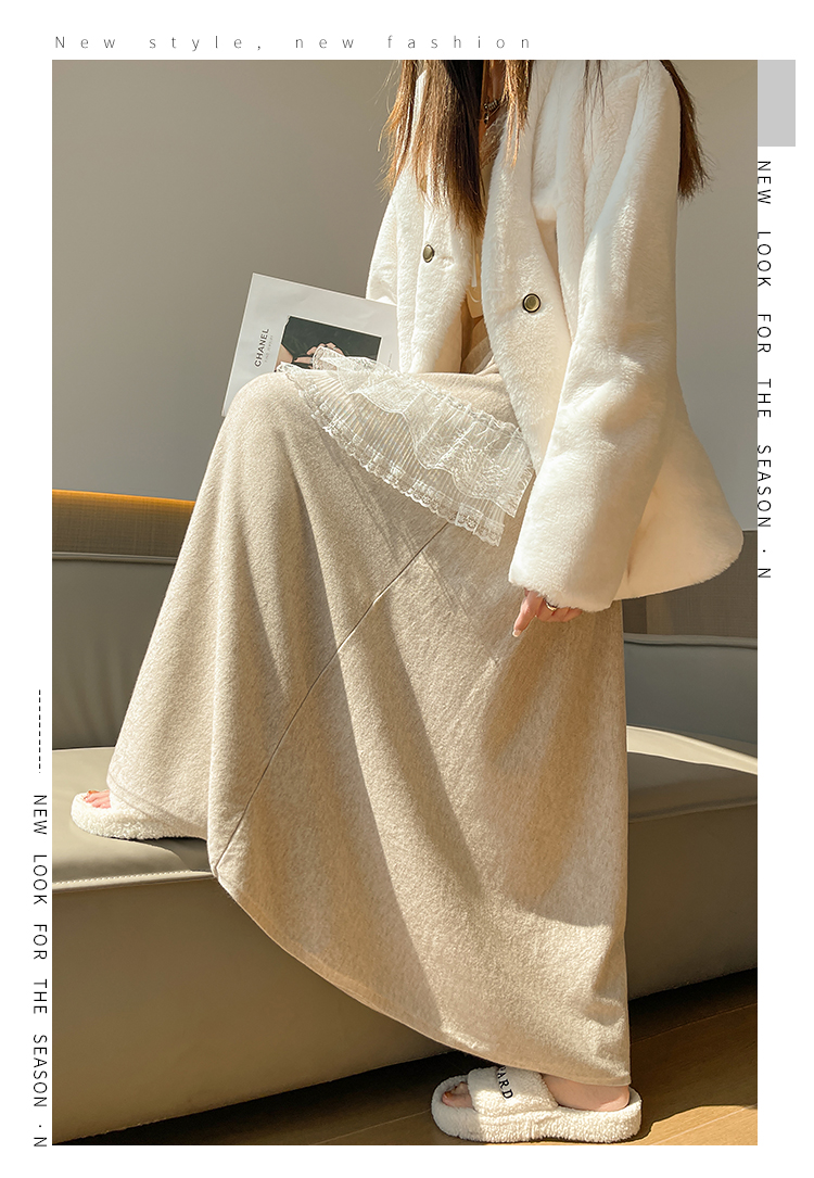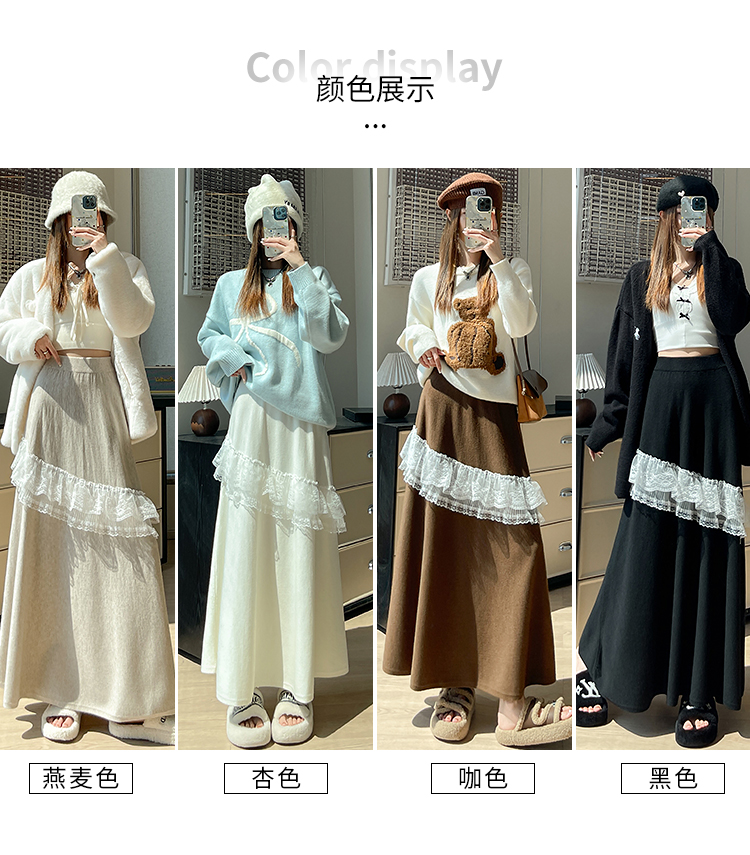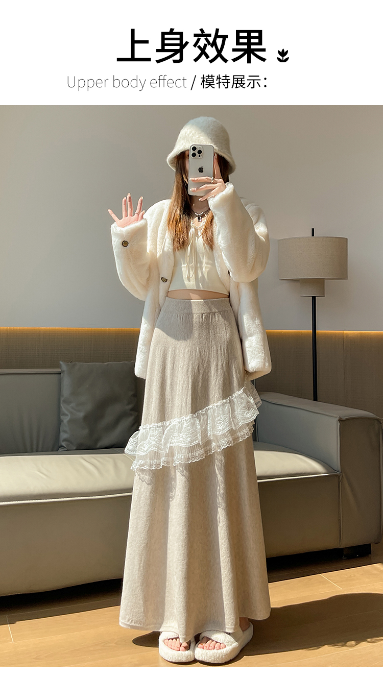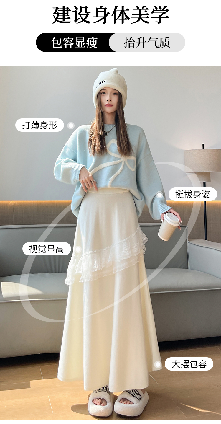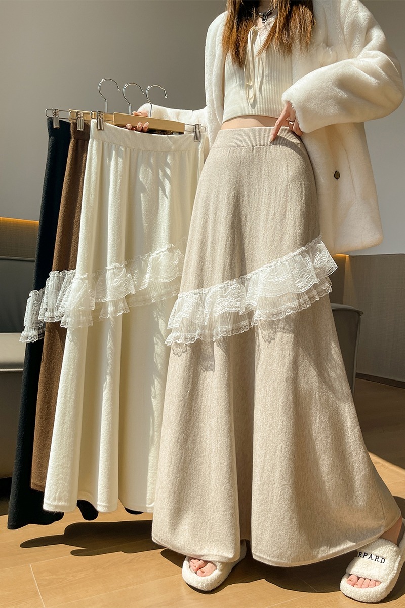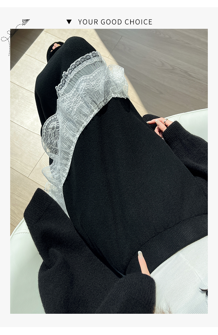 MY13835# 女裝貨源蕾丝拼接针织半身裙新款高腰遮胯显瘦a字休闲中长裙女裝貨源服裝批發服裝批發
