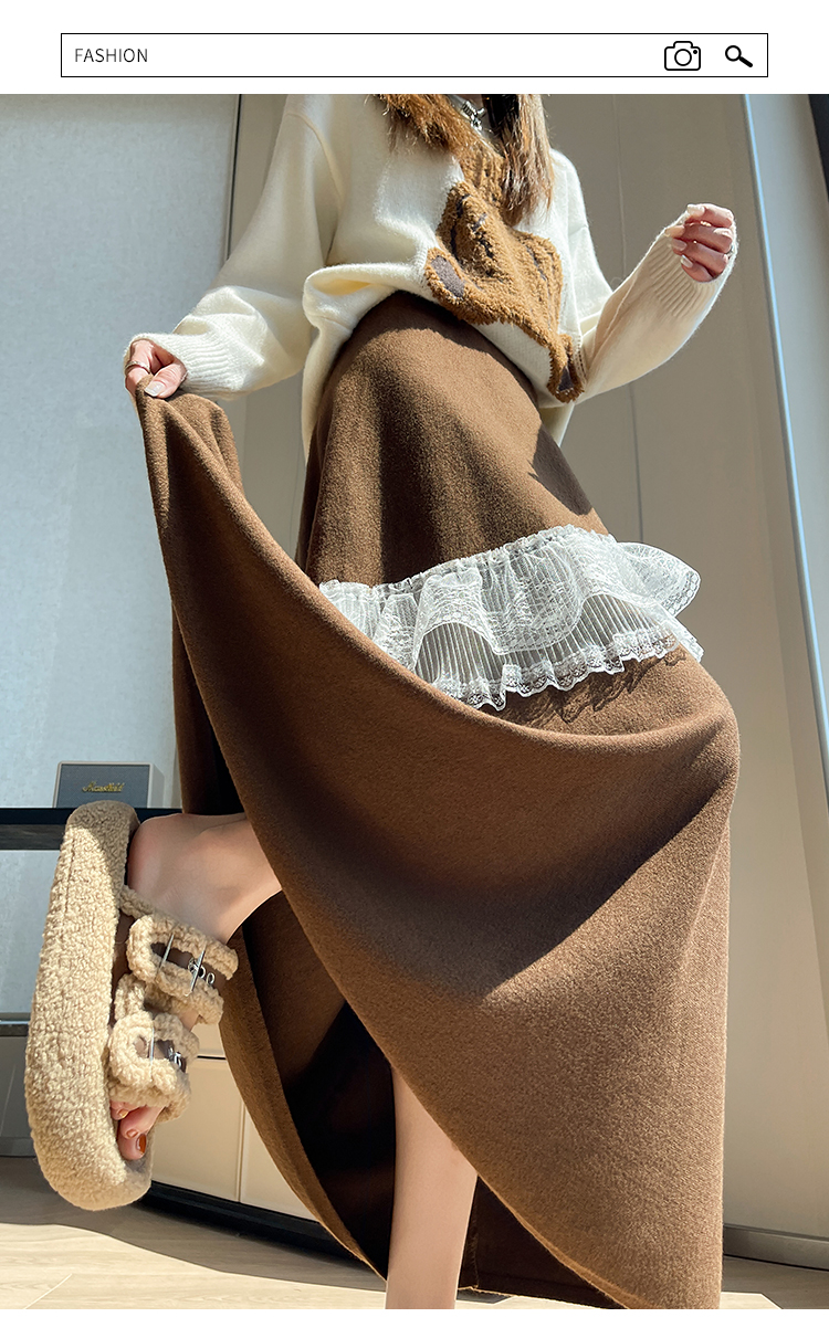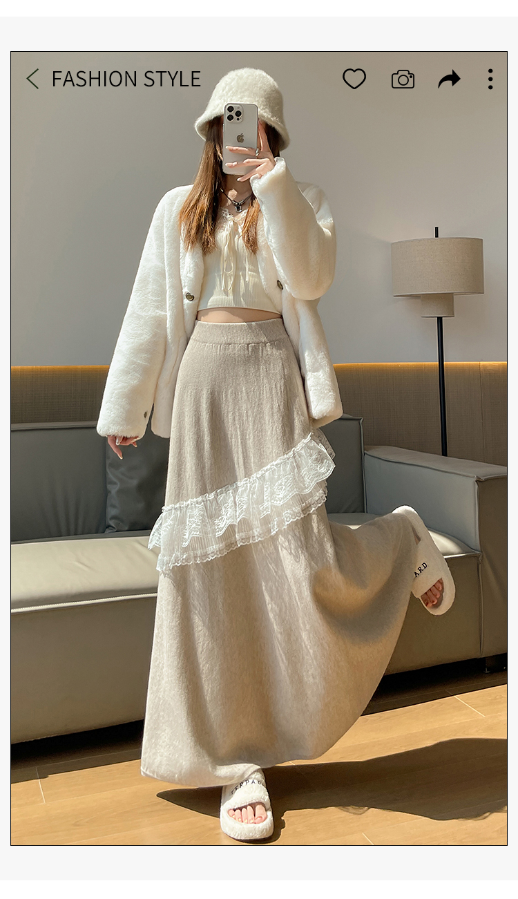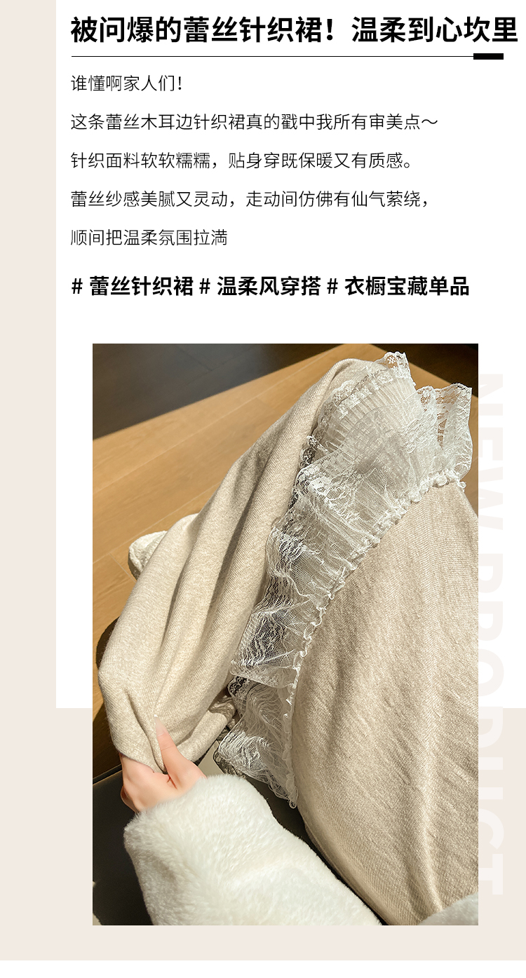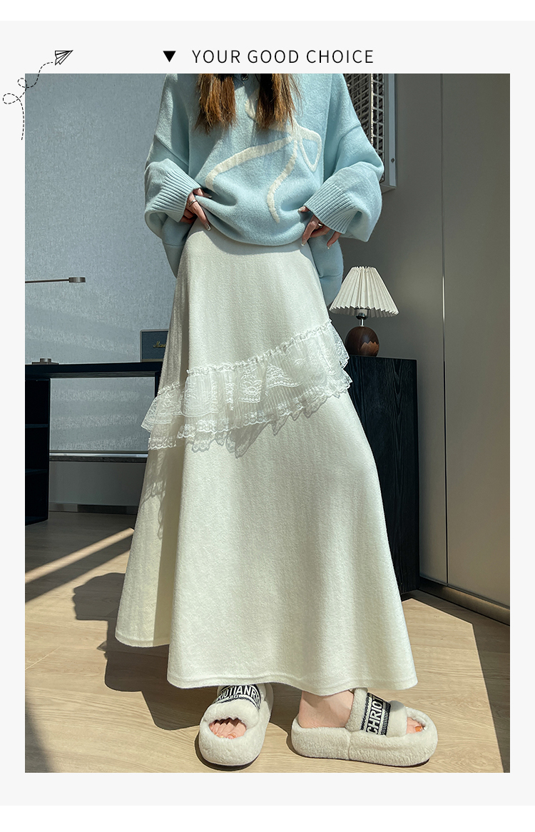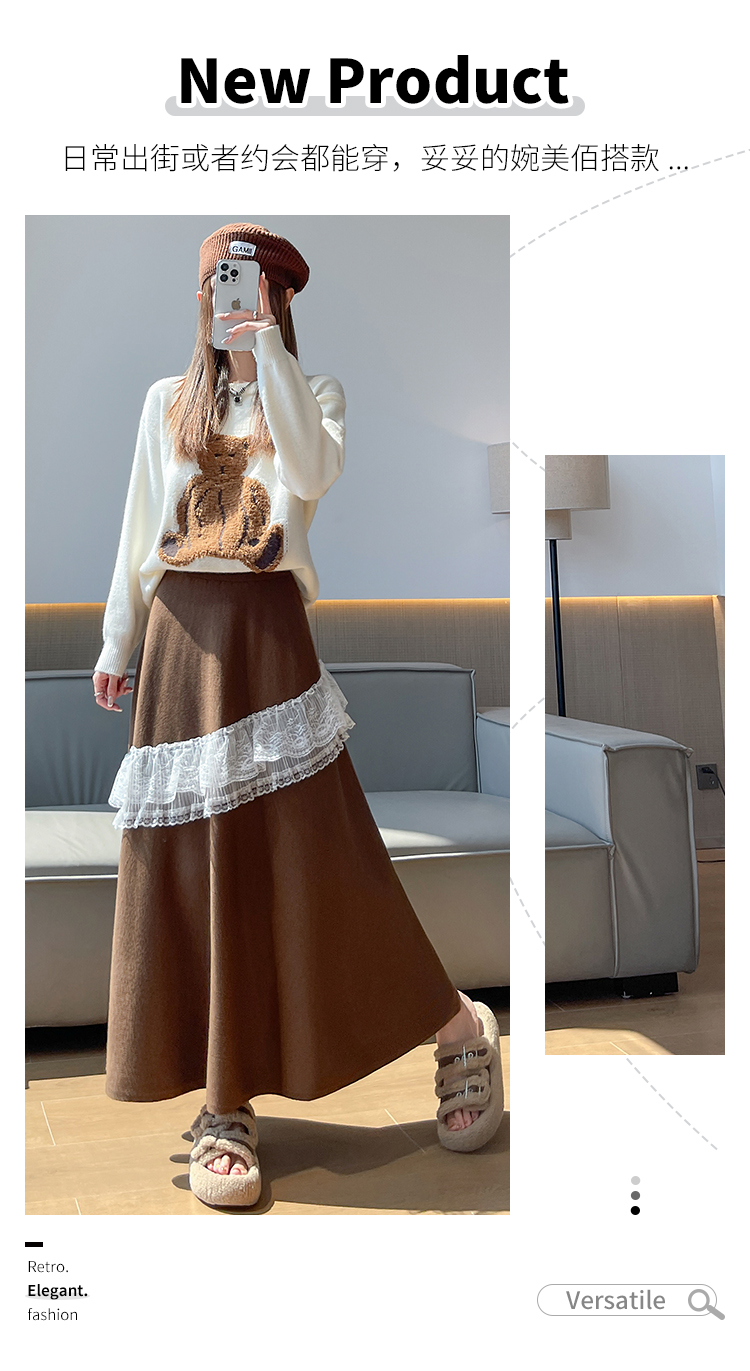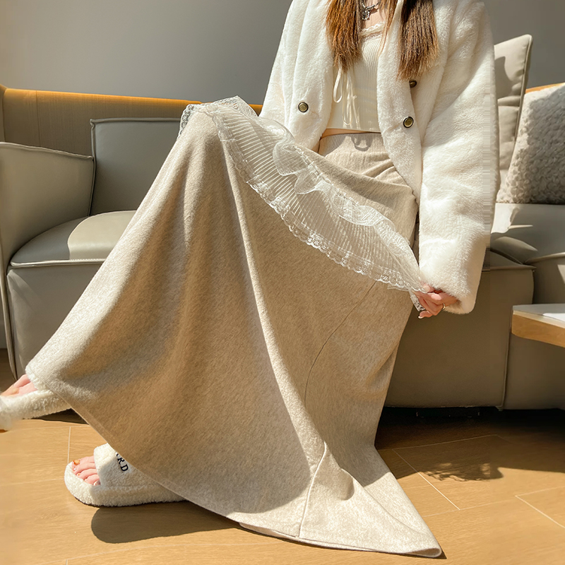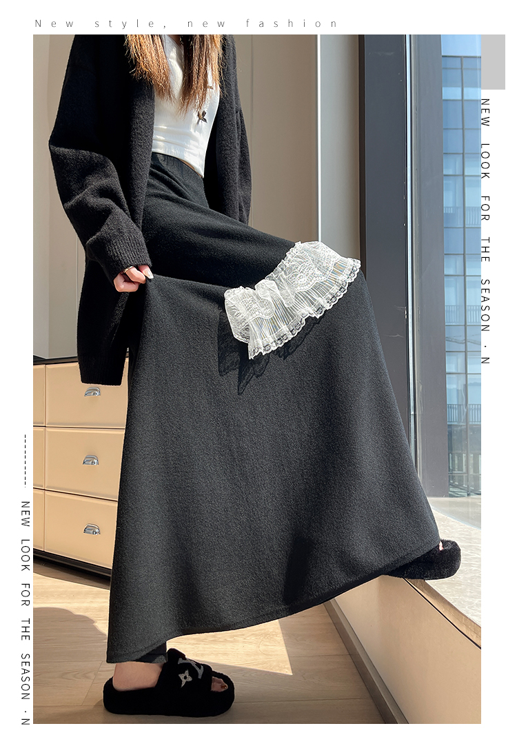MY13835# 女裝貨源蕾丝拼接针织半身裙新款高腰遮胯显瘦a字休闲中长裙女裝貨源服裝批發服裝批發