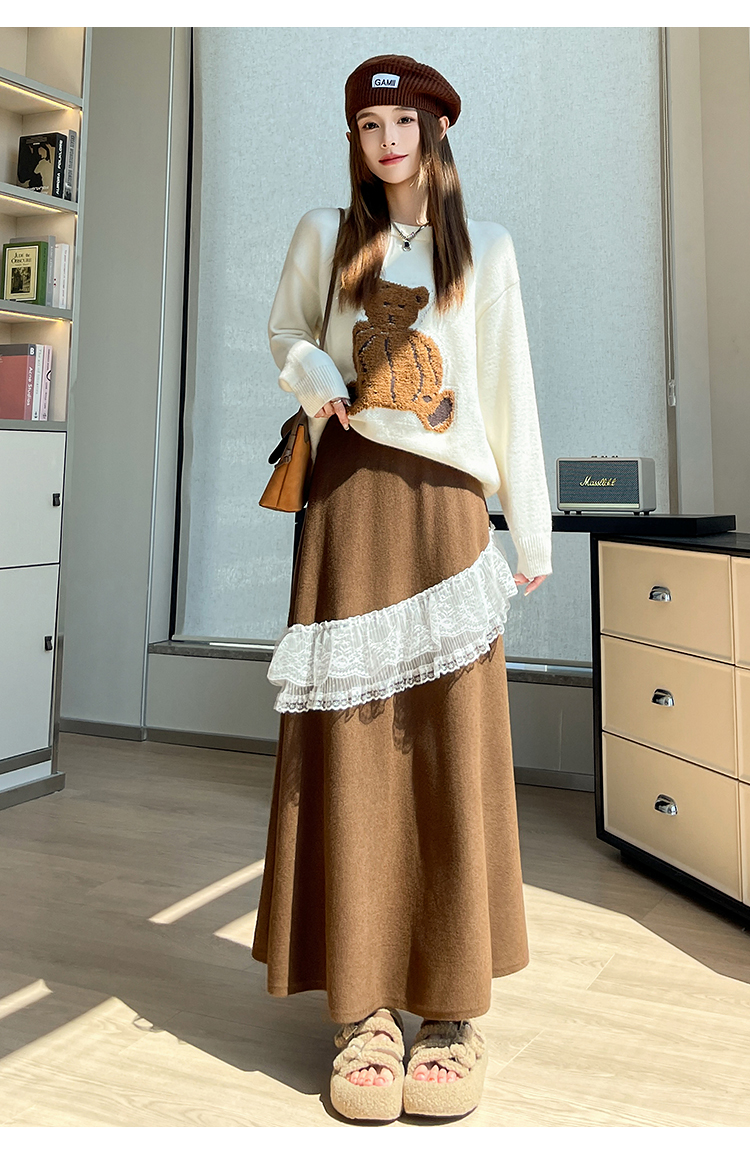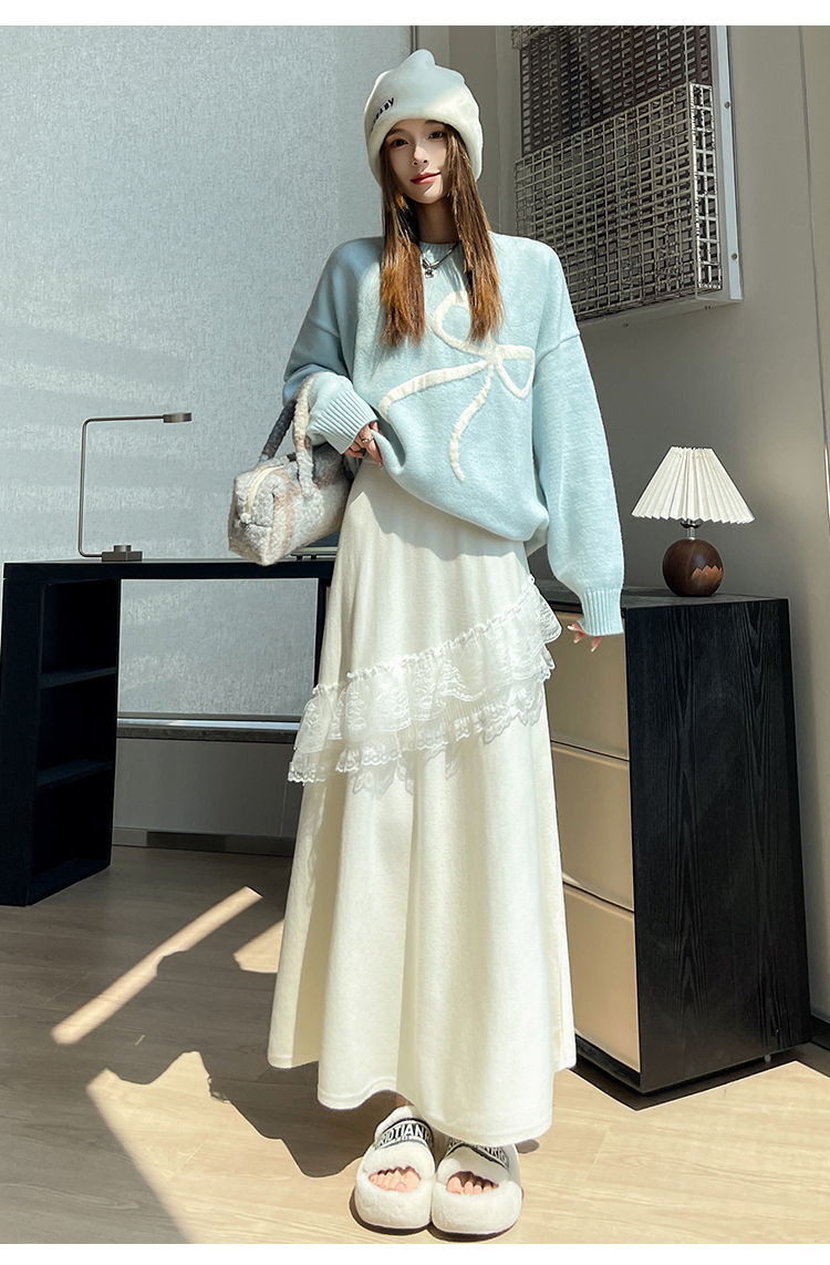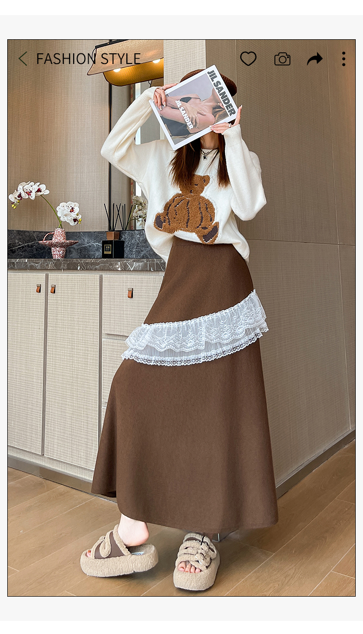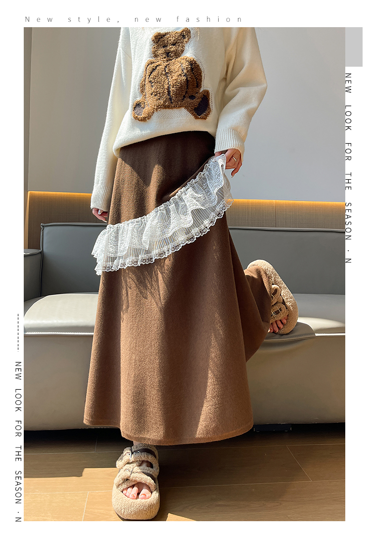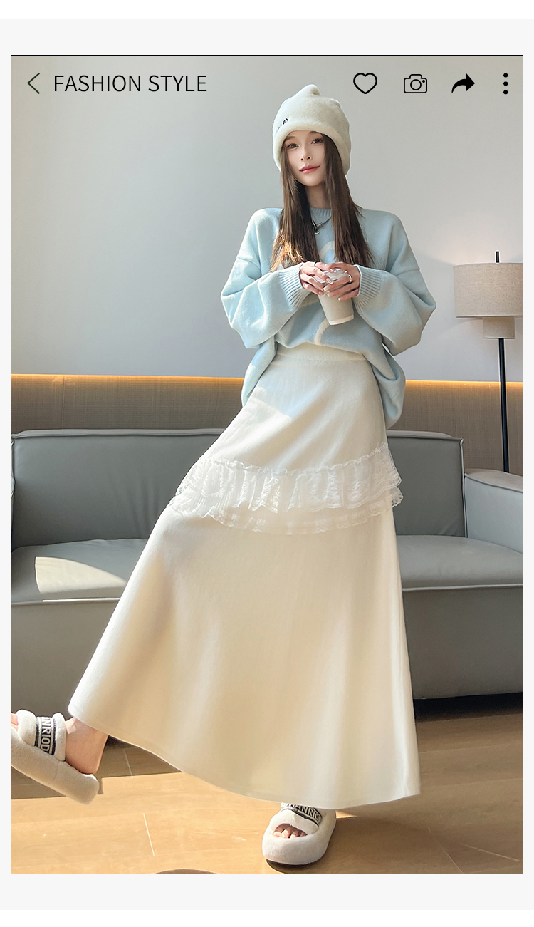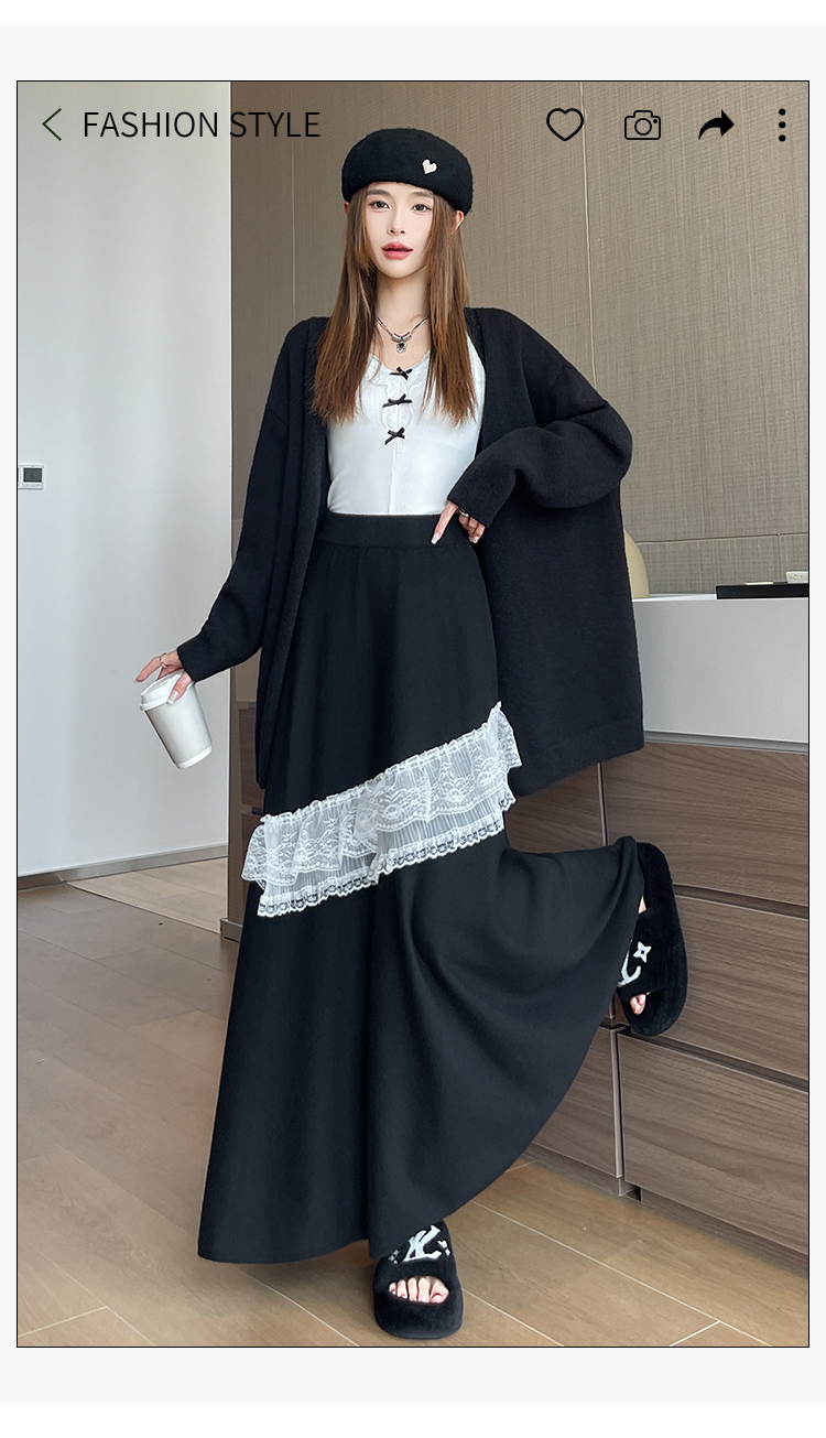 MY13835# 女裝貨源蕾丝拼接针织半身裙新款高腰遮胯显瘦a字休闲中长裙女裝貨源服裝批發服裝批發