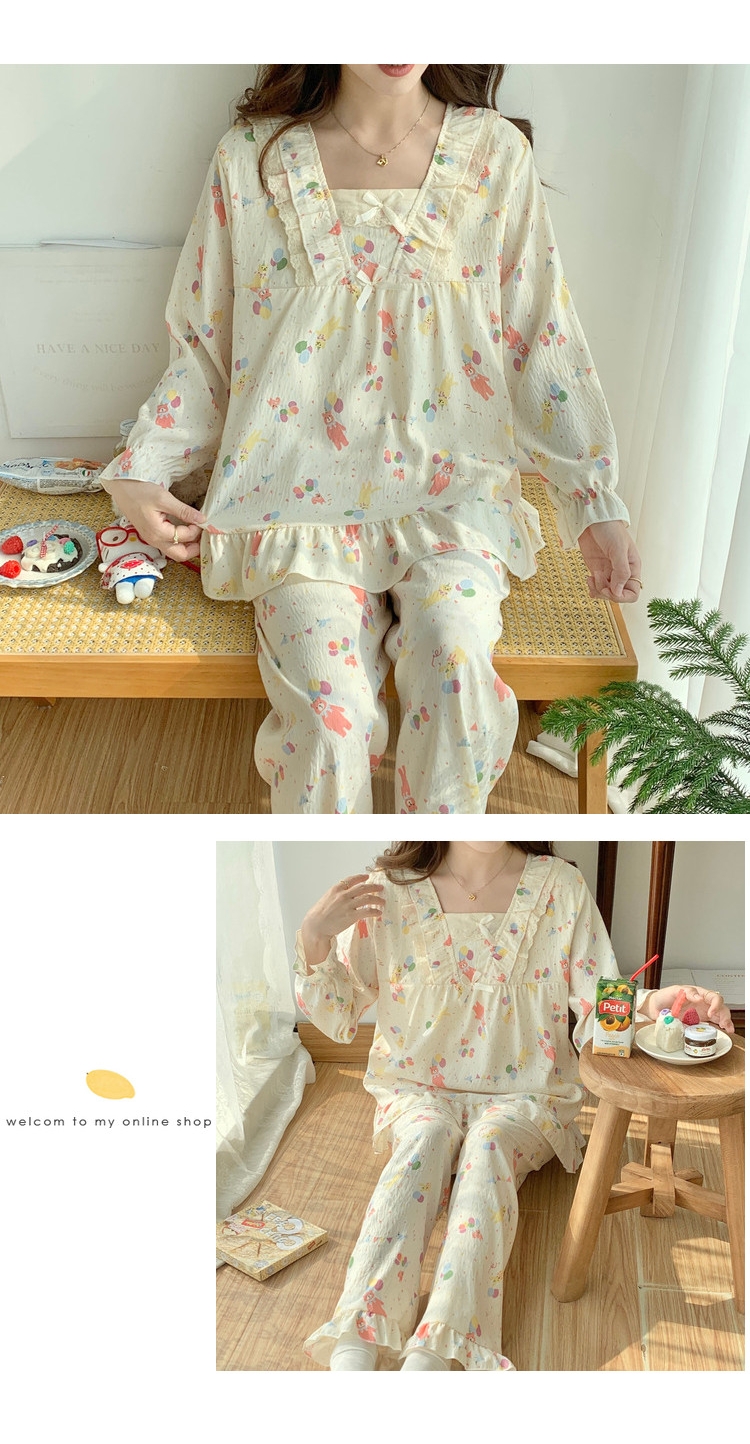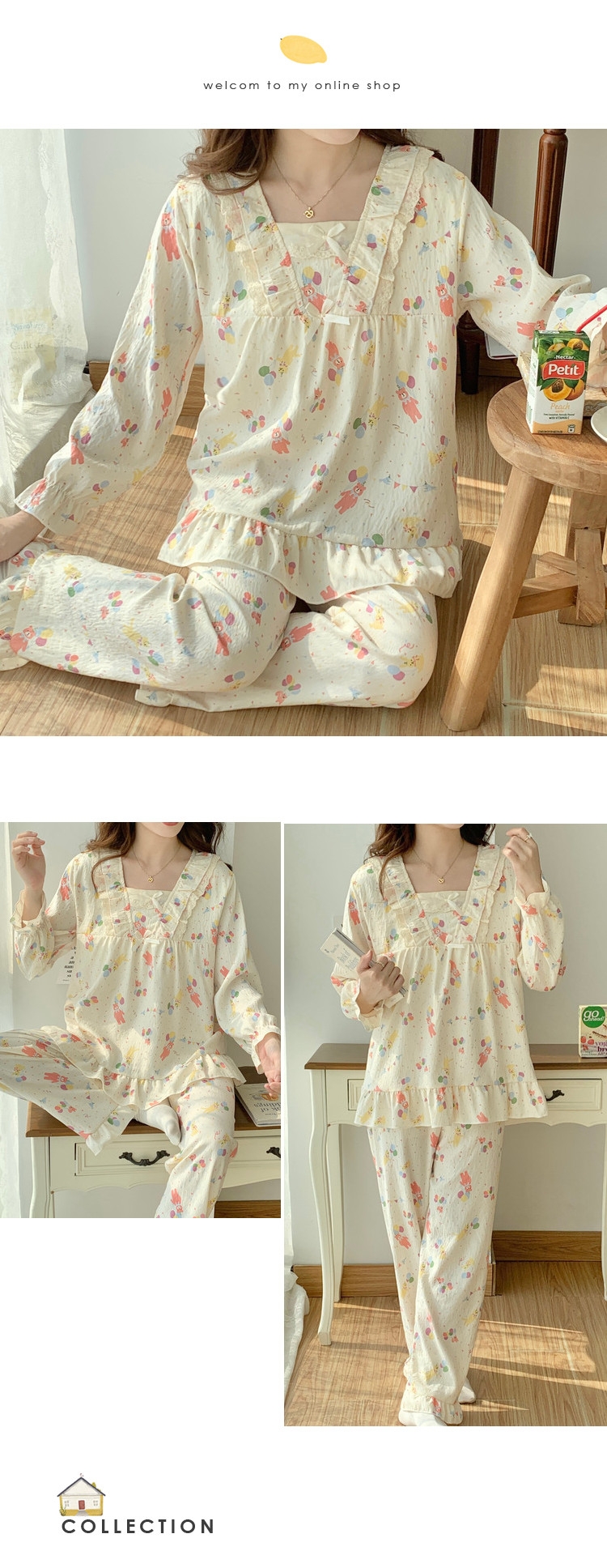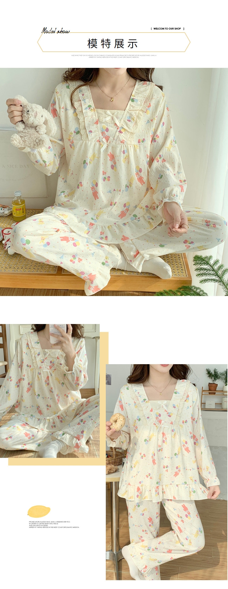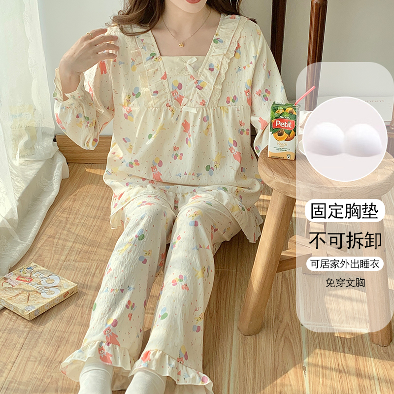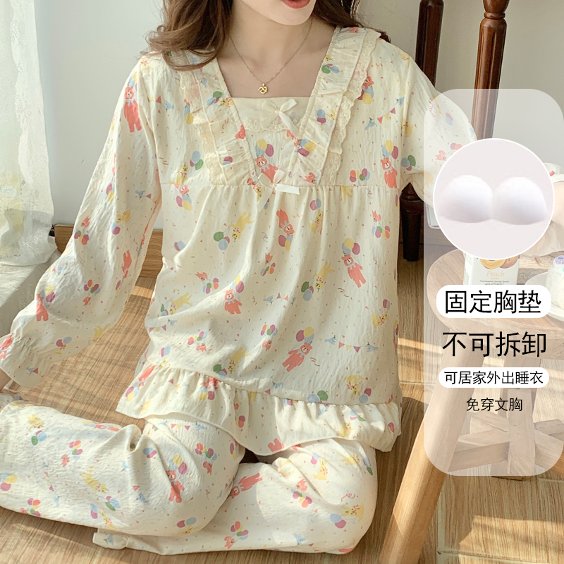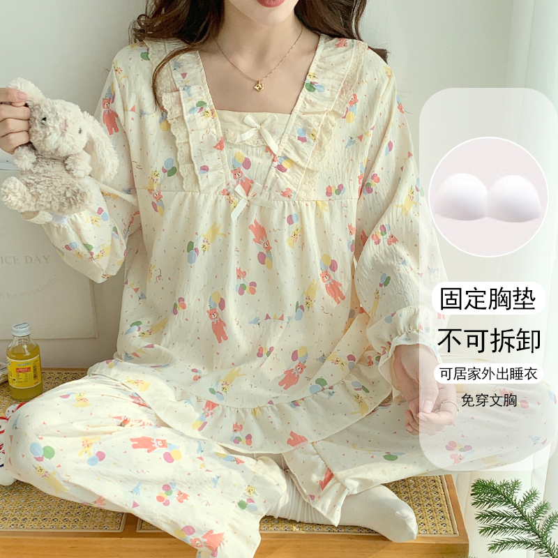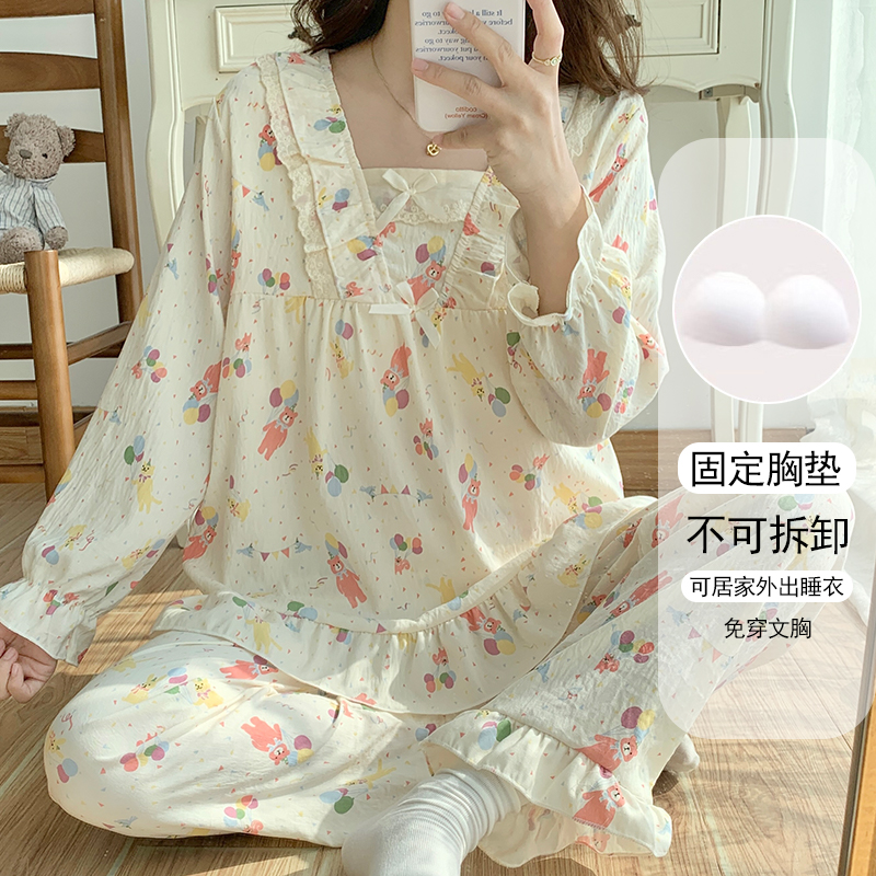 MY13903# 带胸垫睡衣女套装长袖长裤家居服春秋宽松可爱公主风可外穿女裝貨源服裝批發