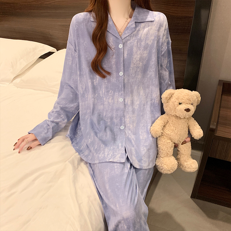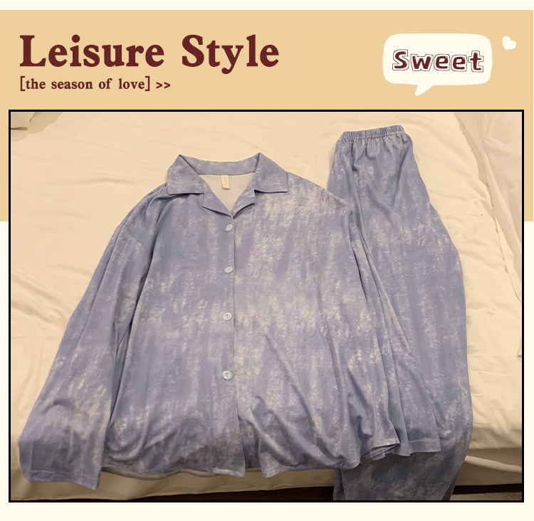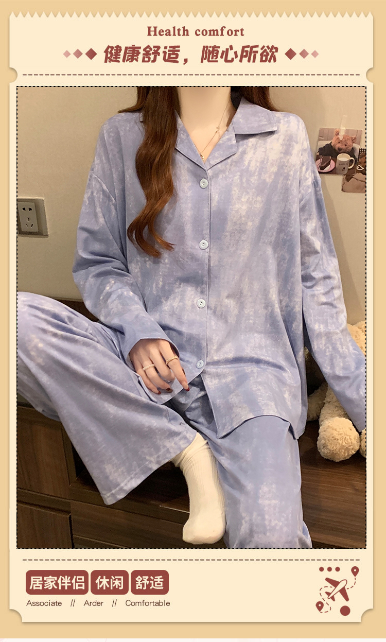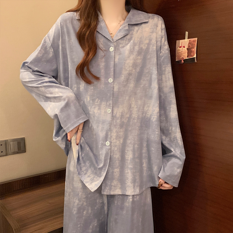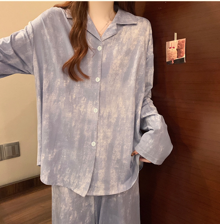 MY13906# 睡衣女长袖长裤休闲开衫翻领扎染新款冬夏季家居服女裝貨源服裝批發