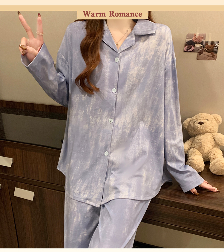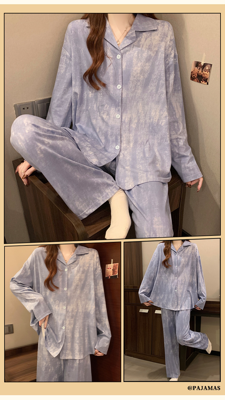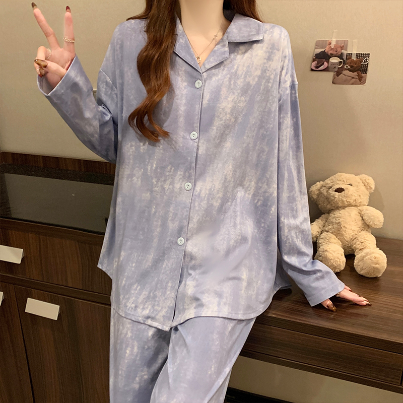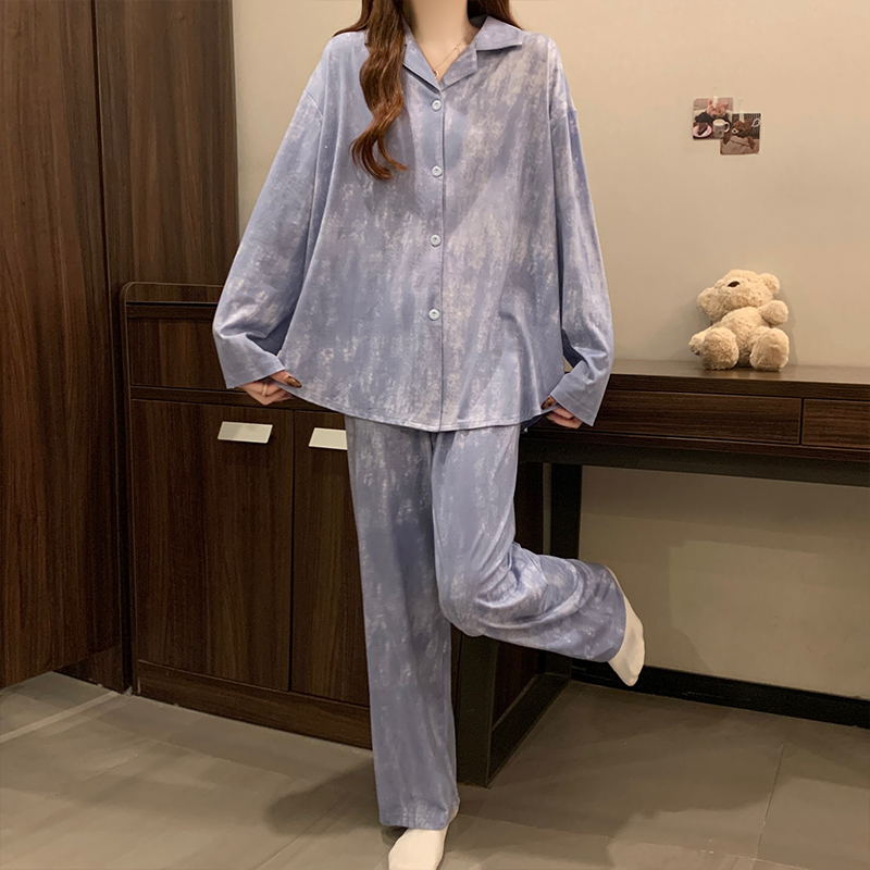 MY13906# 睡衣女长袖长裤休闲开衫翻领扎染新款冬夏季家居服女裝貨源服裝批發