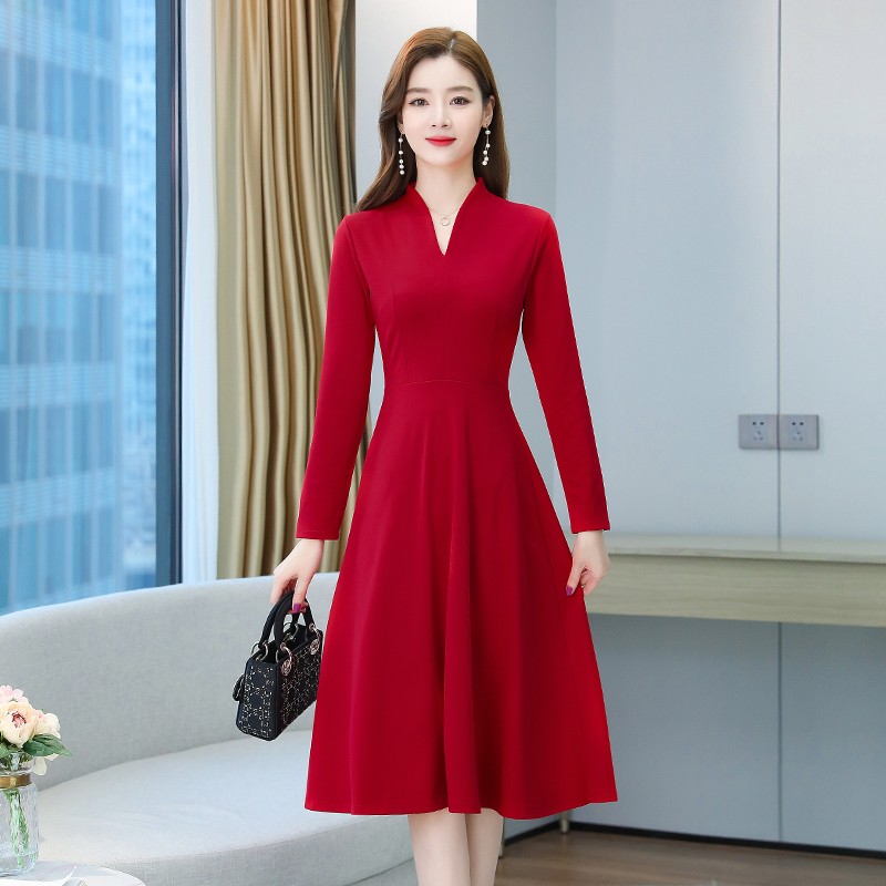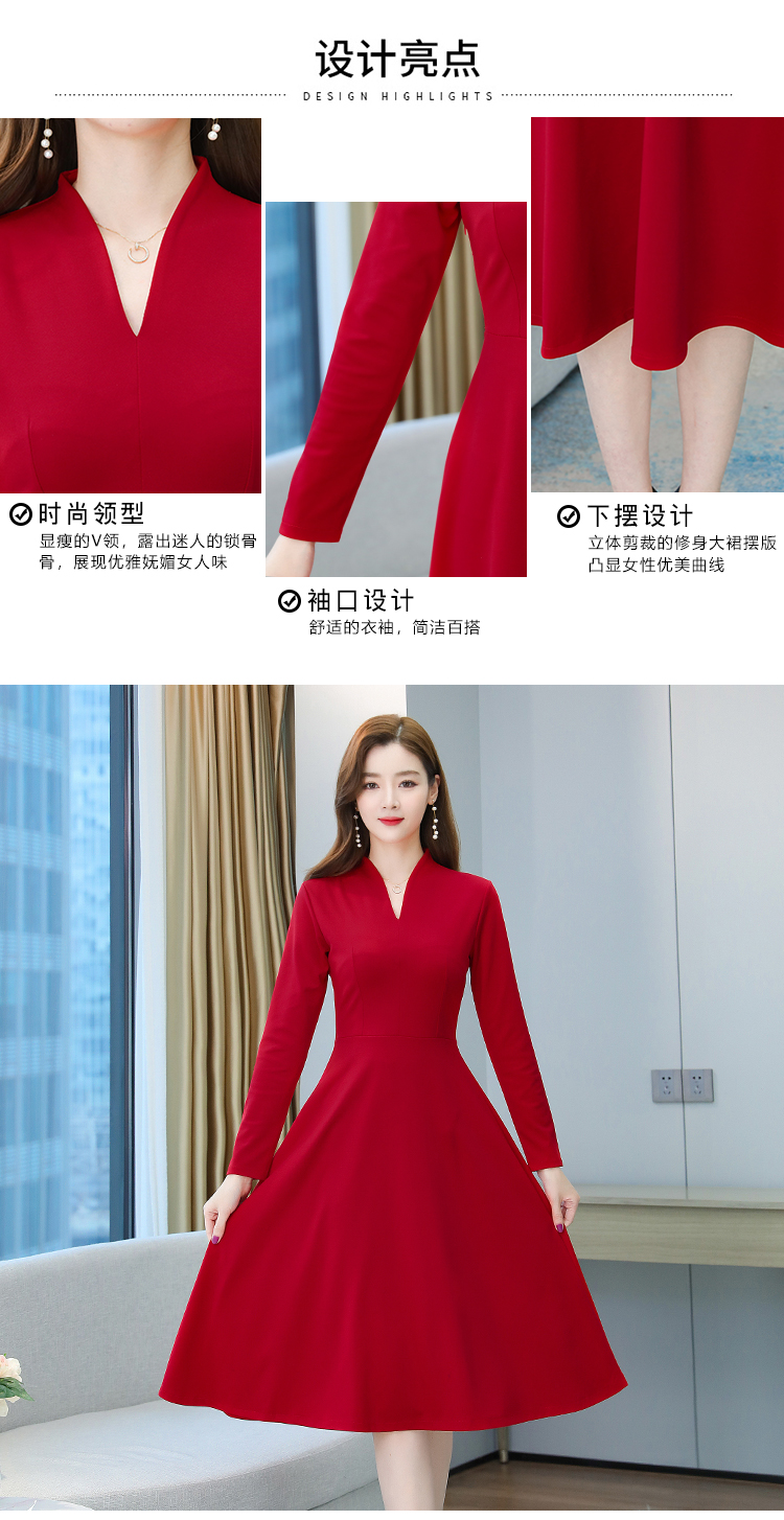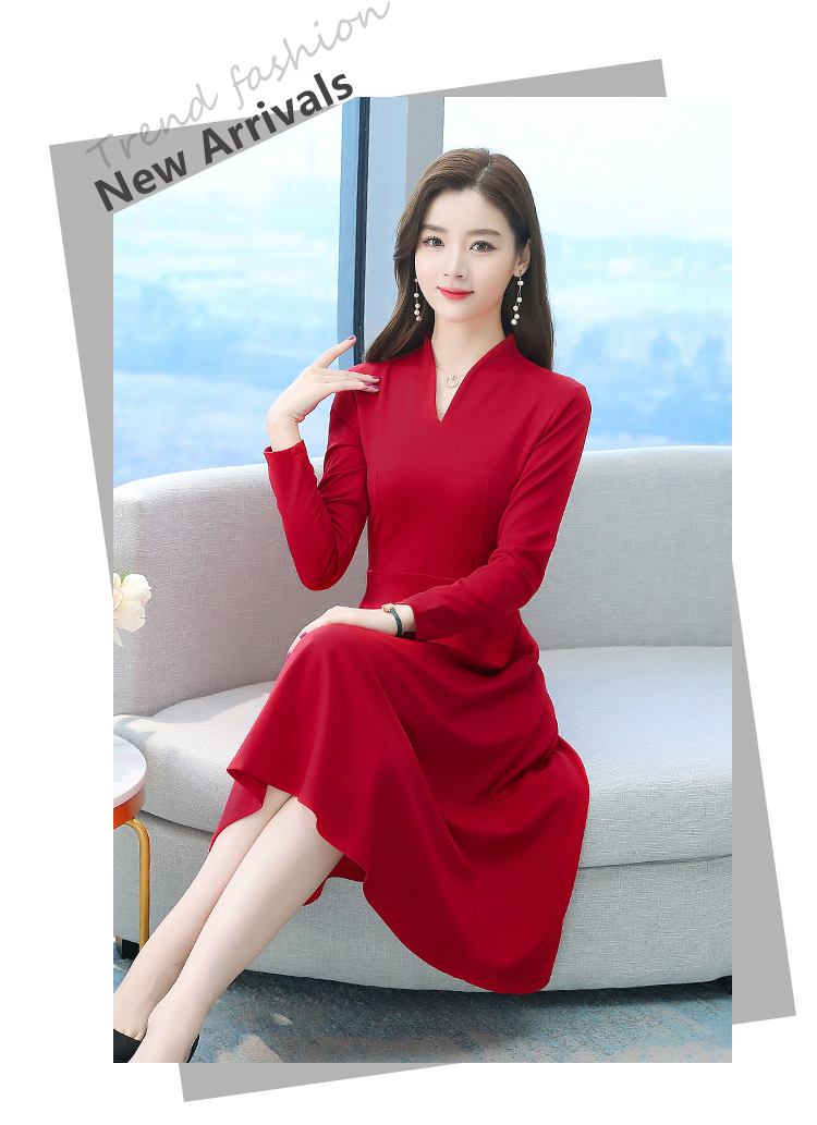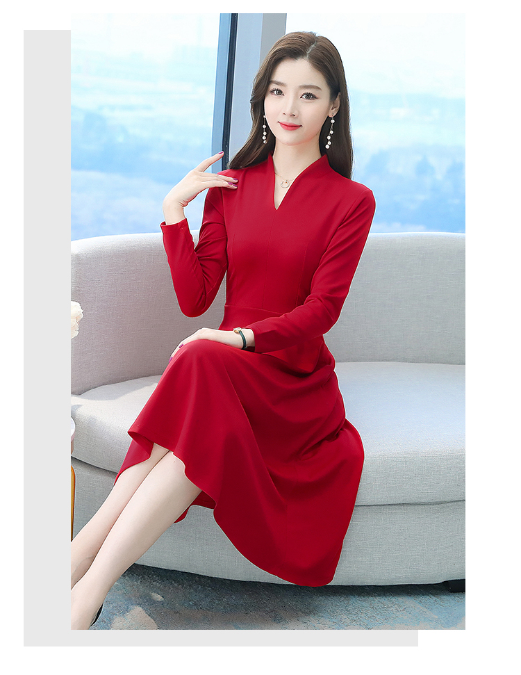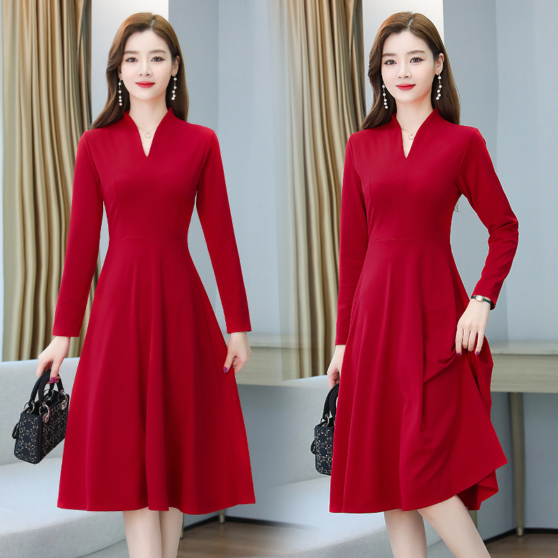 MY13913# 大码红色高级感法式v领裙子女胖mm显瘦收腰赫本风针织连衣裙女裝貨源服裝批發