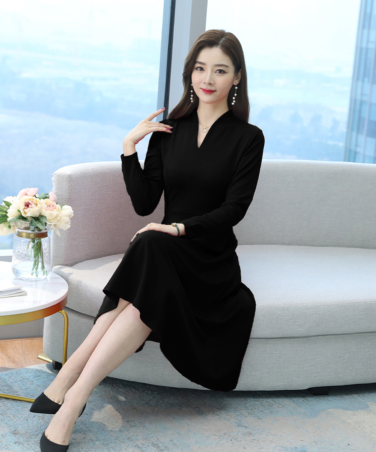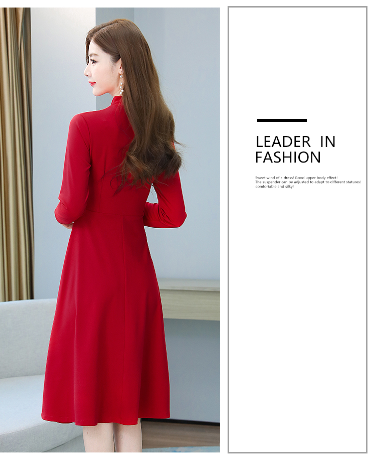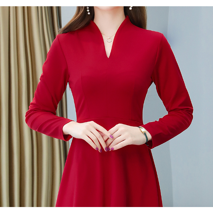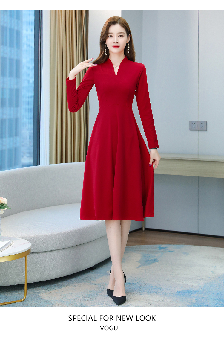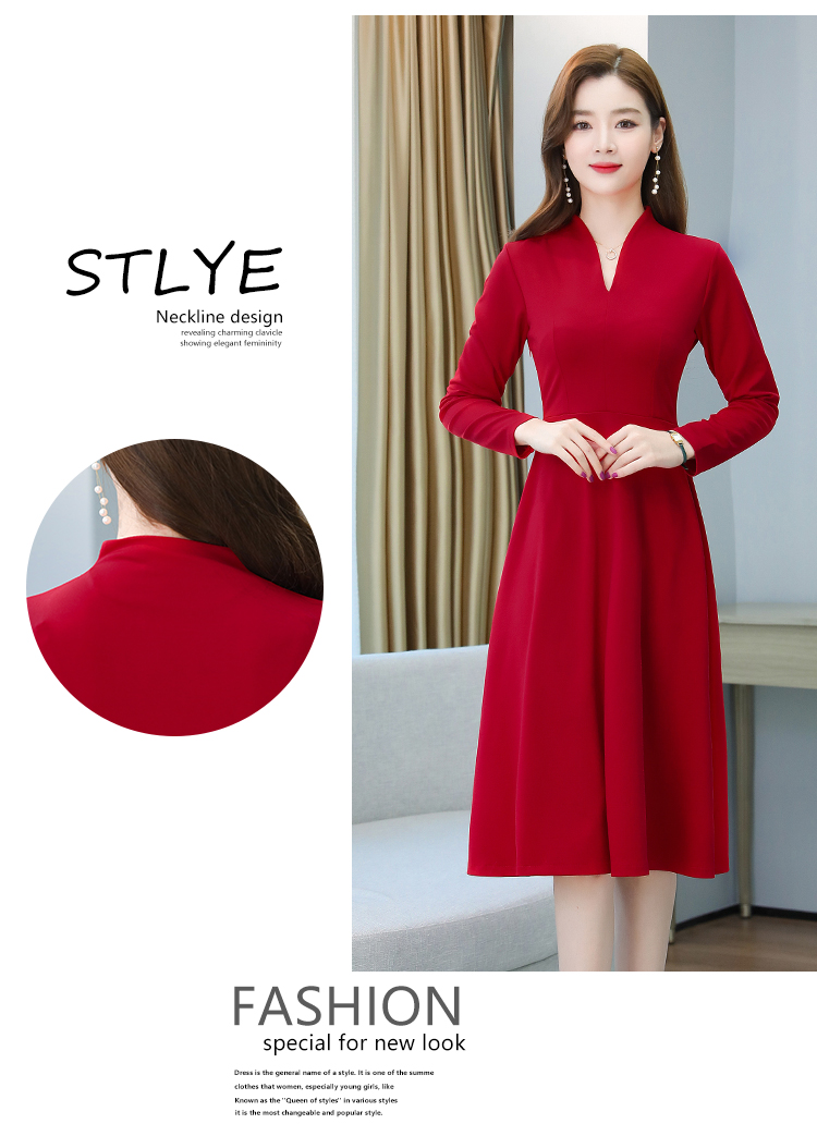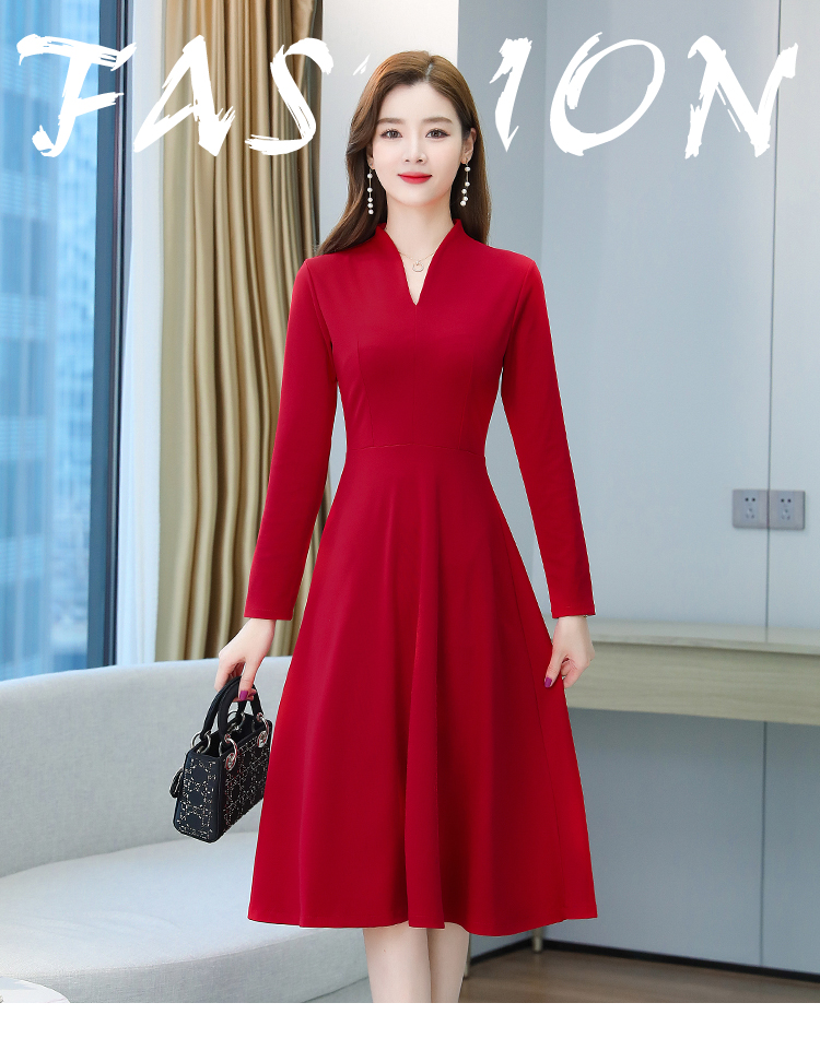 MY13913# 大码红色高级感法式v领裙子女胖mm显瘦收腰赫本风针织连衣裙女裝貨源服裝批發