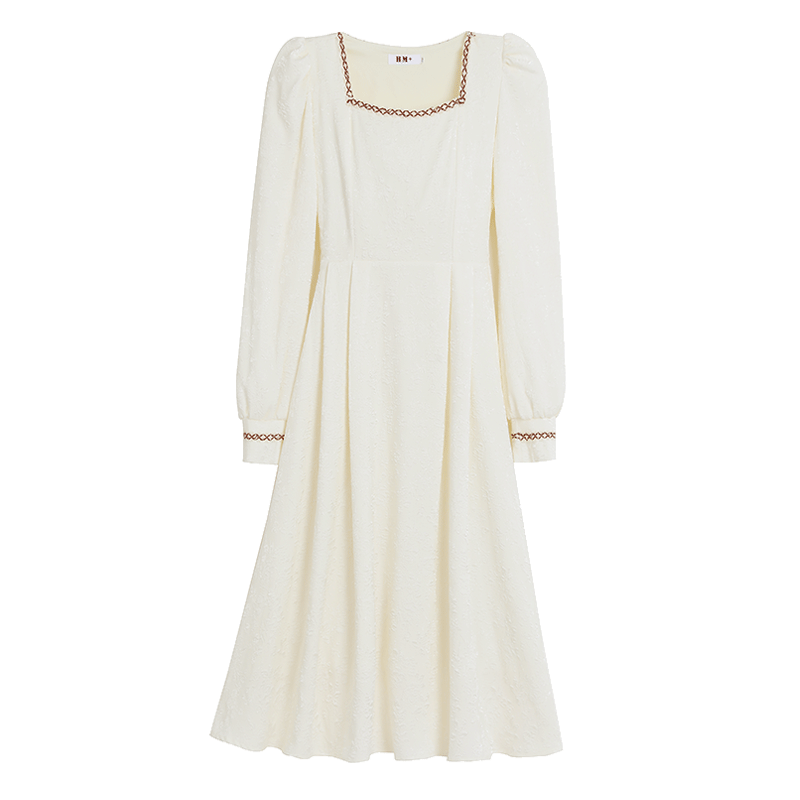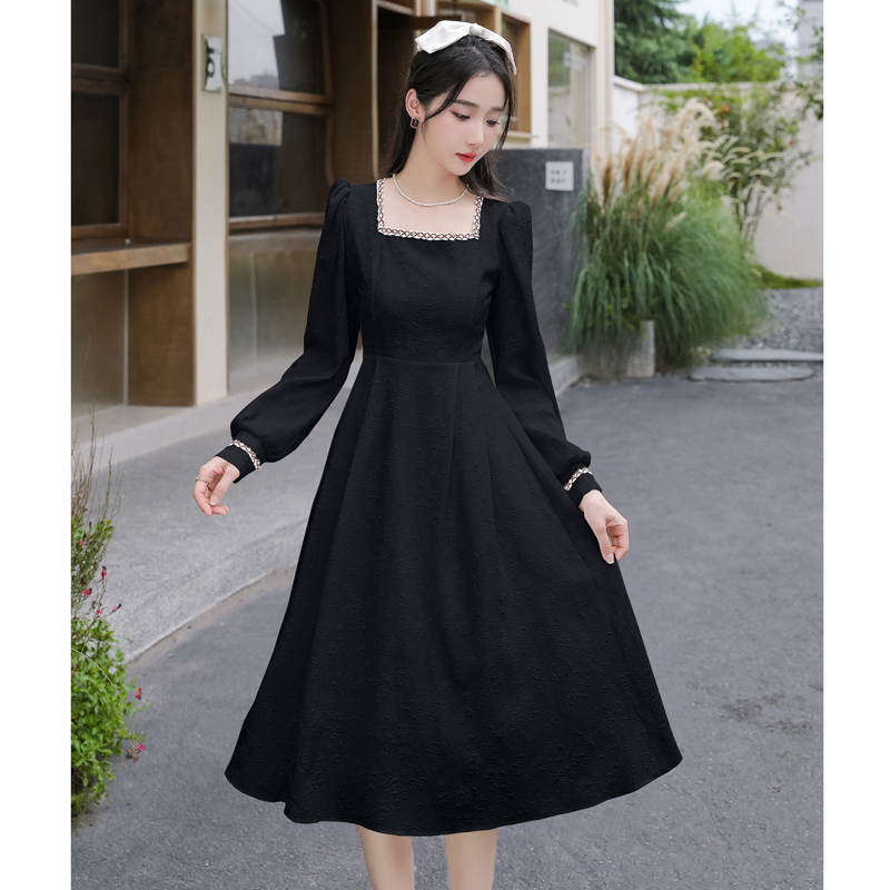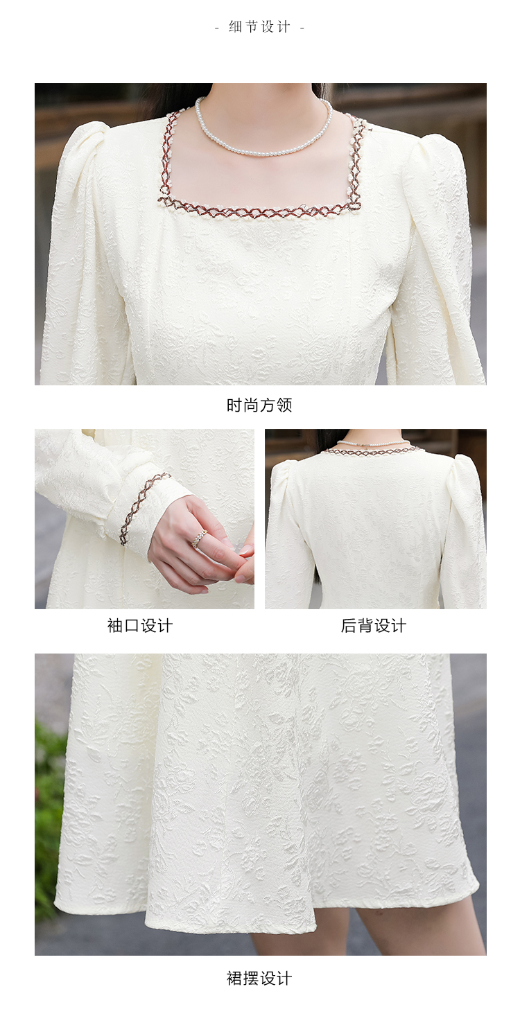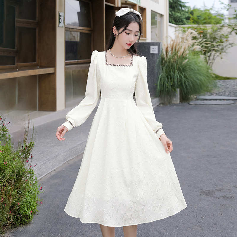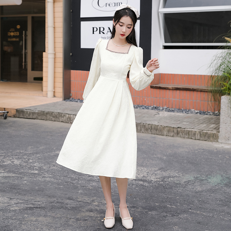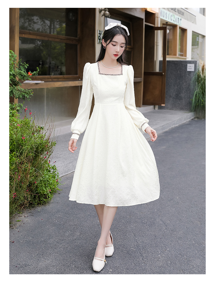 MY13914# 大码法式温柔风杏色方领花边连衣裙高级感收腰显瘦气质长裙女裝貨源服裝批發