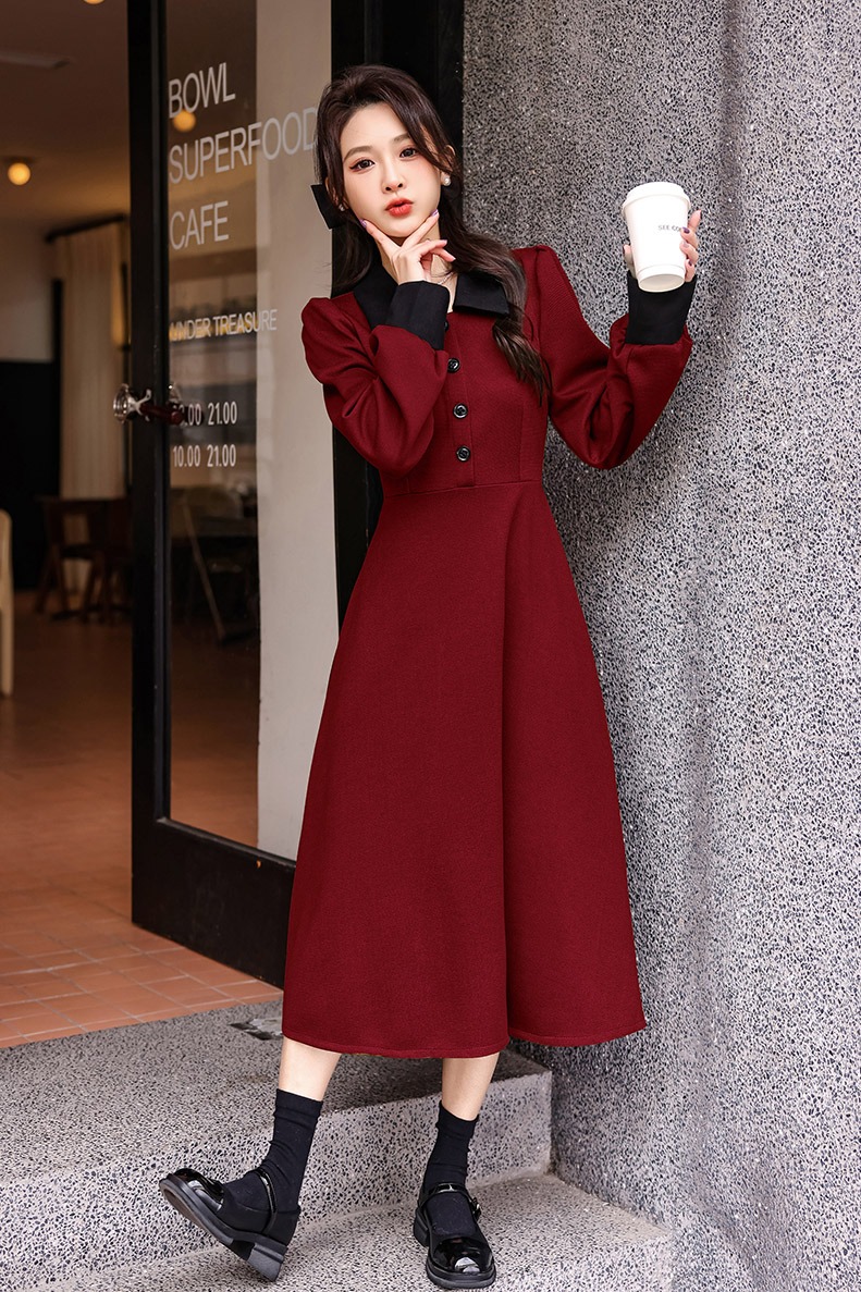 MY13922# 有口袋大码气质高级感红色连衣裙新款法式赫本风女神女裝貨源服裝批發