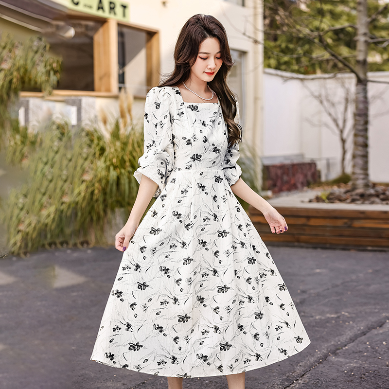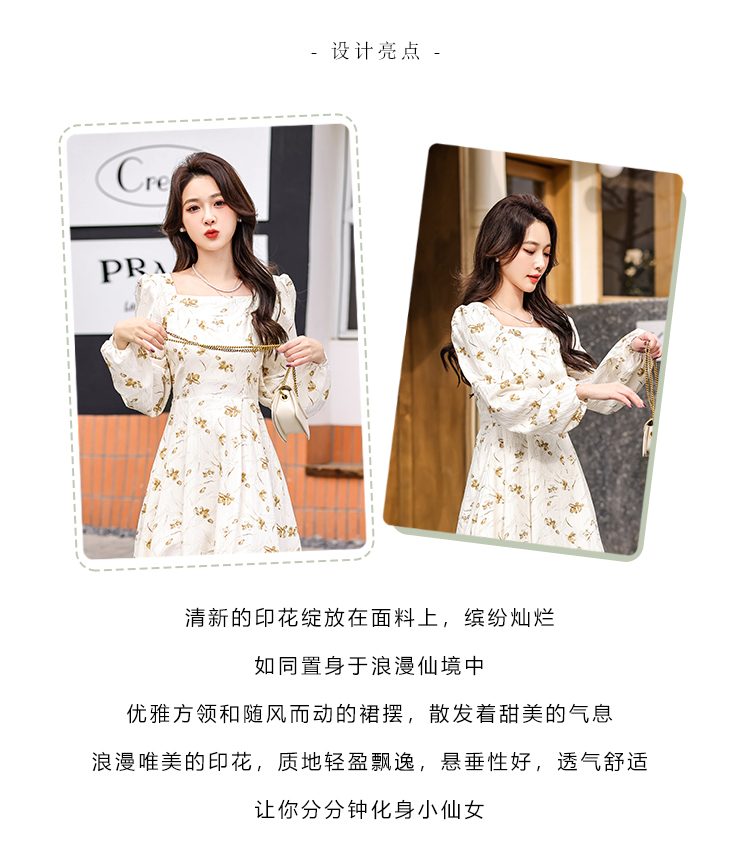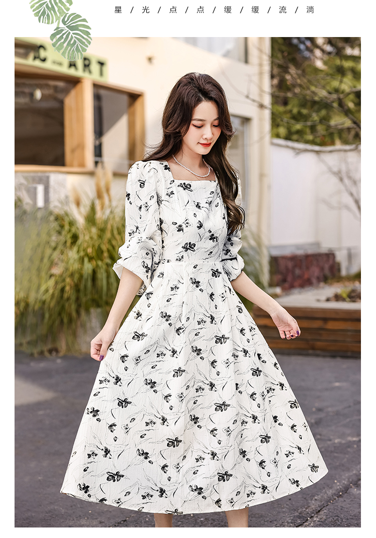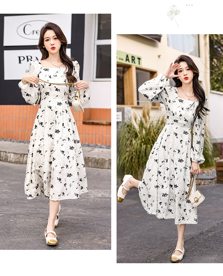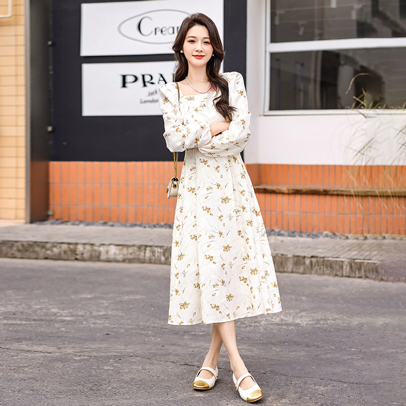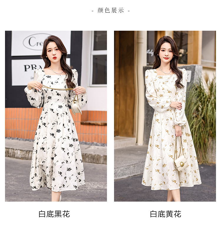 MY13923# 法式茶歇黑色长袖碎花连衣裙女秋季大码胖mm掐腰显瘦独特绝美长裙女裝貨源服裝批發