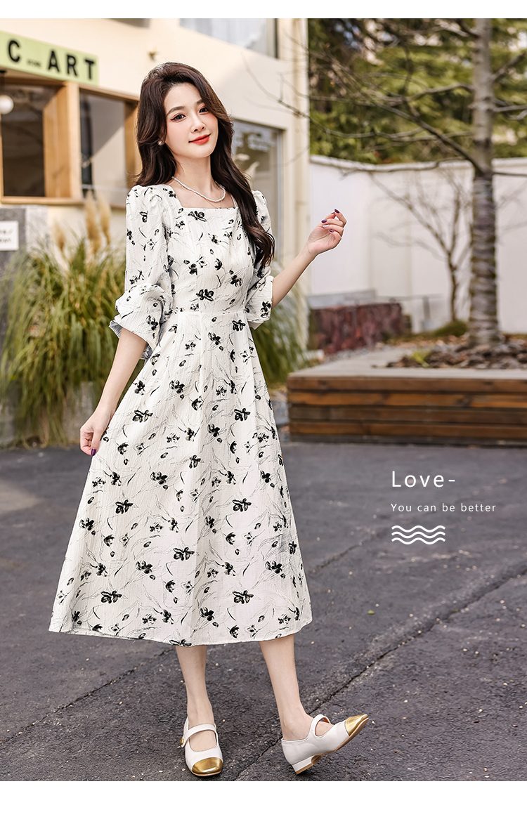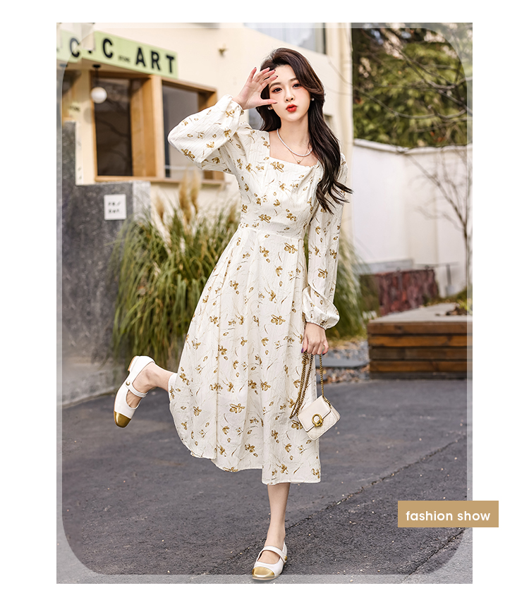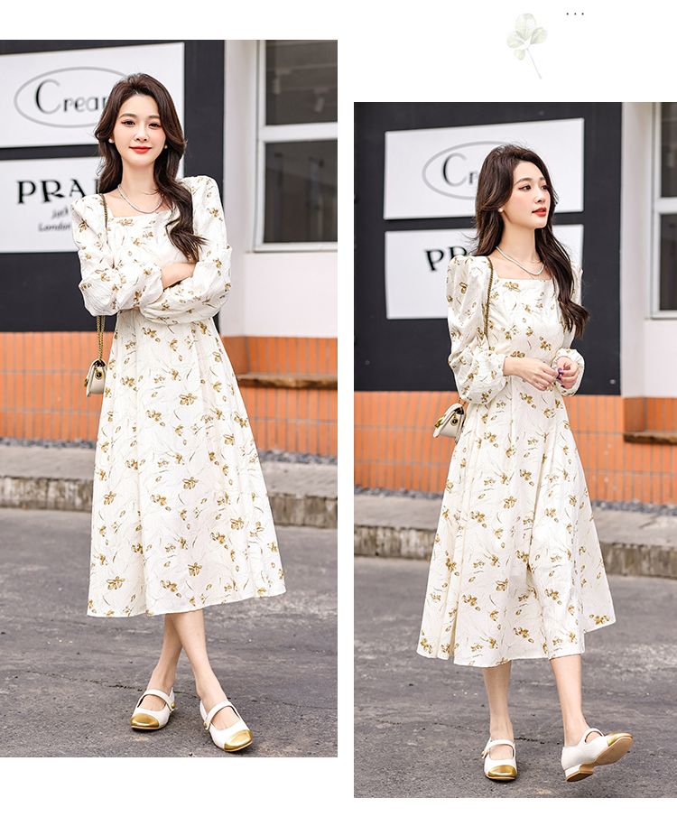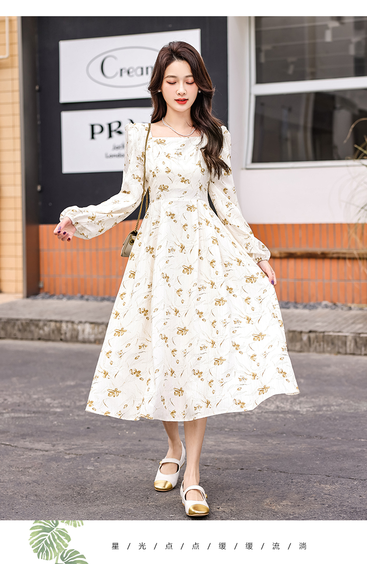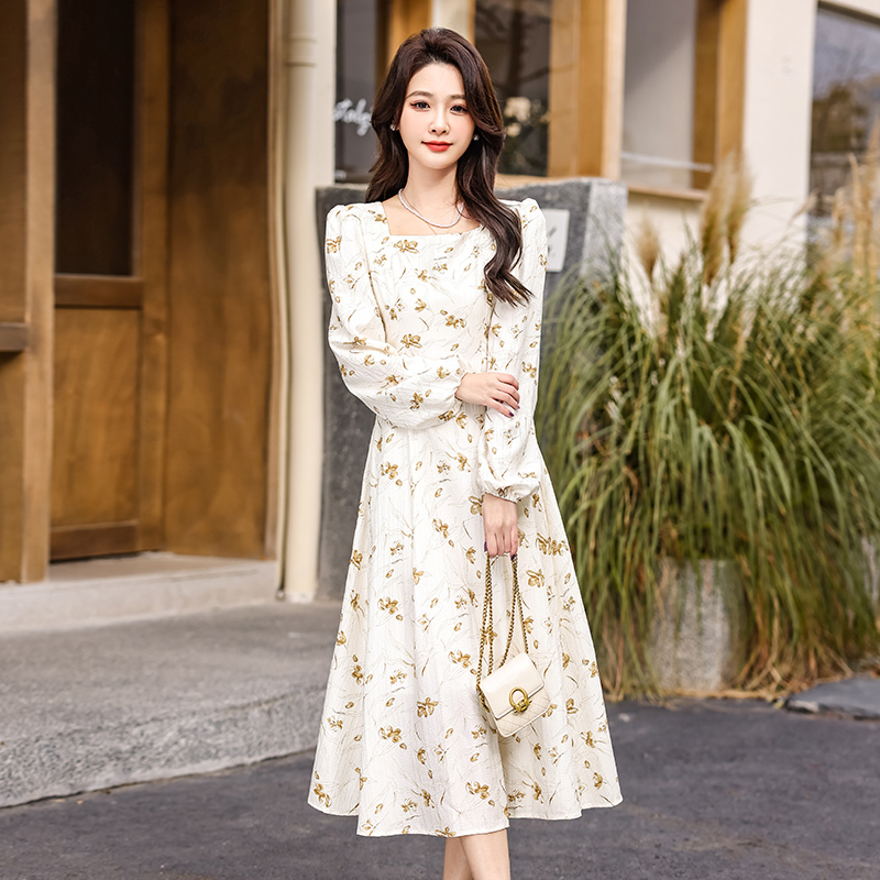 MY13923# 法式茶歇黑色长袖碎花连衣裙女秋季大码胖mm掐腰显瘦独特绝美长裙女裝貨源服裝批發