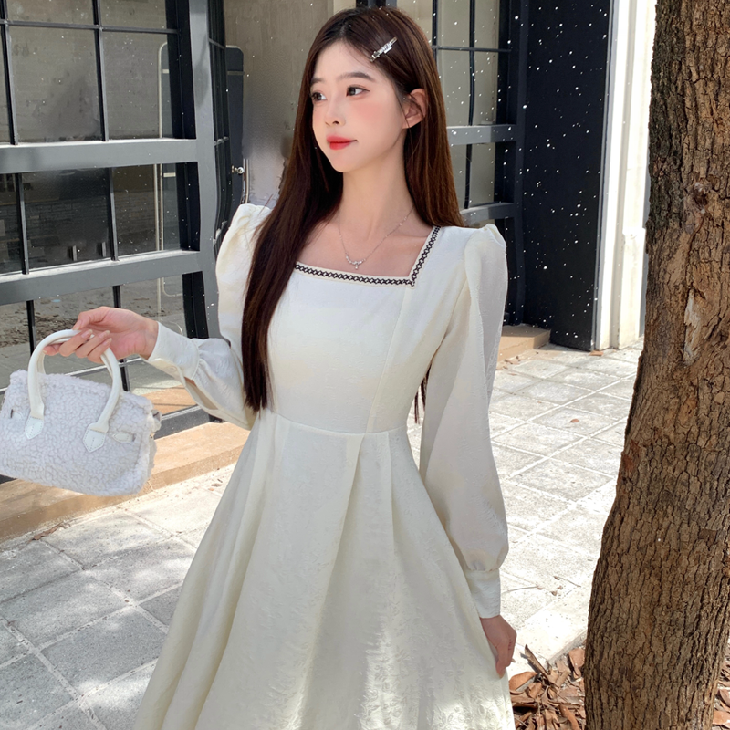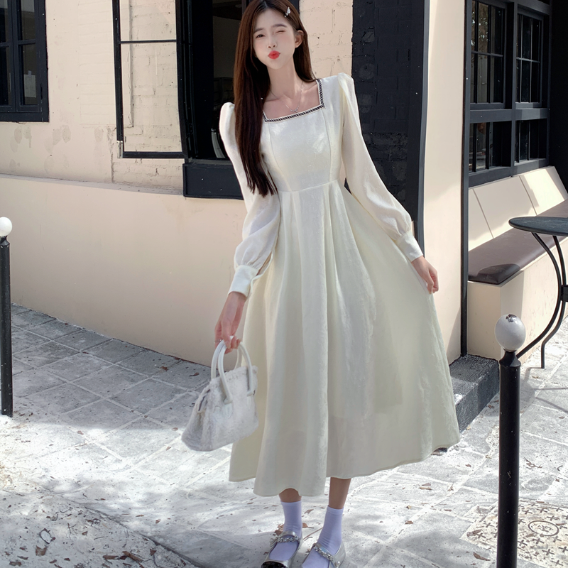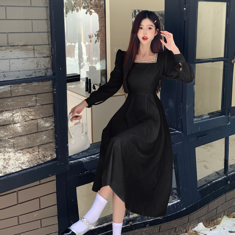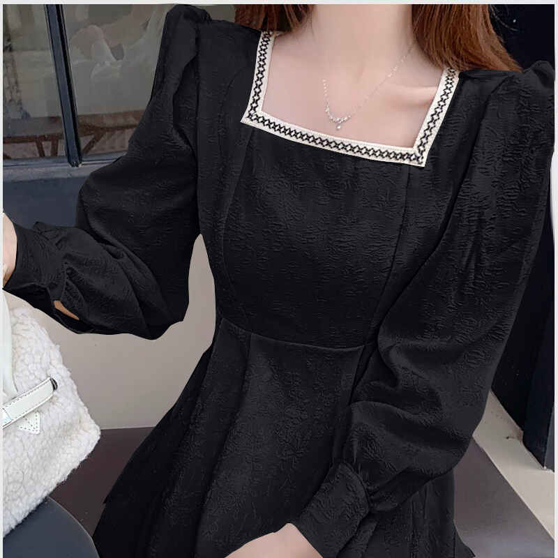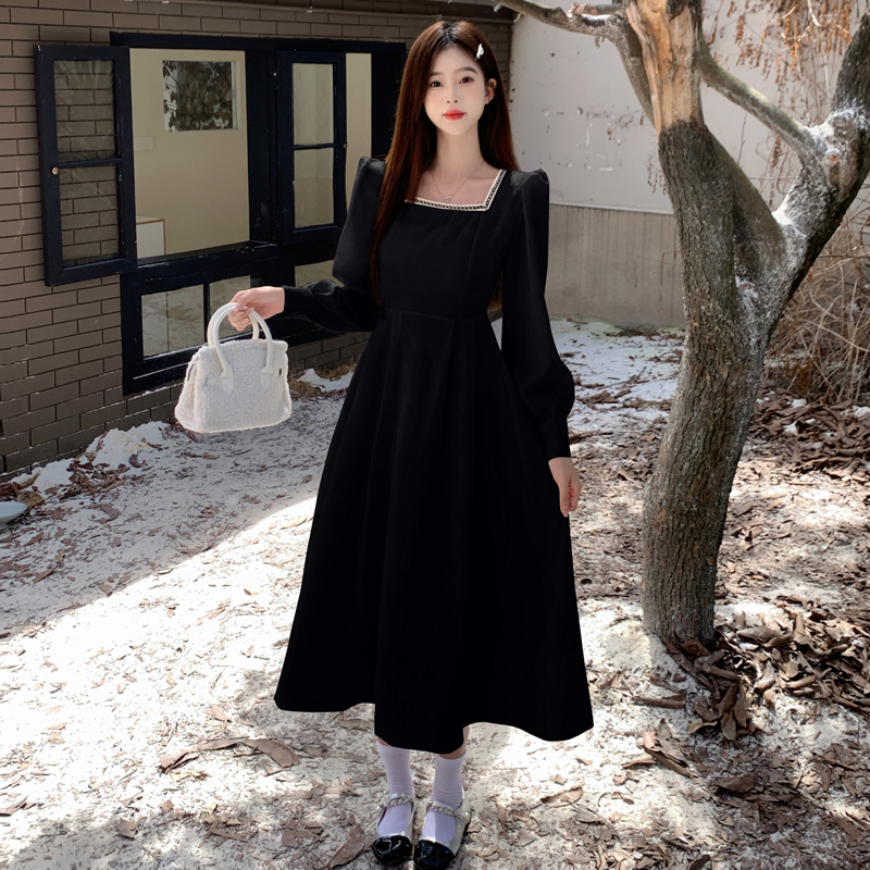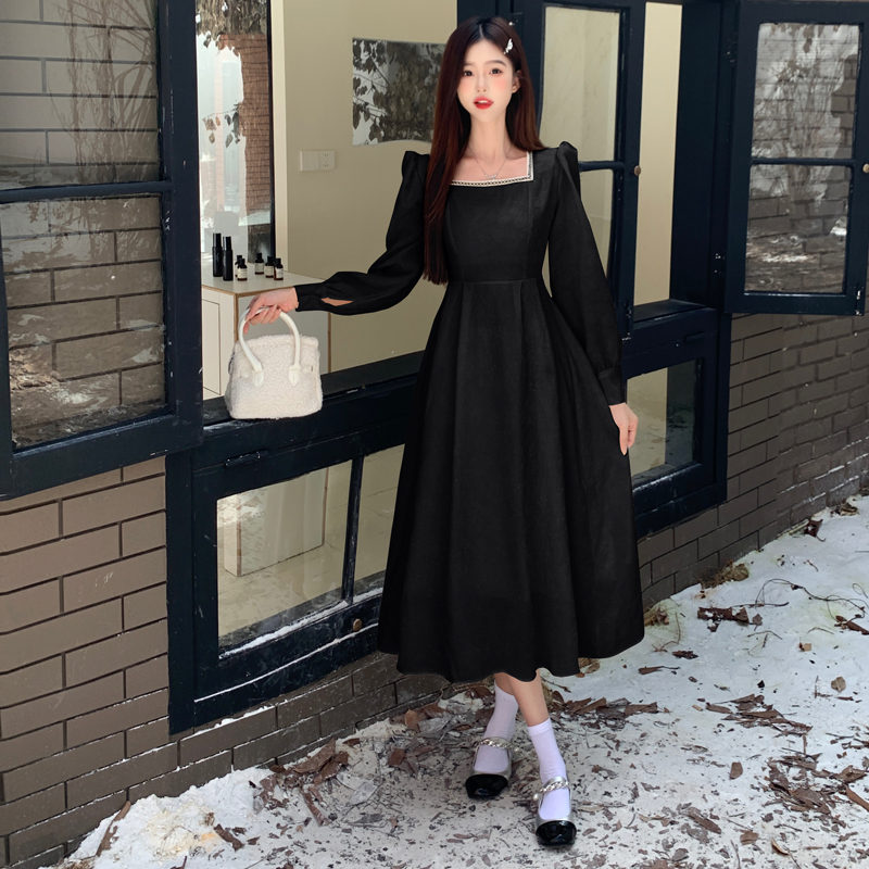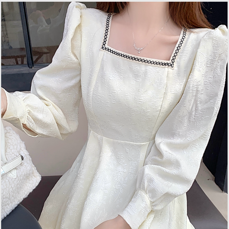 MY13926# 大码茶歇法式气质连衣裙女掐腰裙子新娘敬酒服赫本方领裙子女裝貨源服裝批發