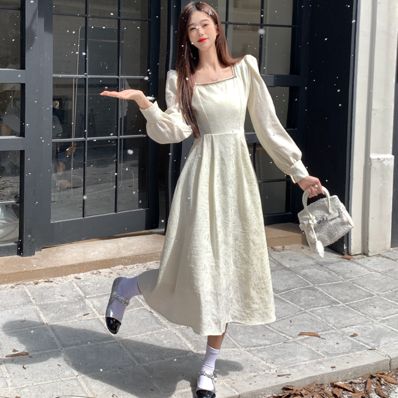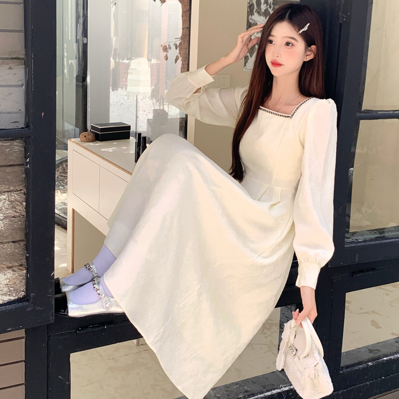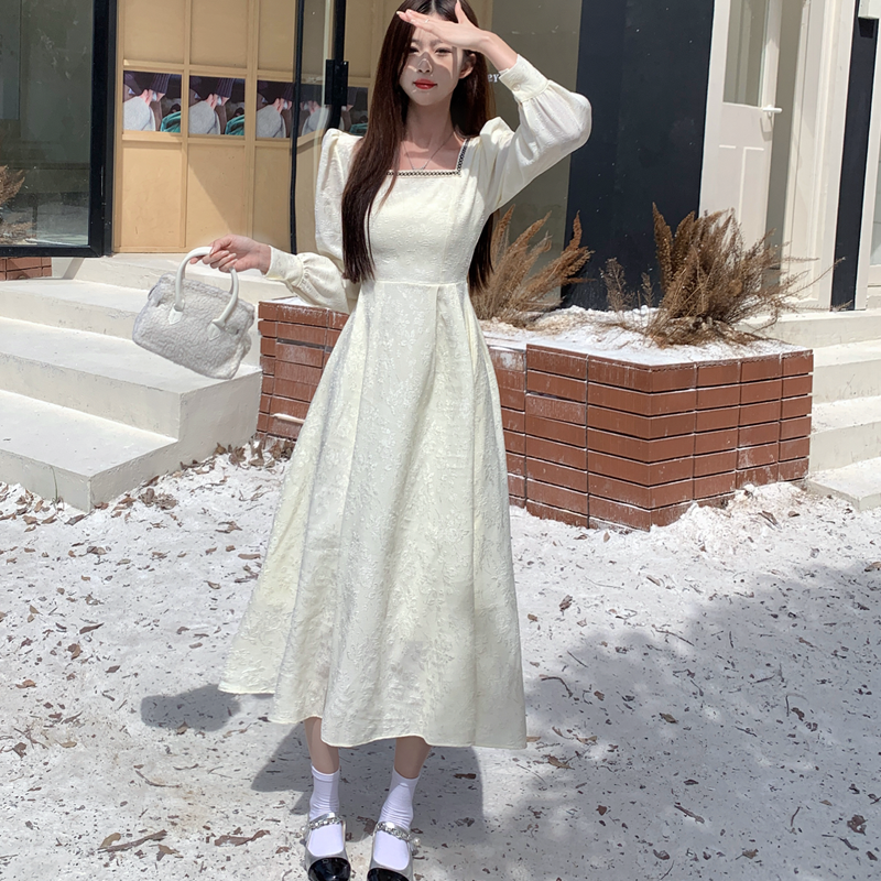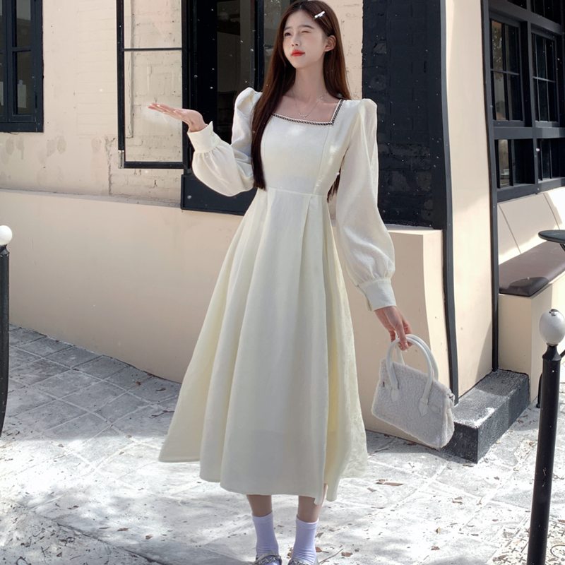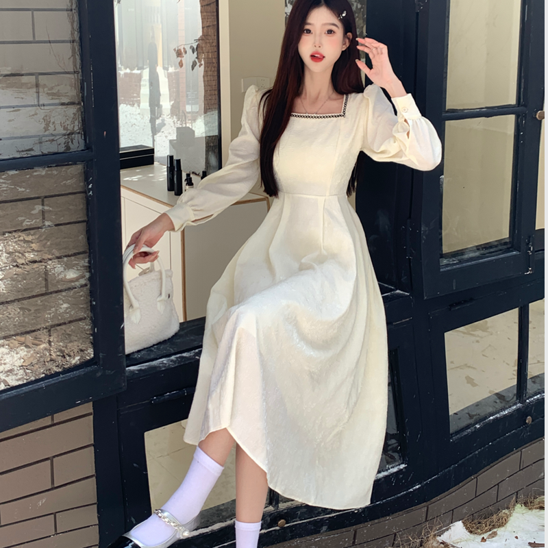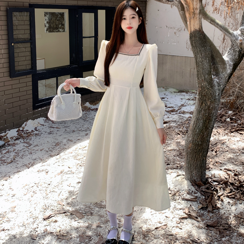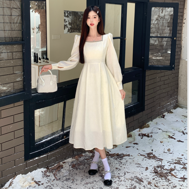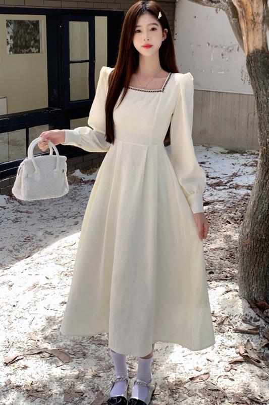 MY13926# 大码茶歇法式气质连衣裙女掐腰裙子新娘敬酒服赫本方领裙子女裝貨源服裝批發