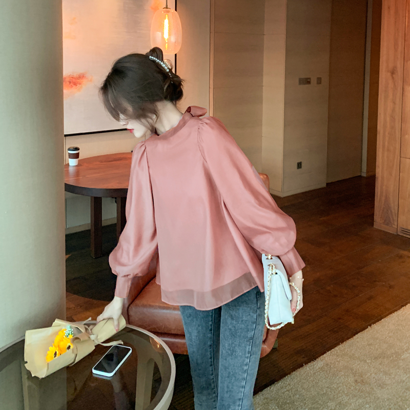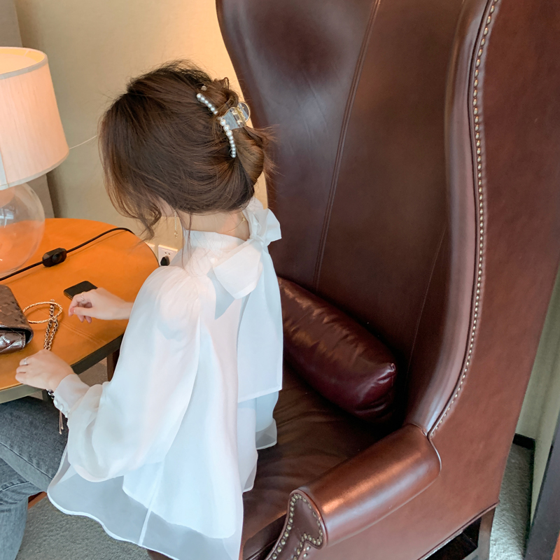 MY13940# 甜美宫廷灯笼泡泡袖蝴蝶结衬衫女仙女雪纺衫上衣女裝貨源服裝批發