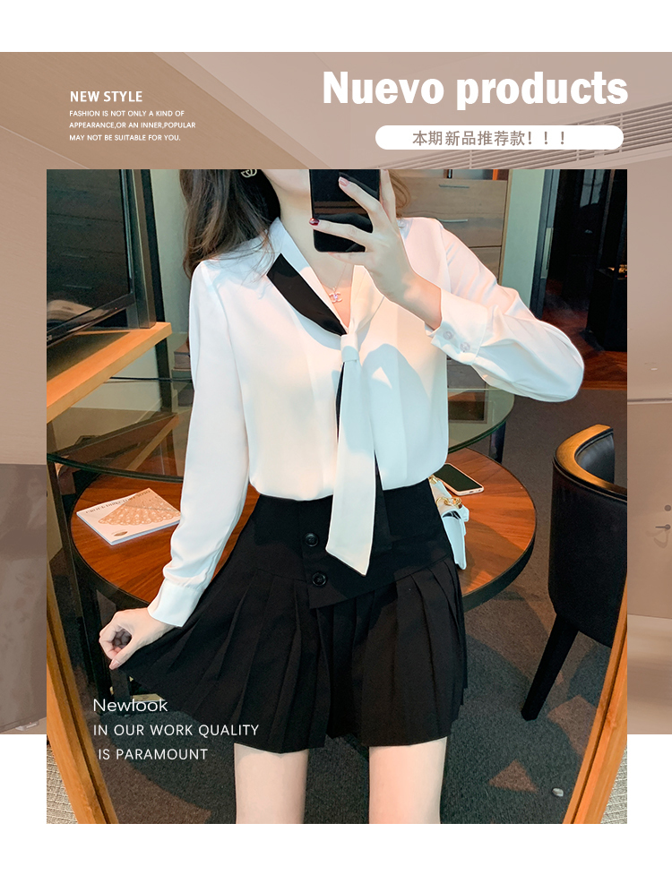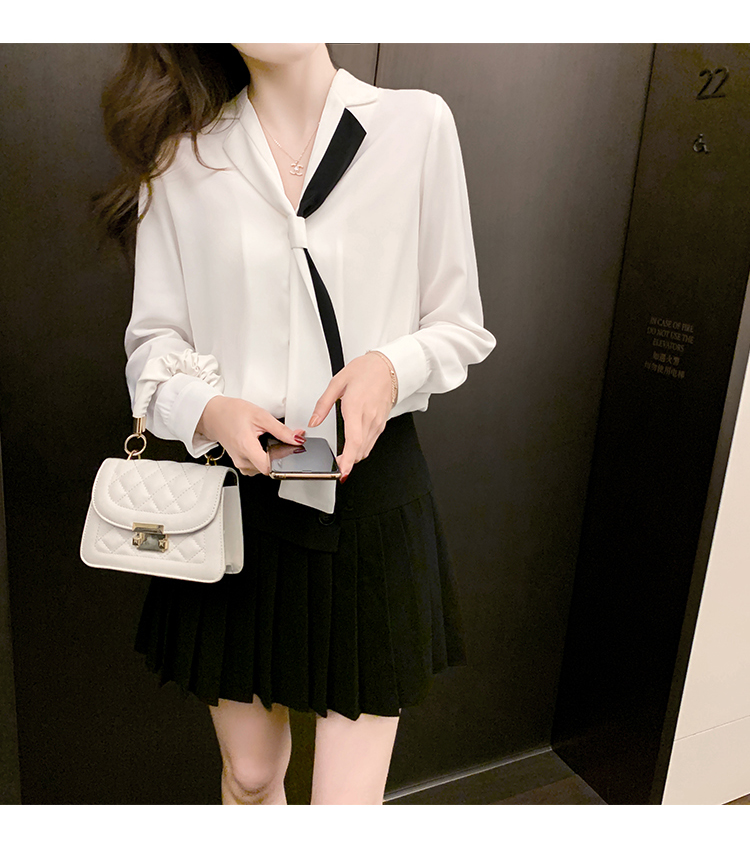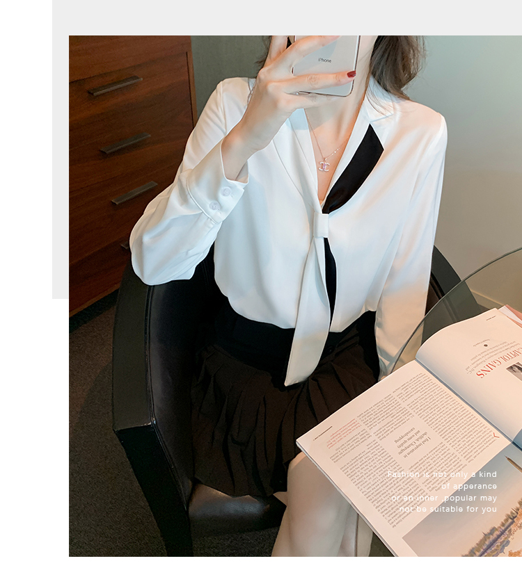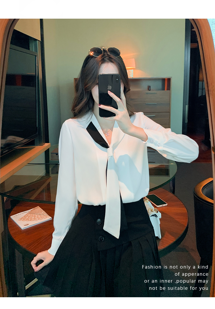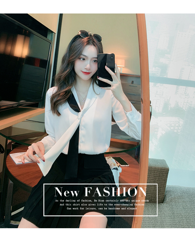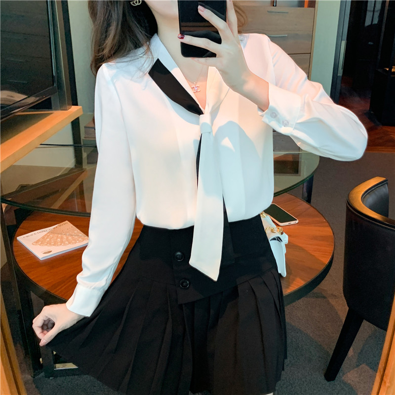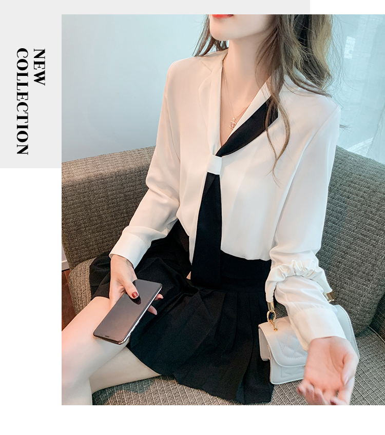 MY13946# 新款翻领领带职业白色衬衫女小众设计感衬衣雪纺衫上衣女裝貨源服裝批發