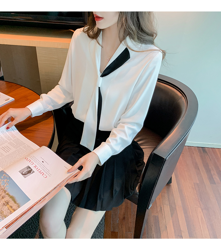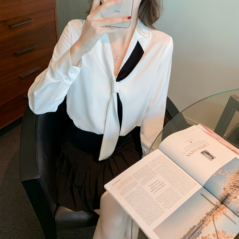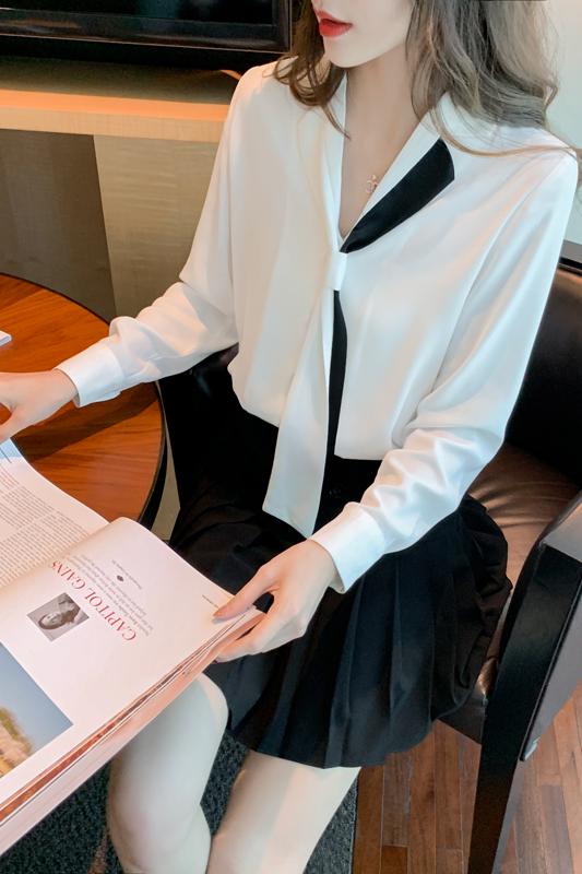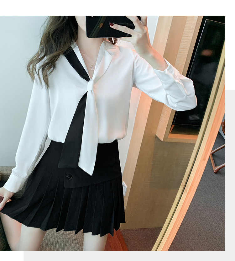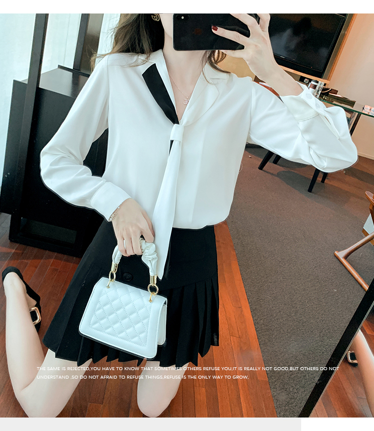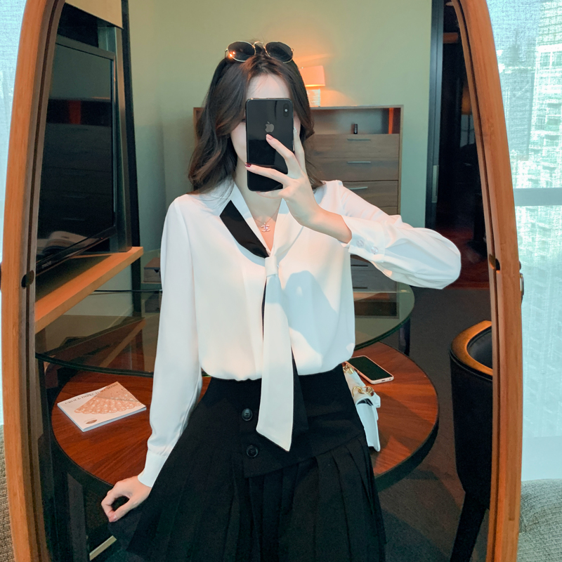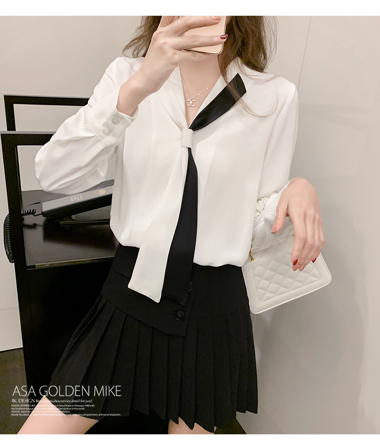 MY13946# 新款翻领领带职业白色衬衫女小众设计感衬衣雪纺衫上衣女裝貨源服裝批發