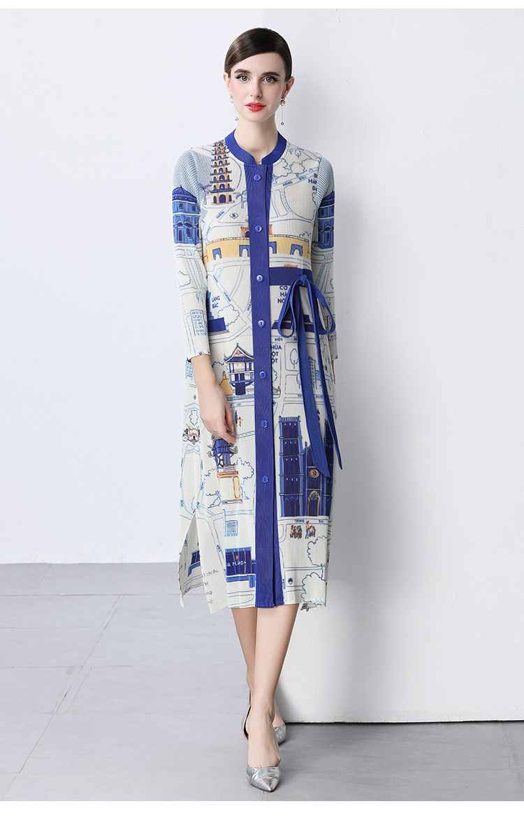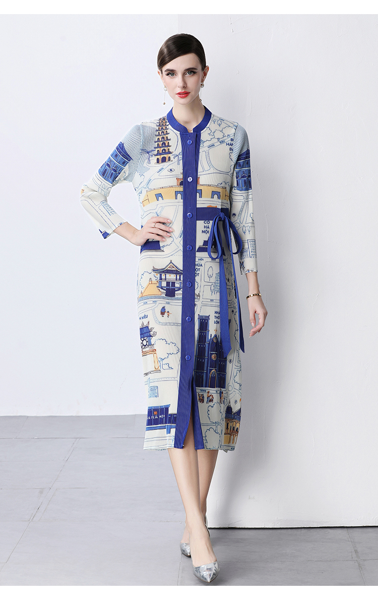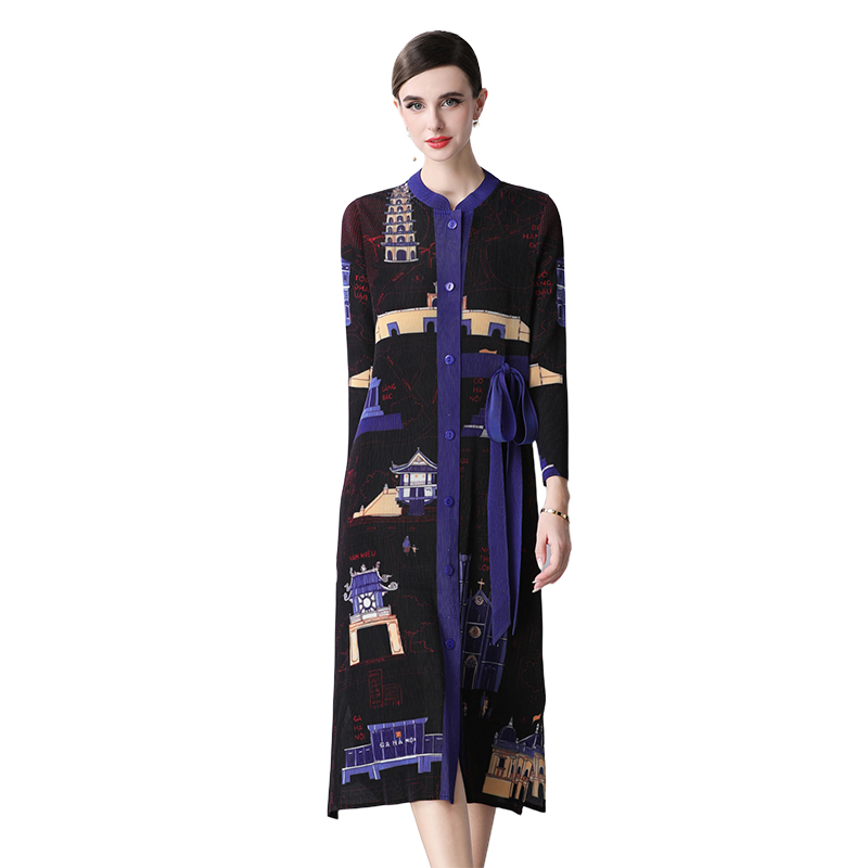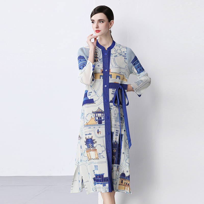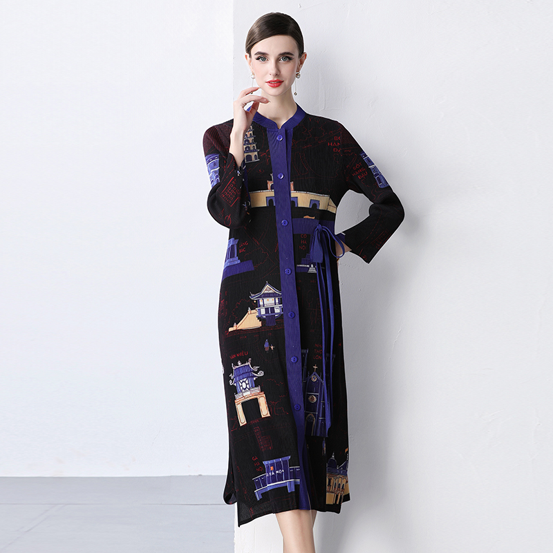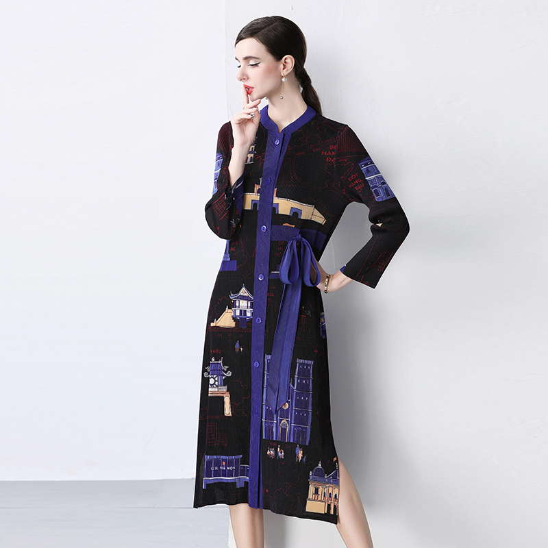 MY13951# 小众高级感气质修身显瘦衬衫裙新款减龄立领单排扣连衣裙女女裝貨源服裝批發