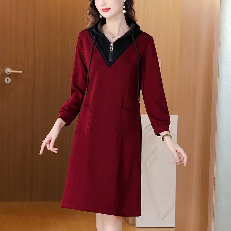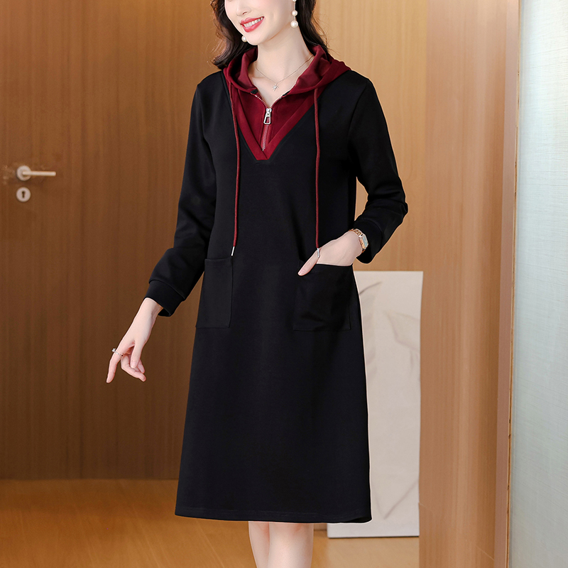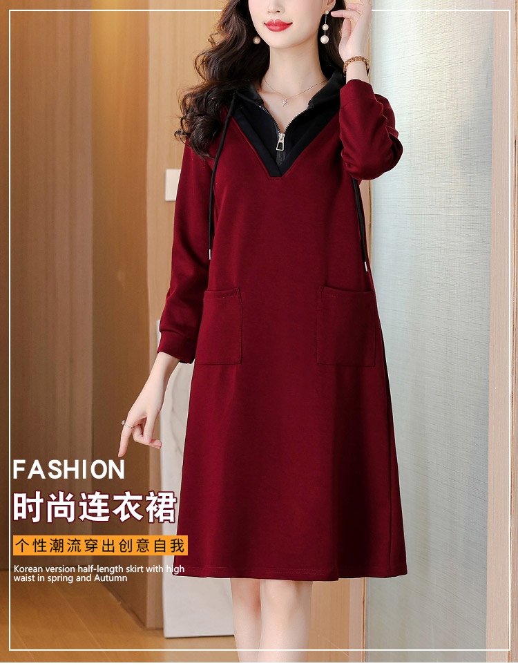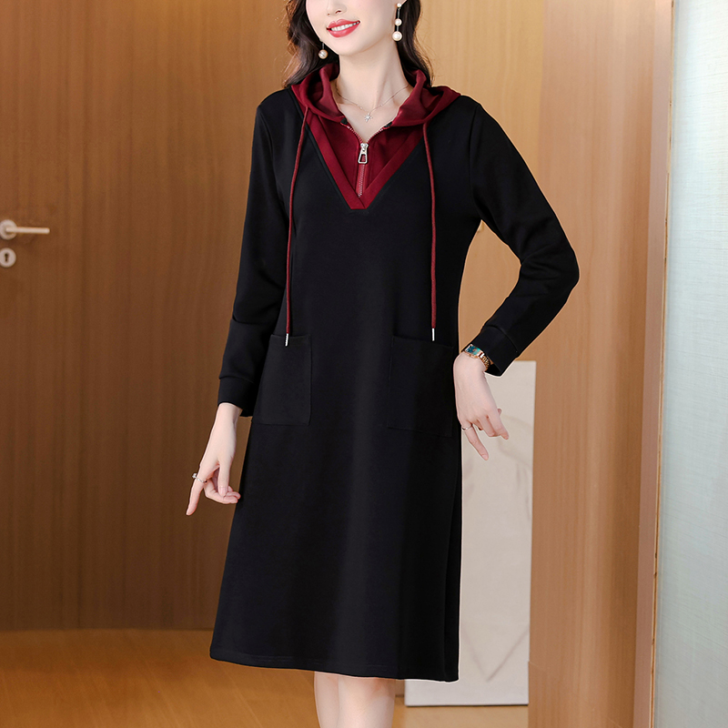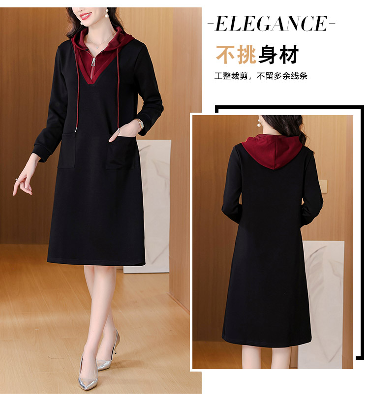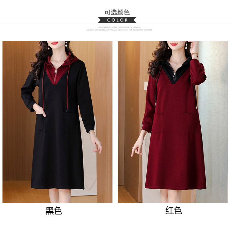 MY13957# 假两件连衣裙时尚中长款遮肚显瘦卫衣裙子洋气女裝貨源服裝批發