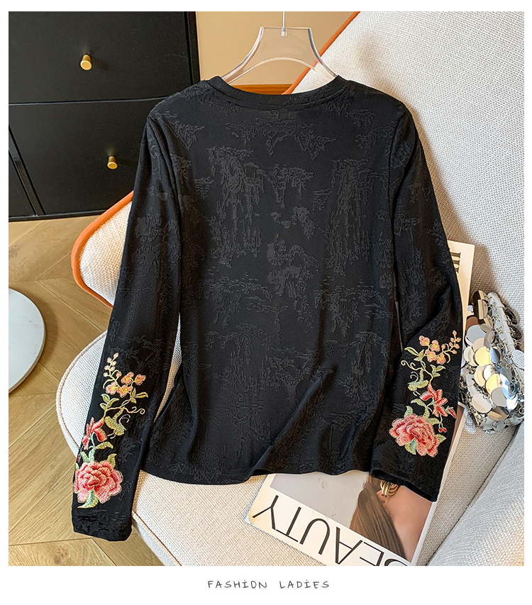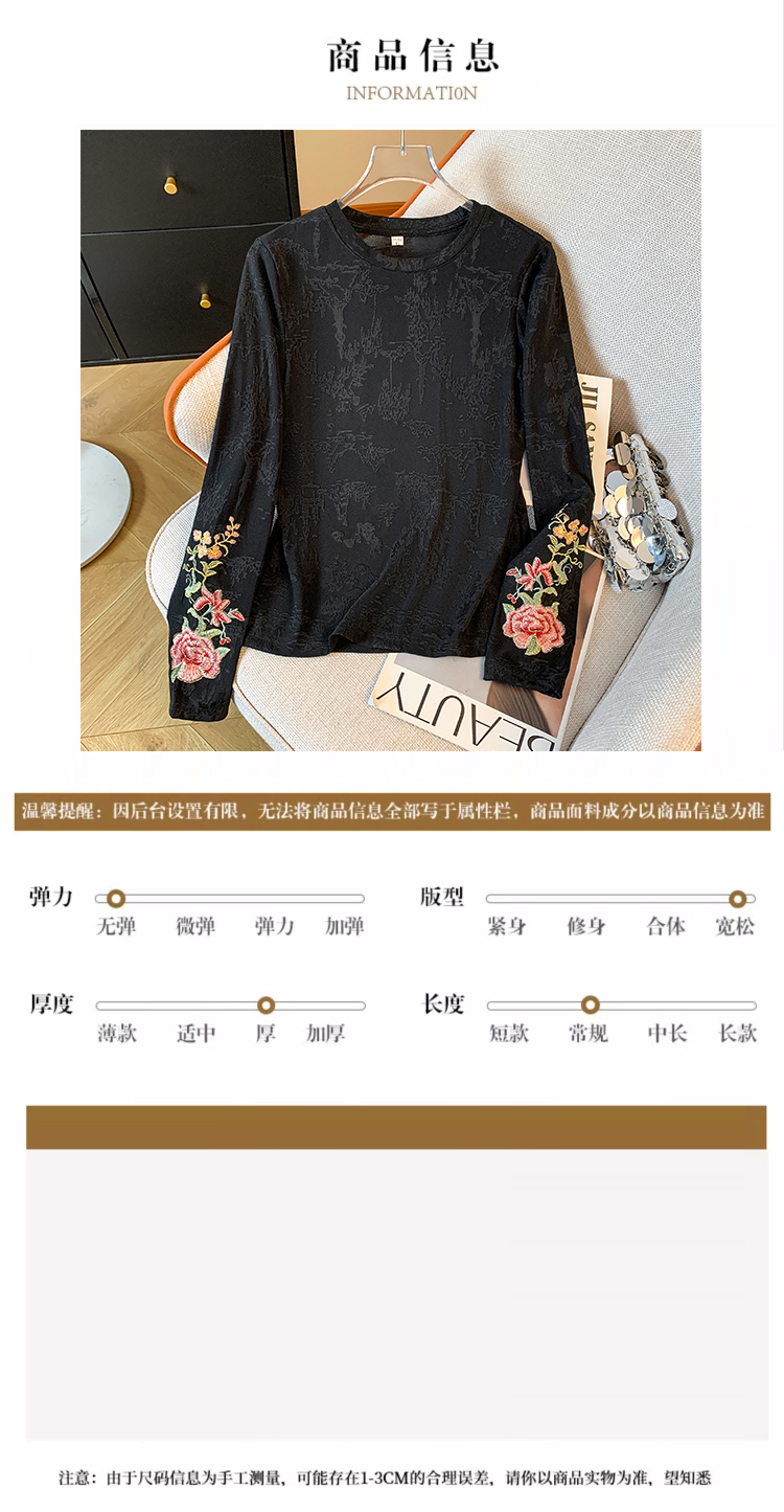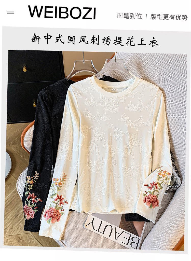 MY13958# 新款新中式国风重工刺绣打底衫女士时尚内搭小衫上衣女裝貨源服裝批發