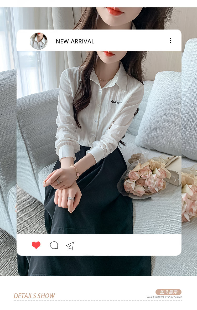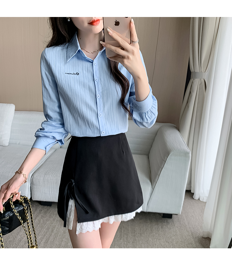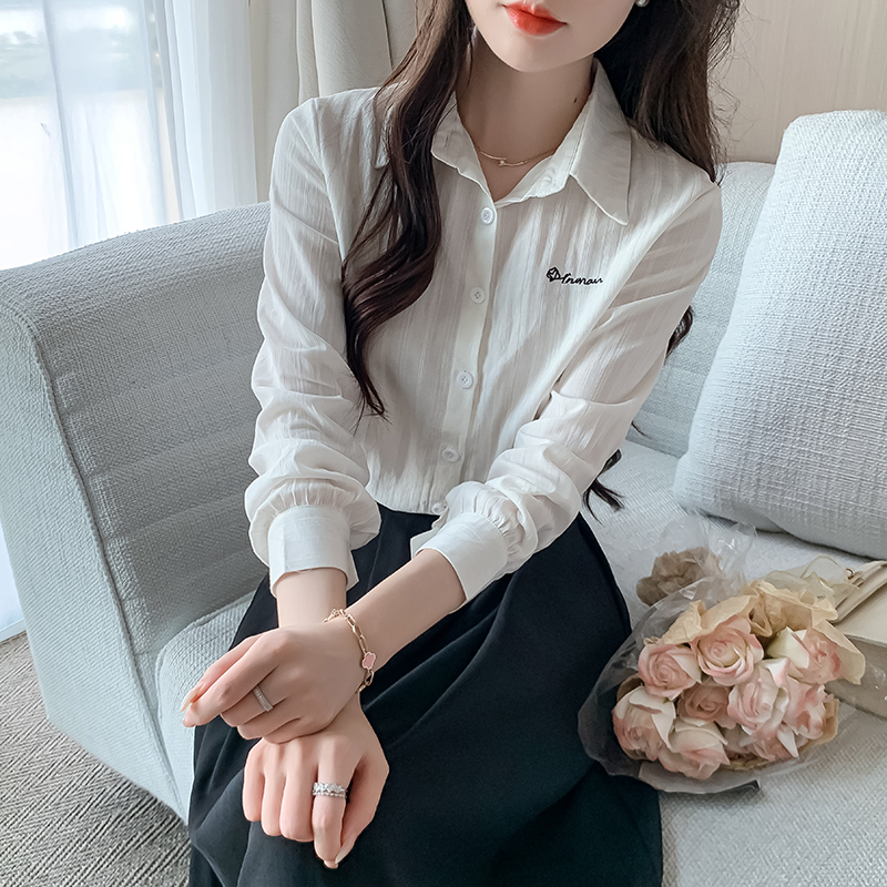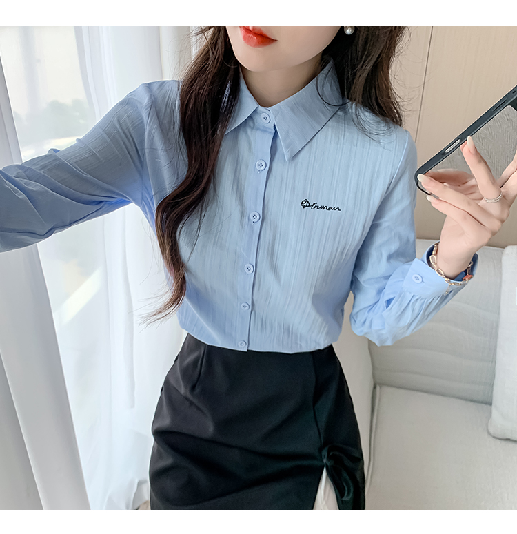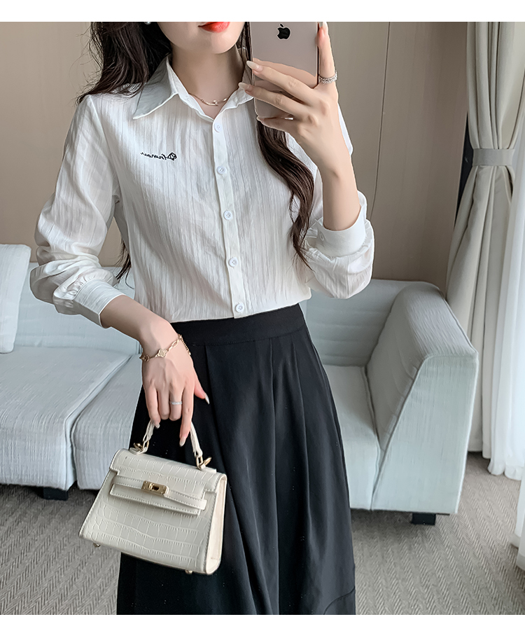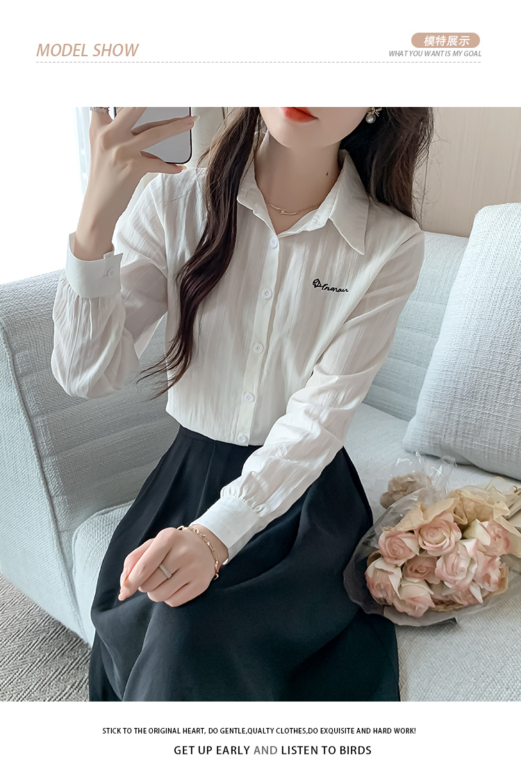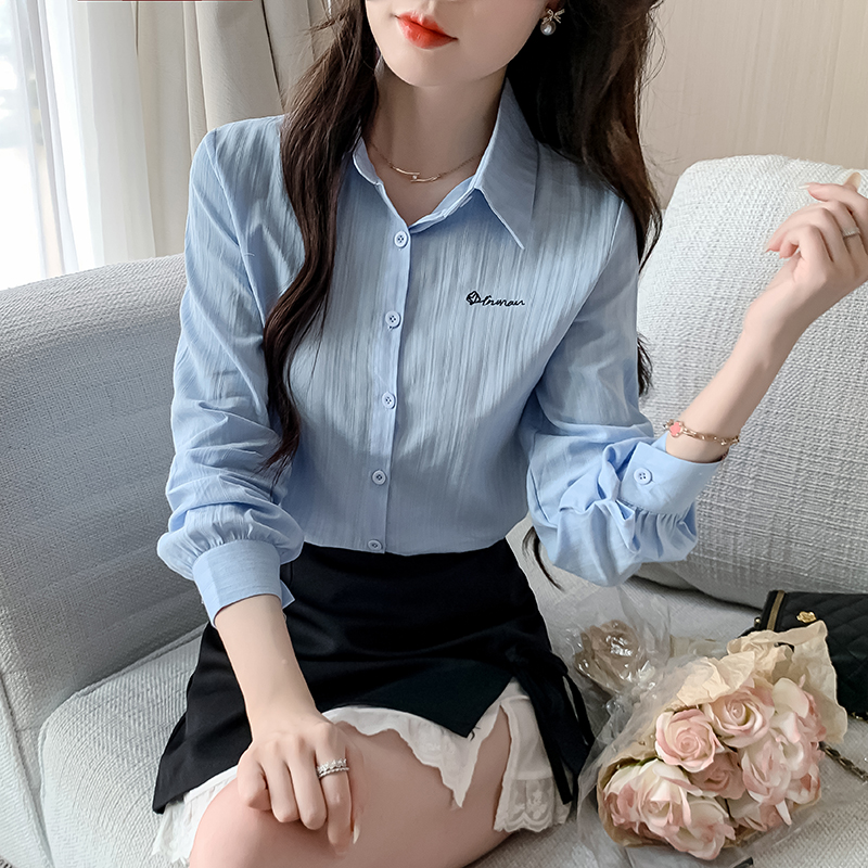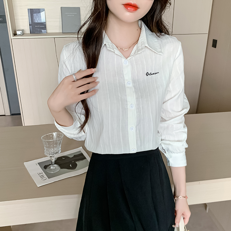 MY13963# 通勤纯棉长袖衬衫新款田园风百搭翻领上衣女裝貨源服裝批發