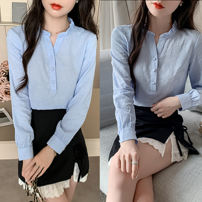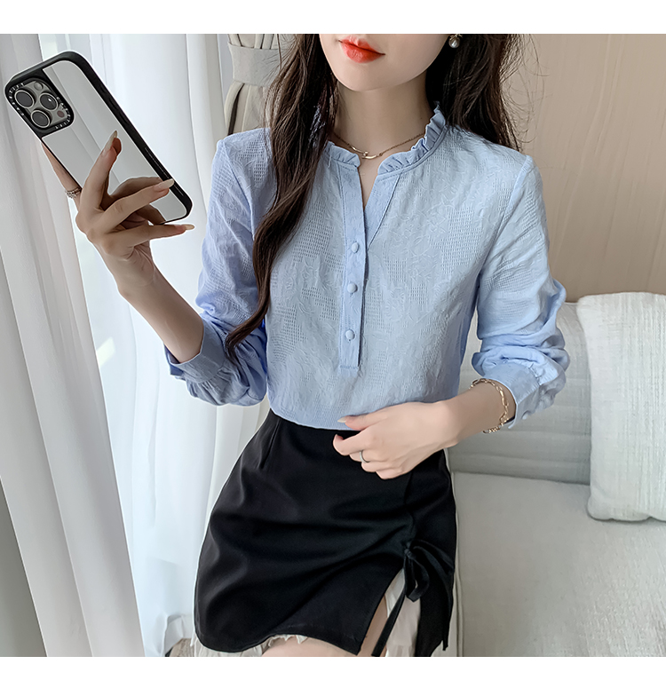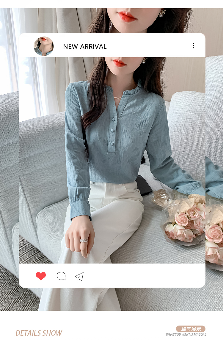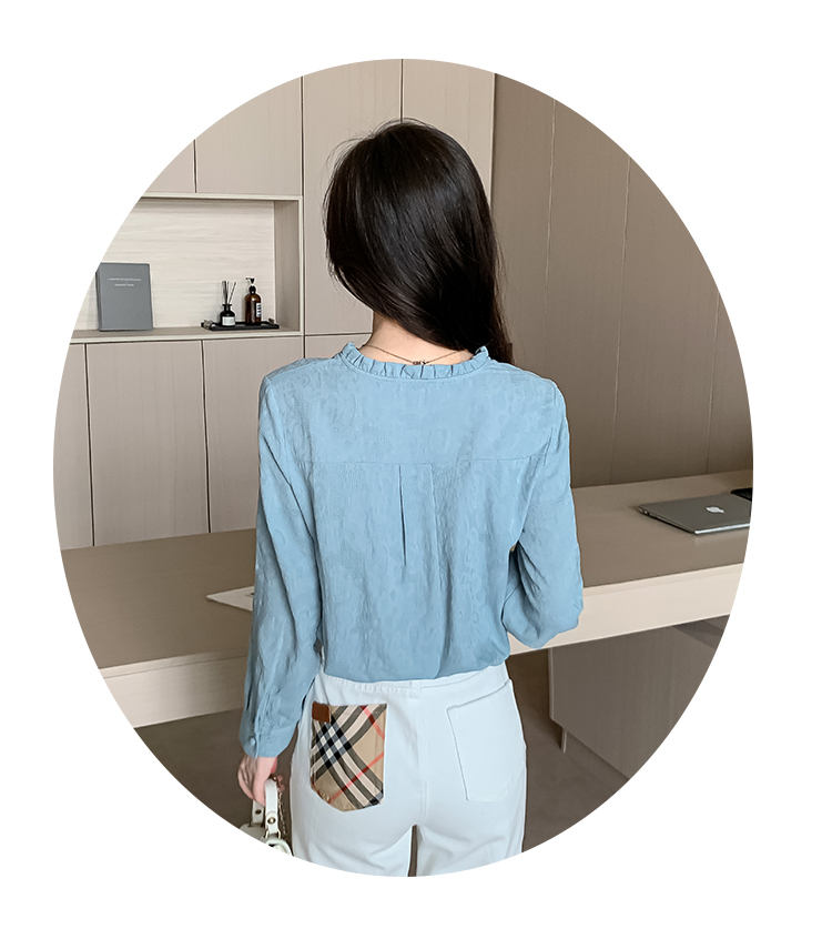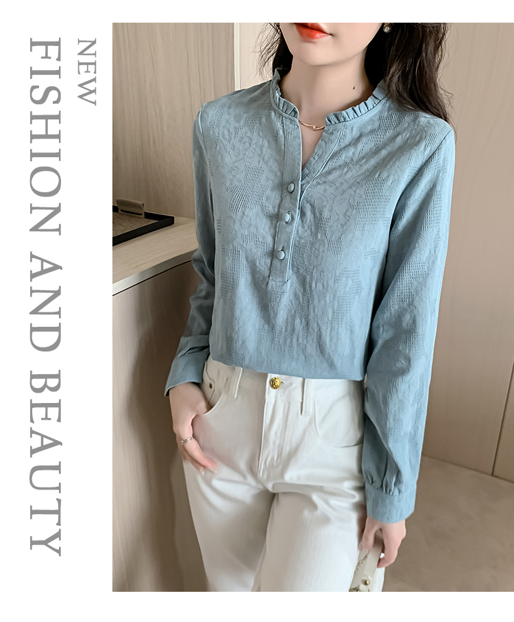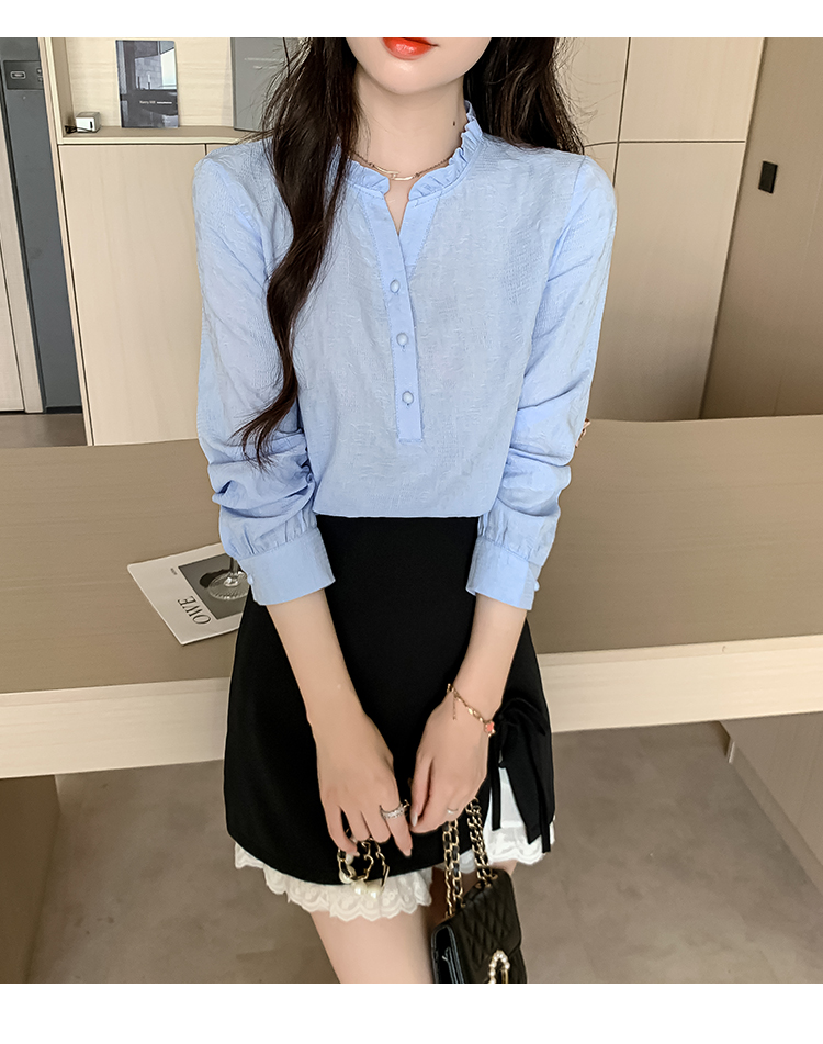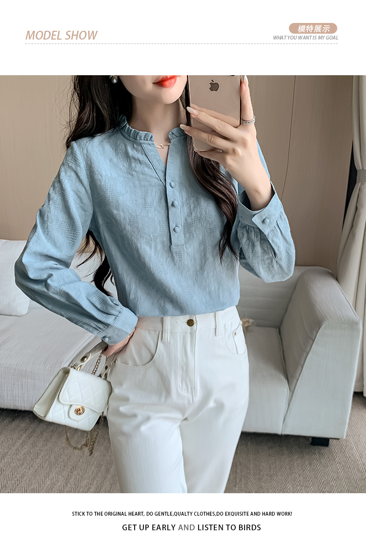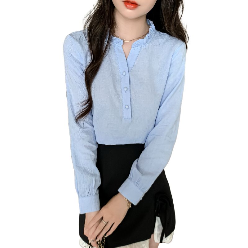 MY13964# 新款质感正肩肌理减龄长袖衬衫气质通勤百搭上衣女裝貨源服裝批發