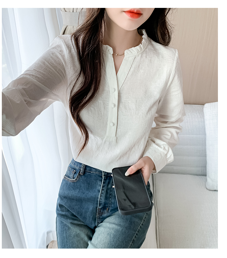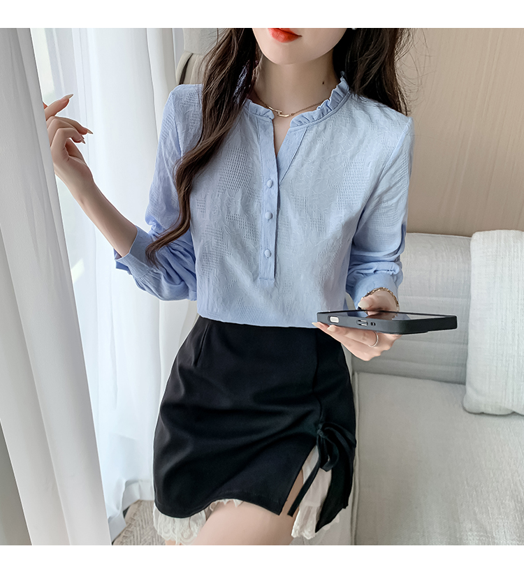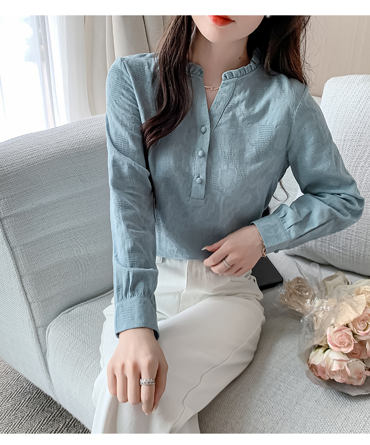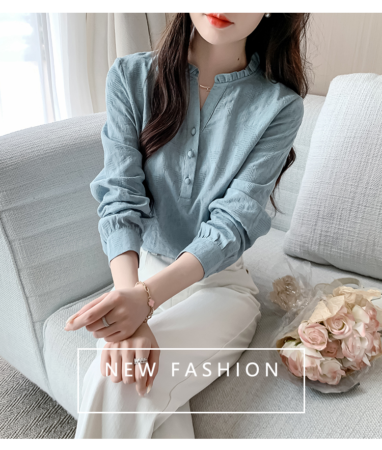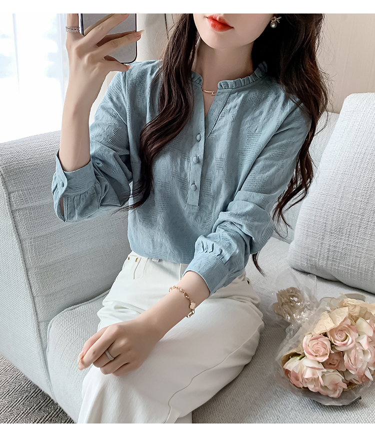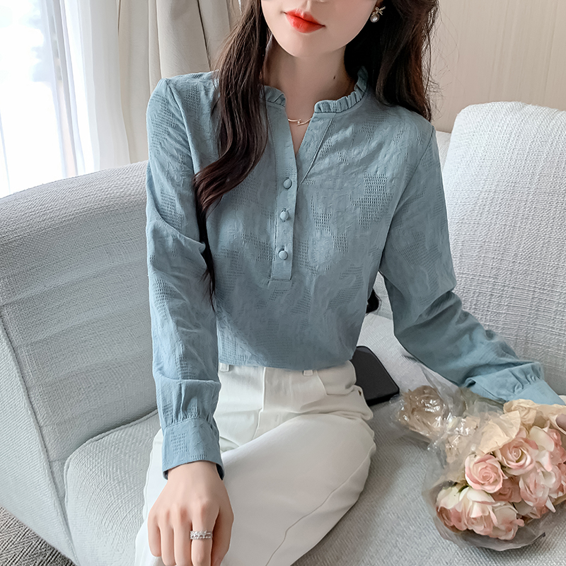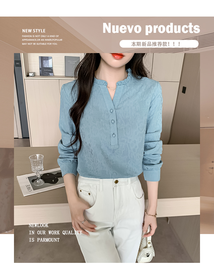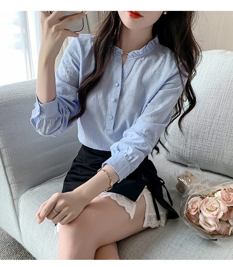 MY13964# 新款质感正肩肌理减龄长袖衬衫气质通勤百搭上衣女裝貨源服裝批發