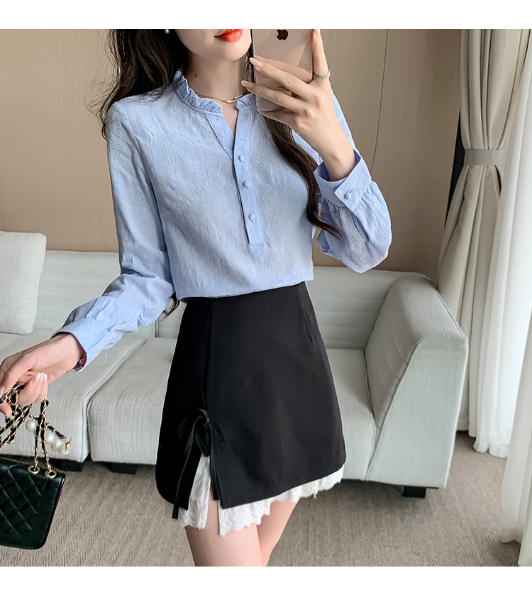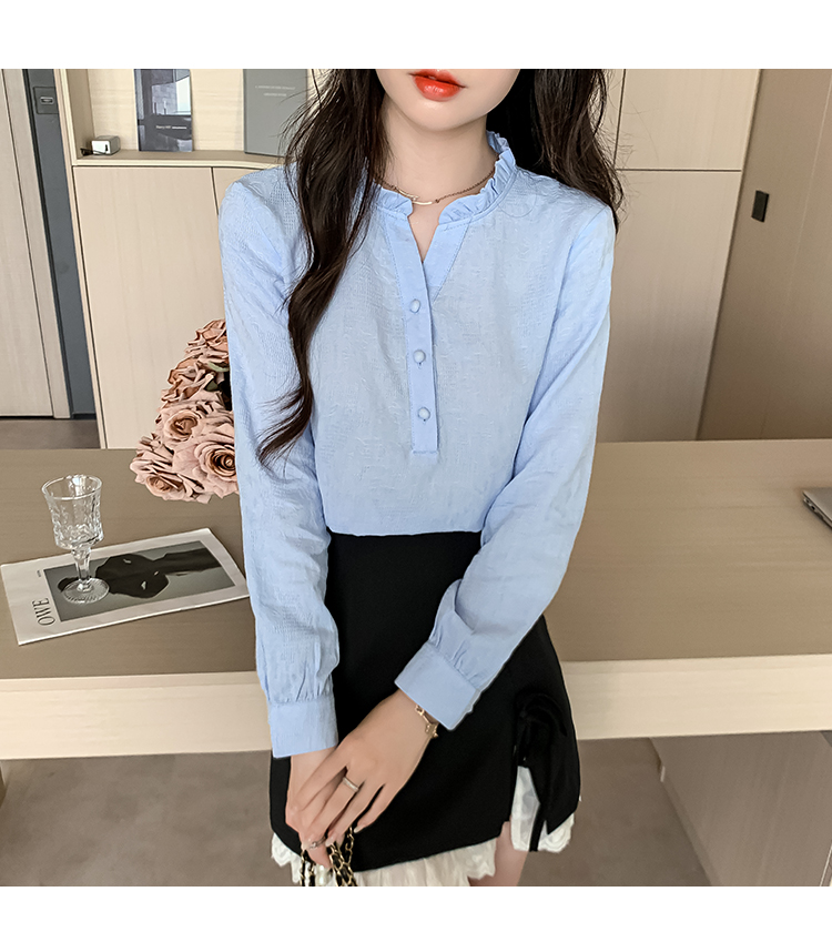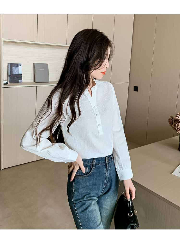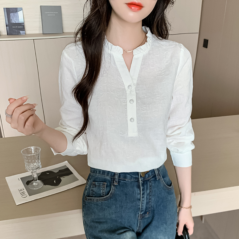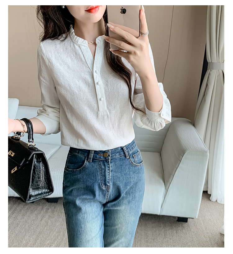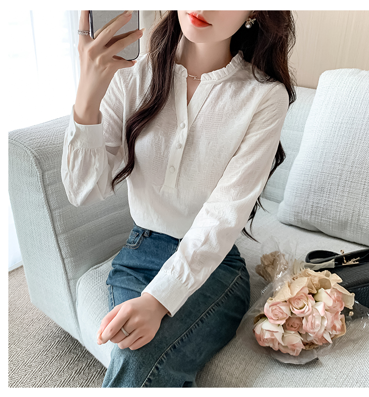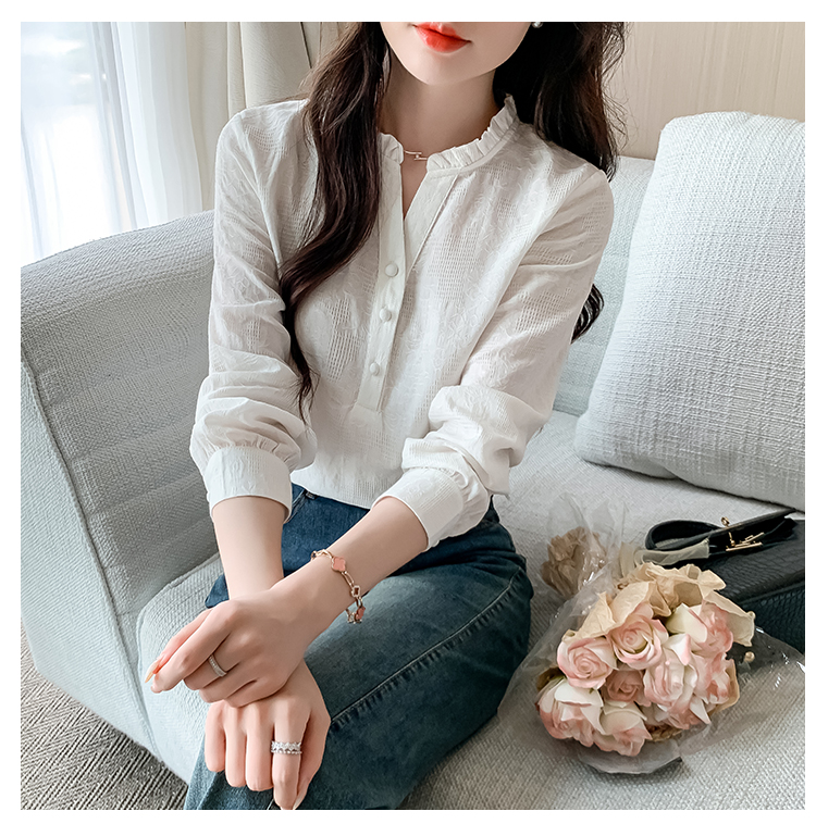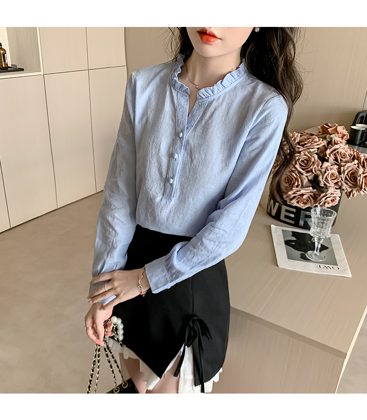 MY13964# 新款质感正肩肌理减龄长袖衬衫气质通勤百搭上衣女裝貨源服裝批發