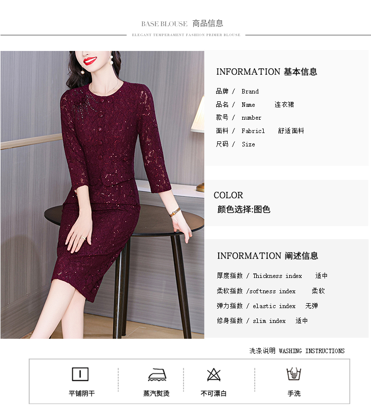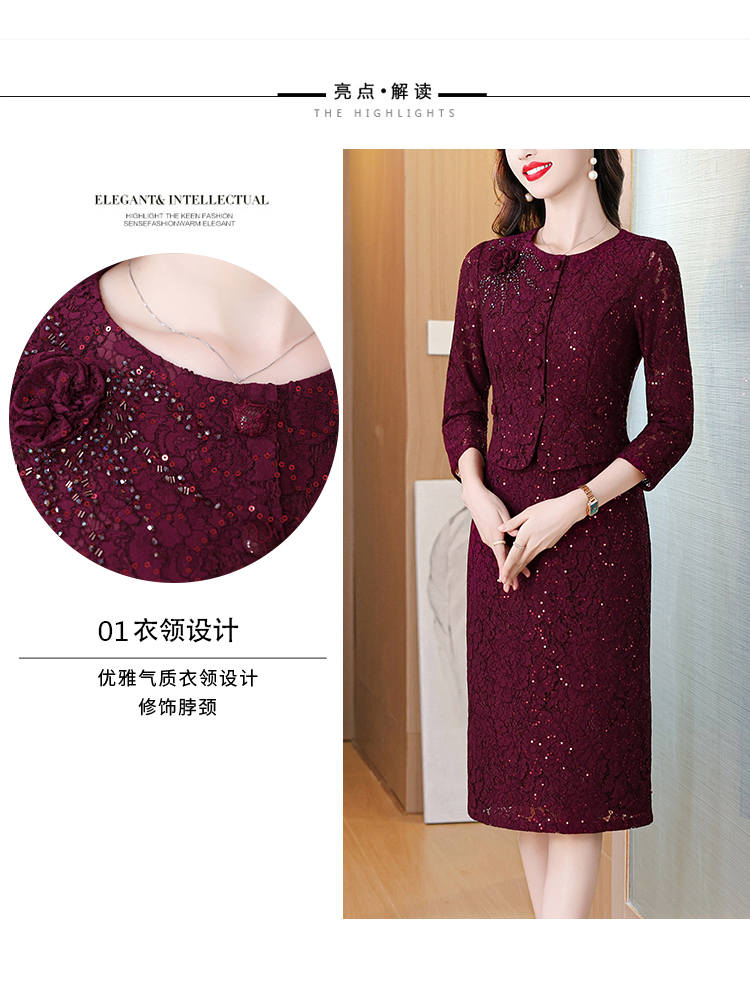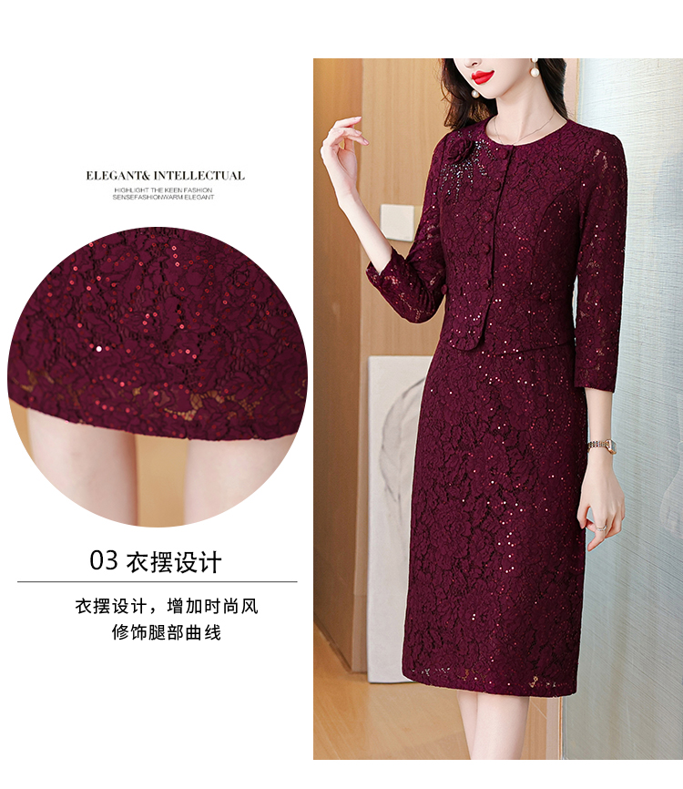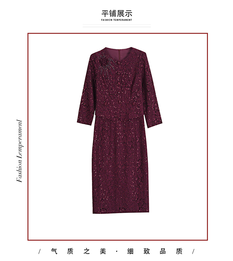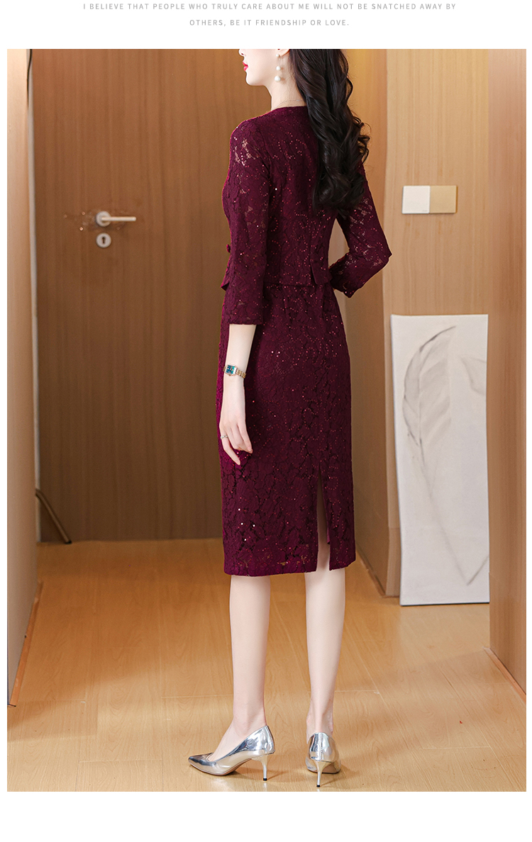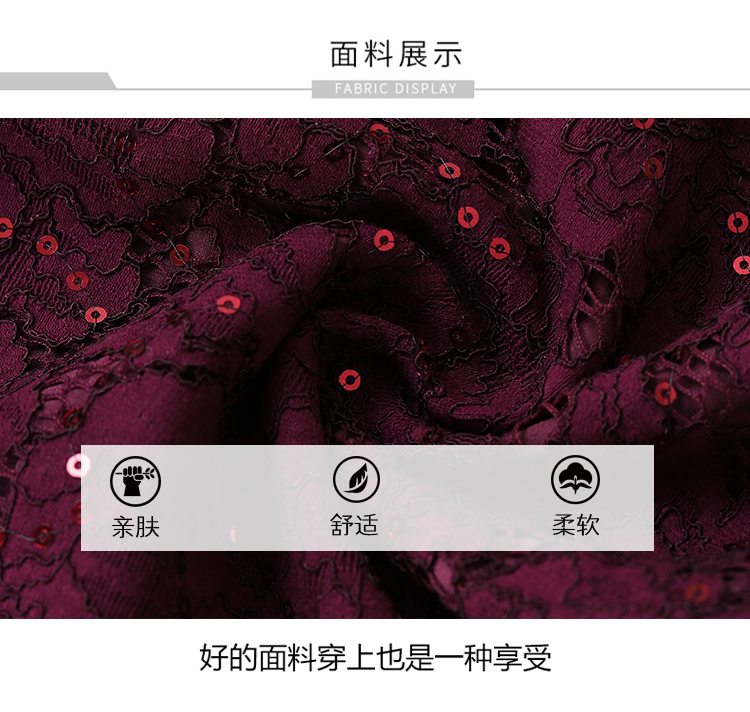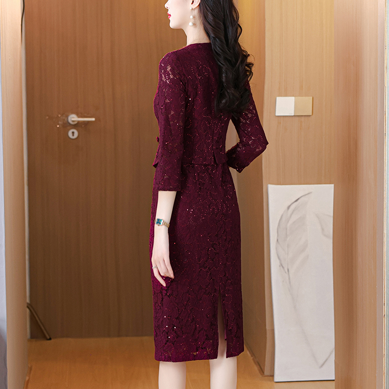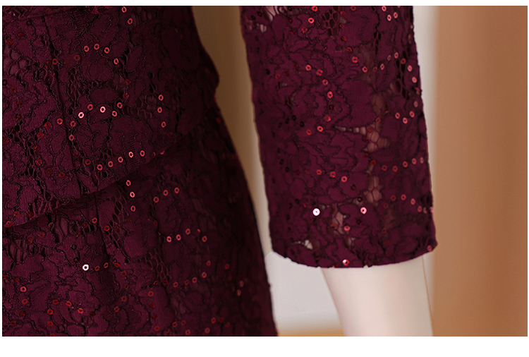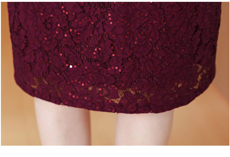 MY13975# 新款女法式气质收腰显瘦酒红色蕾丝高级拼接中长裙秋冬女裝貨源服裝批發