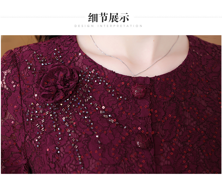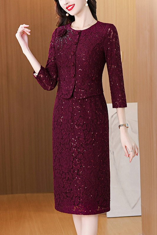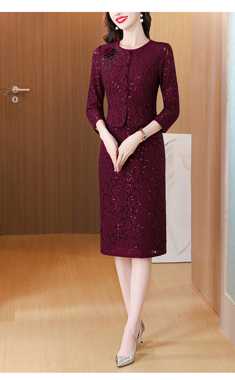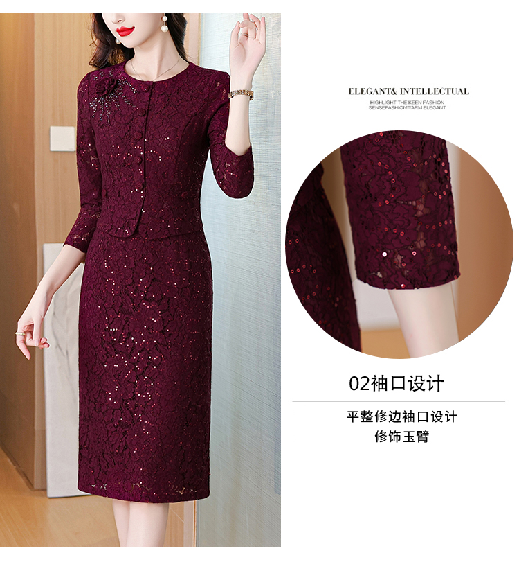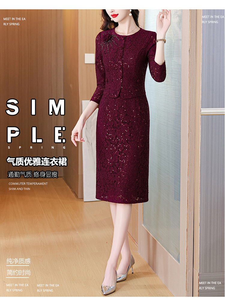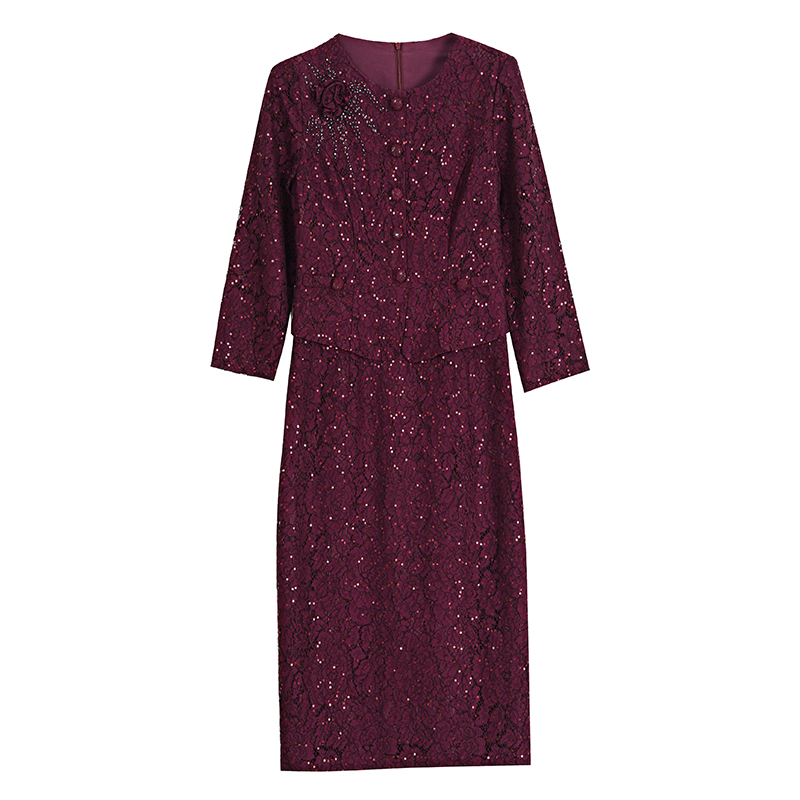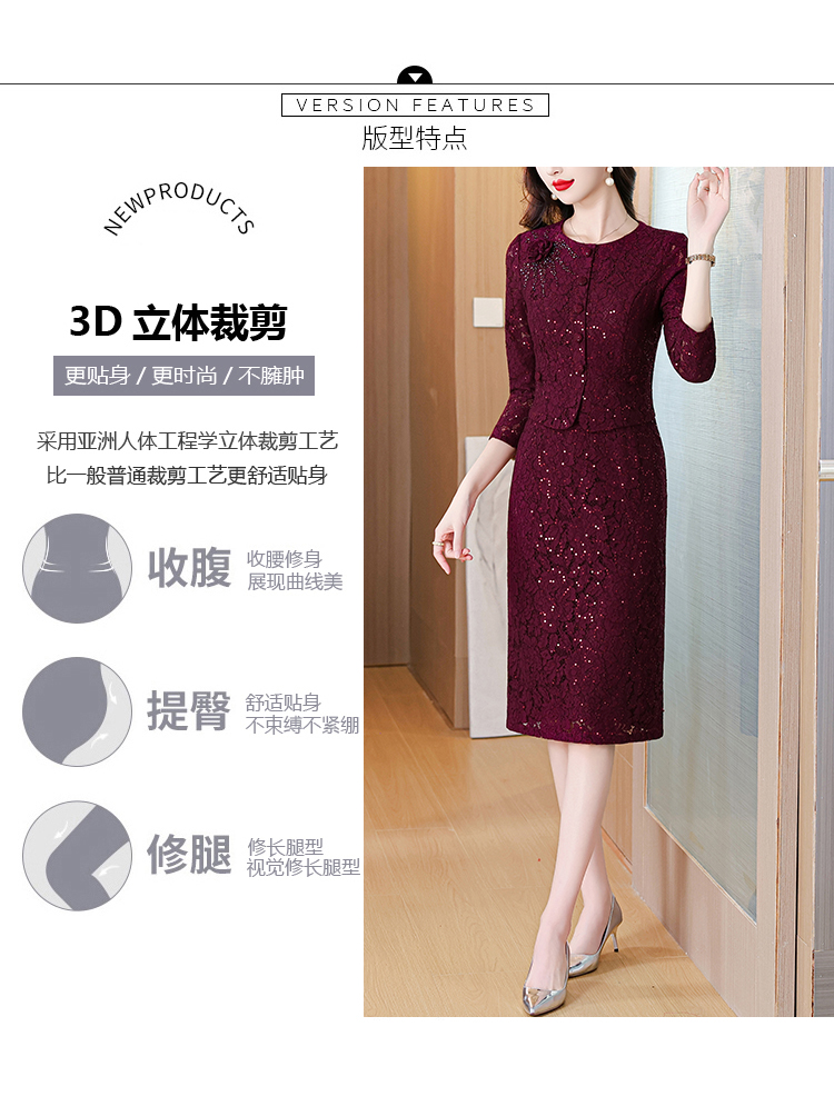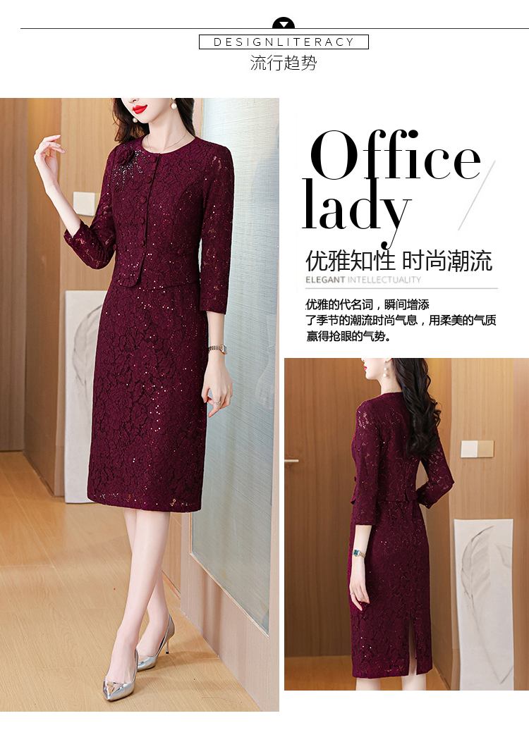 MY13975# 新款女法式气质收腰显瘦酒红色蕾丝高级拼接中长裙秋冬女裝貨源服裝批發