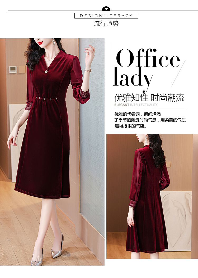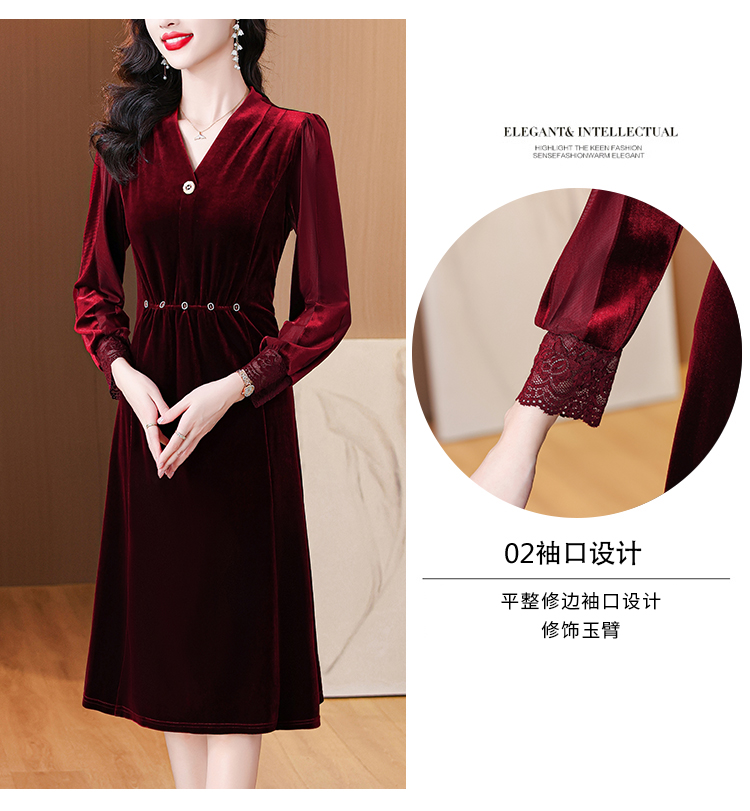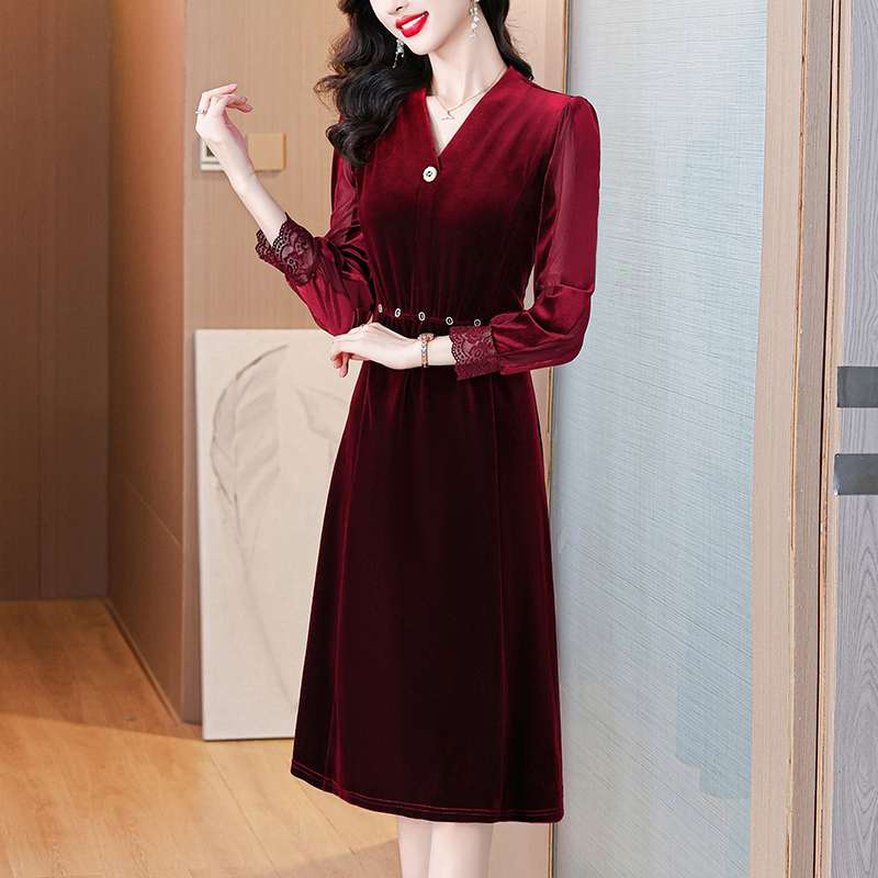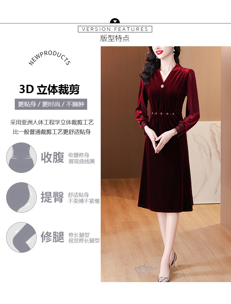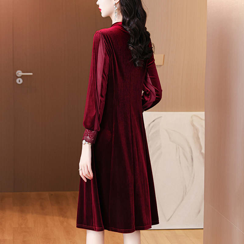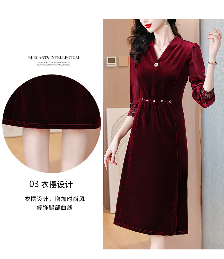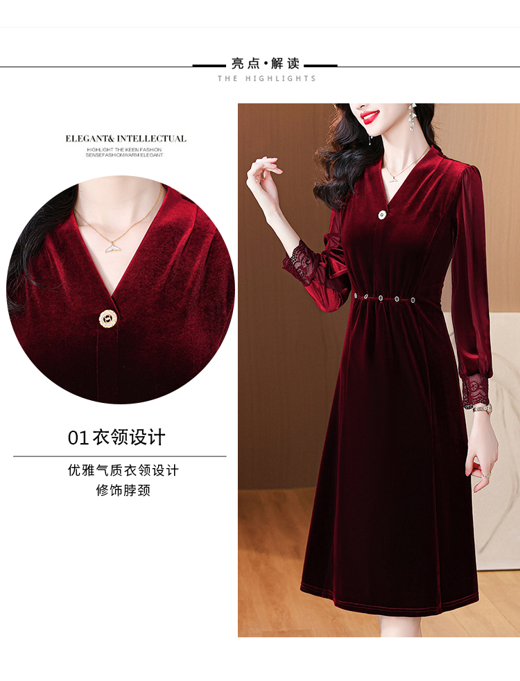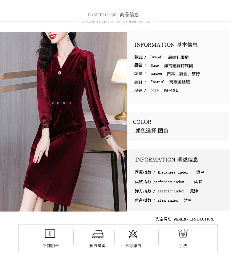 MY13976# 新款洋气高端婚宴妈妈内搭打底酒红色喜婆婆金丝绒连衣裙女裝貨源服裝批發