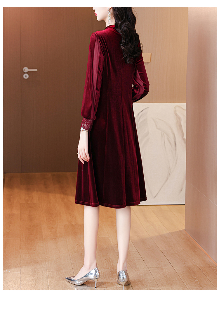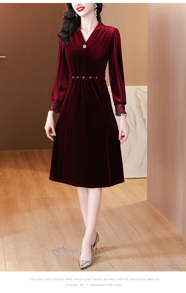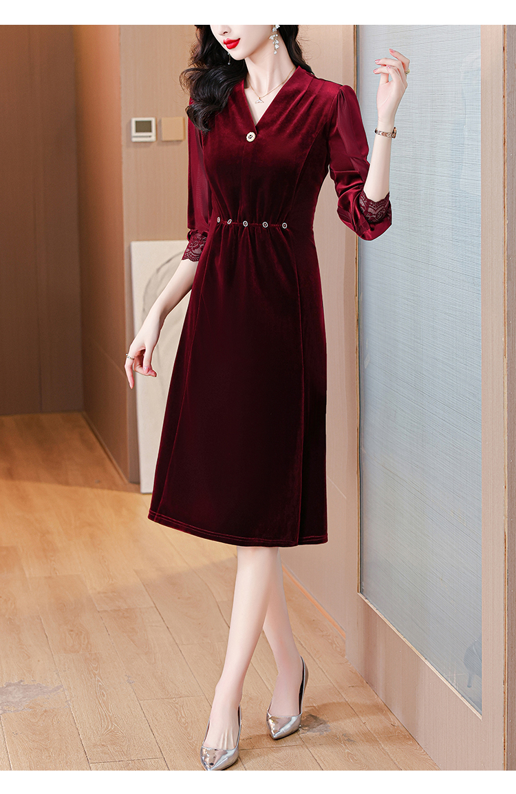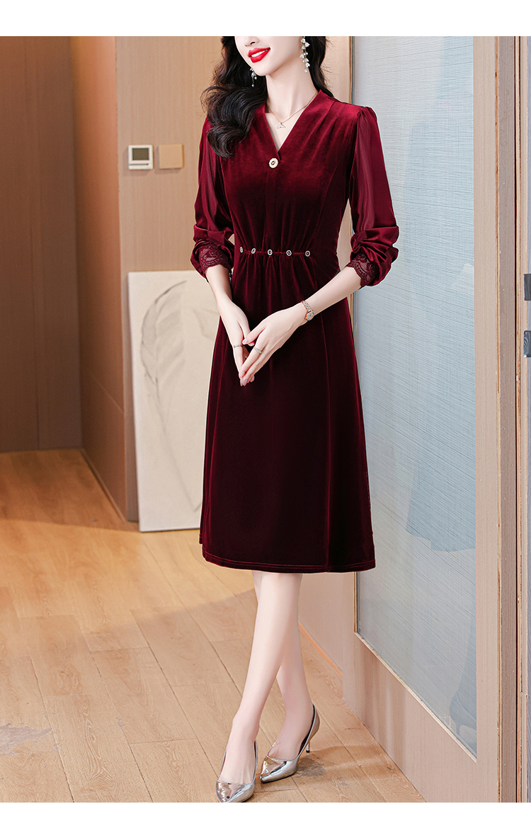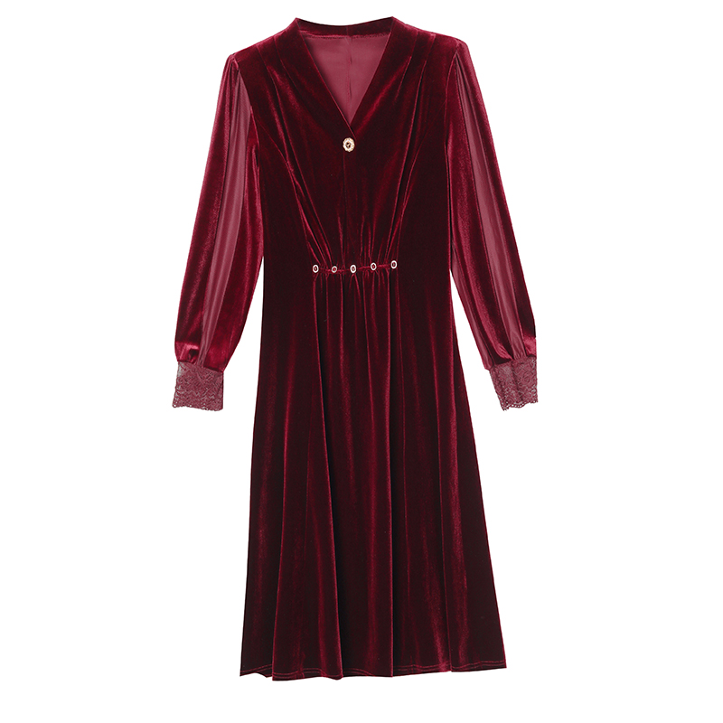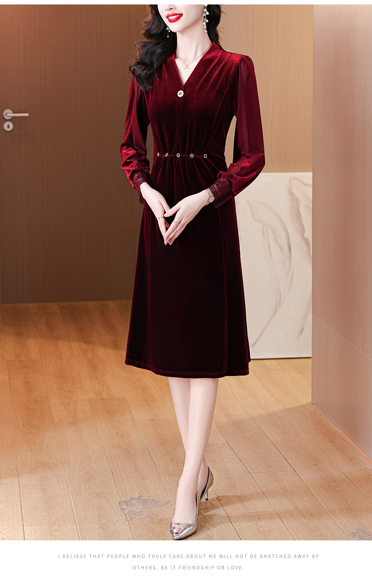 MY13976# 新款洋气高端婚宴妈妈内搭打底酒红色喜婆婆金丝绒连衣裙女裝貨源服裝批發